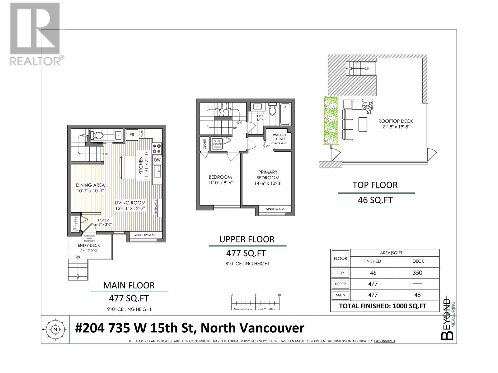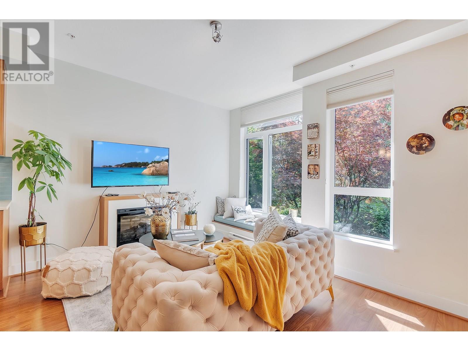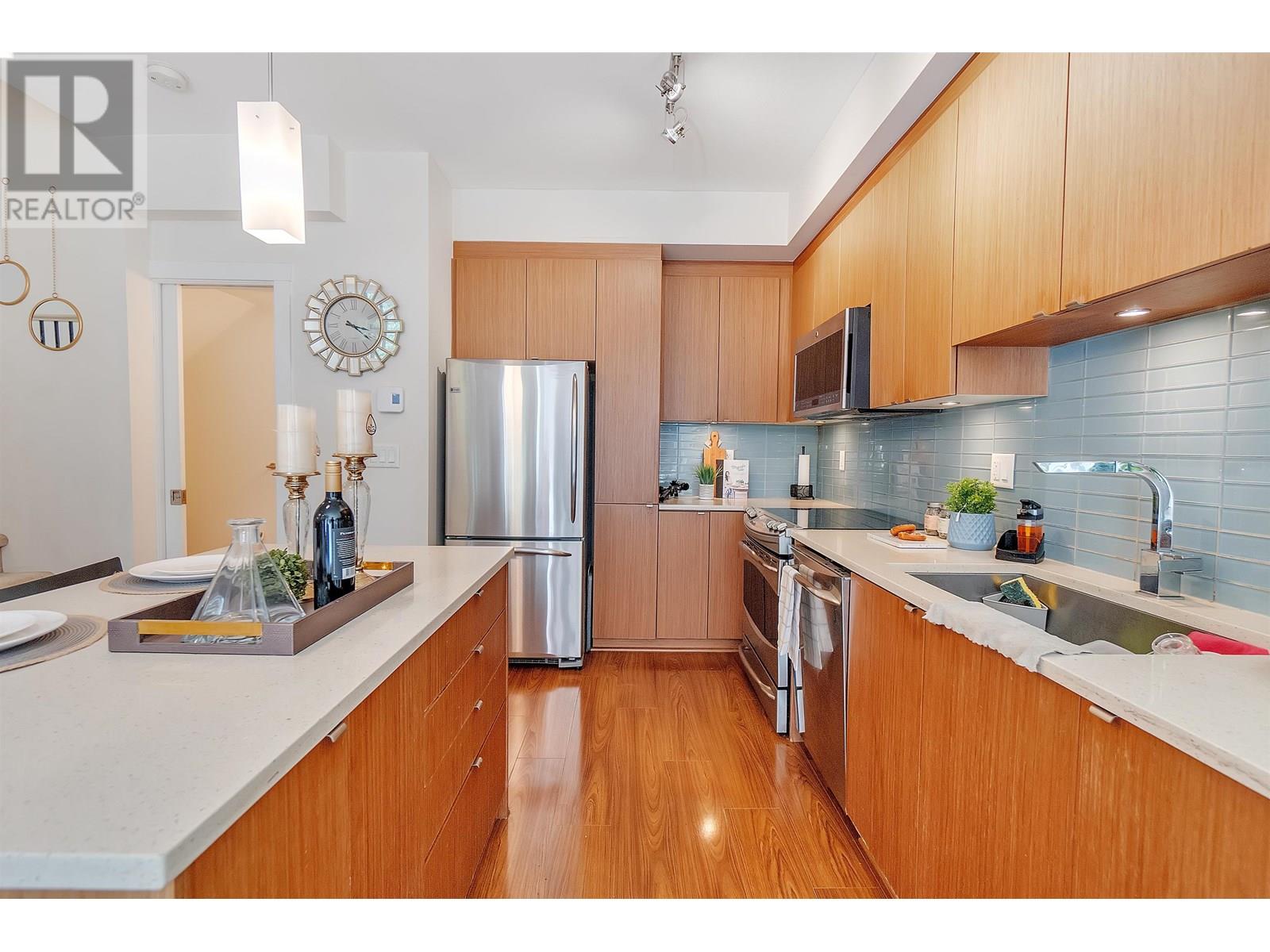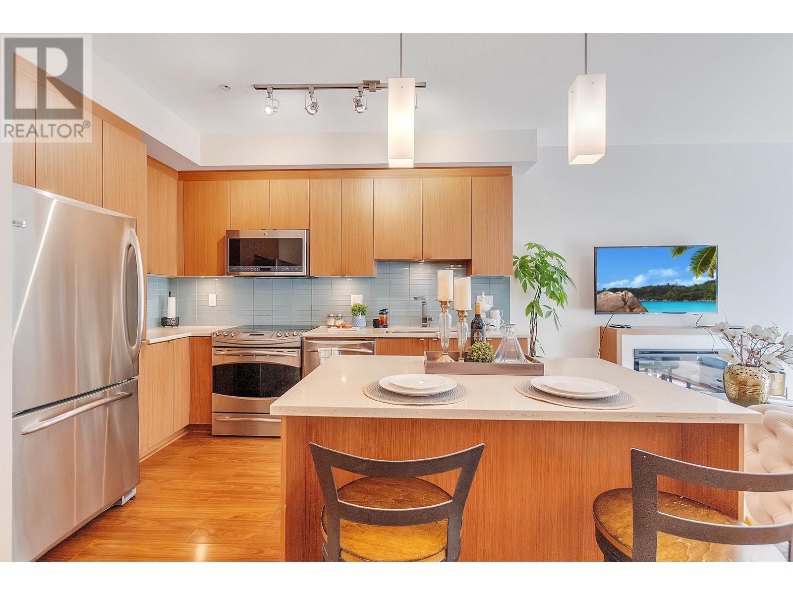 Welcome to Seven35. North Vancouver´s best value green-certified townhome built by award-winning Adera. This 2 bed, 2 bath West Coast Contemporary home features 1,000 square ft of functional living, including a bright open-concept main floor with high ceilings, gourmet kitchen and creative under-stair storage. Upstairs offers two generous bedrooms, including a king-sized primary with walk-in closet and in-suite laundry. The showstopper? A 350 square ft rooftop patio with water/electric hookups, mountain, sunset & downtown views. ideal for a hot tub or entertaining. Located just off Mosquito Creek in a quiet, very private yet steps to trails, shopping, Cap Mall, schools & transit. Includes parking, storage locker, gym, bike room, and playground. Open House July 13 (Sun) 2:00 PM - 4:00 PM (id:48970) Show More