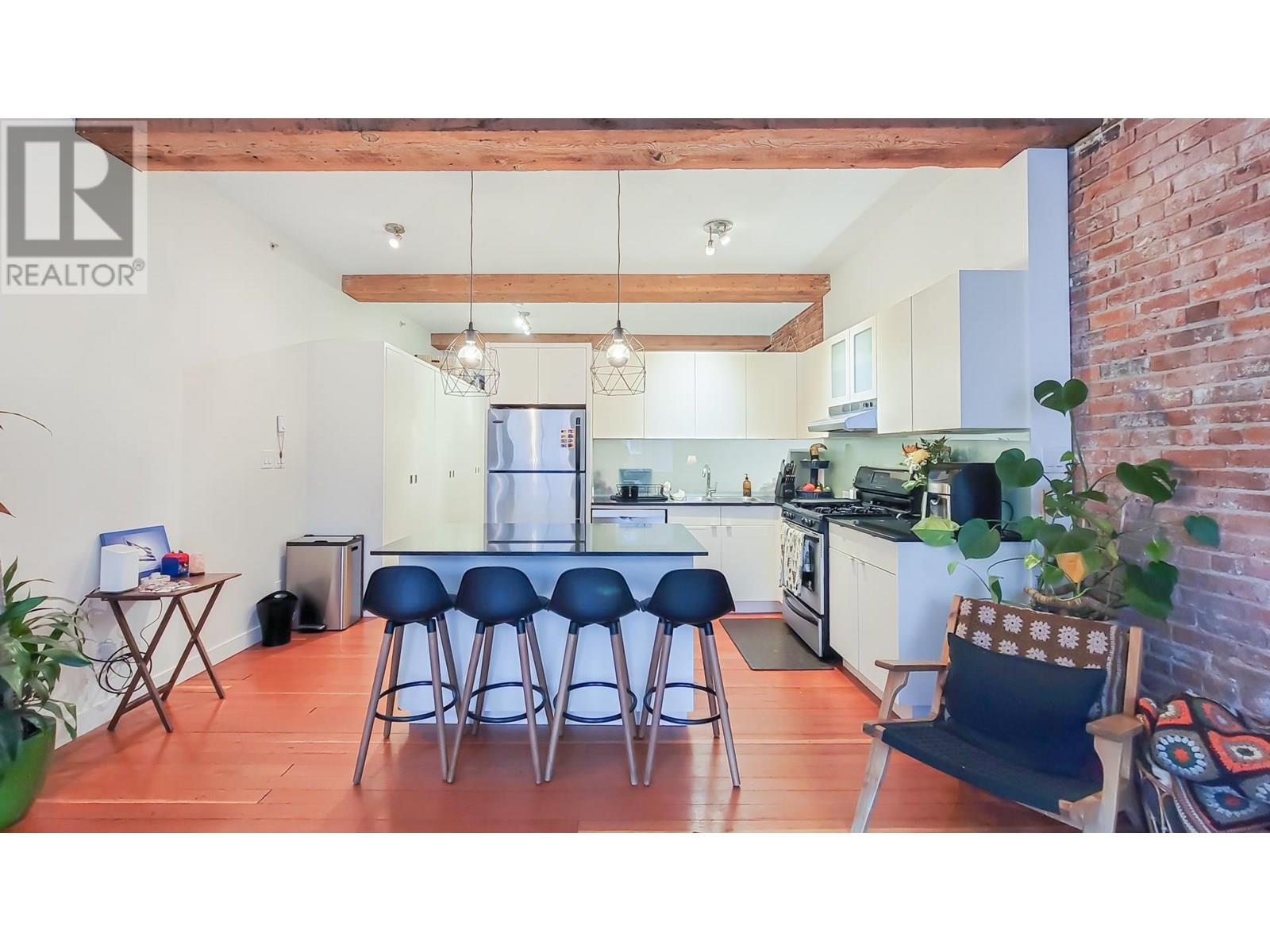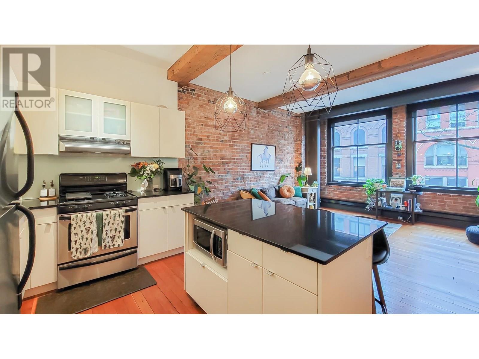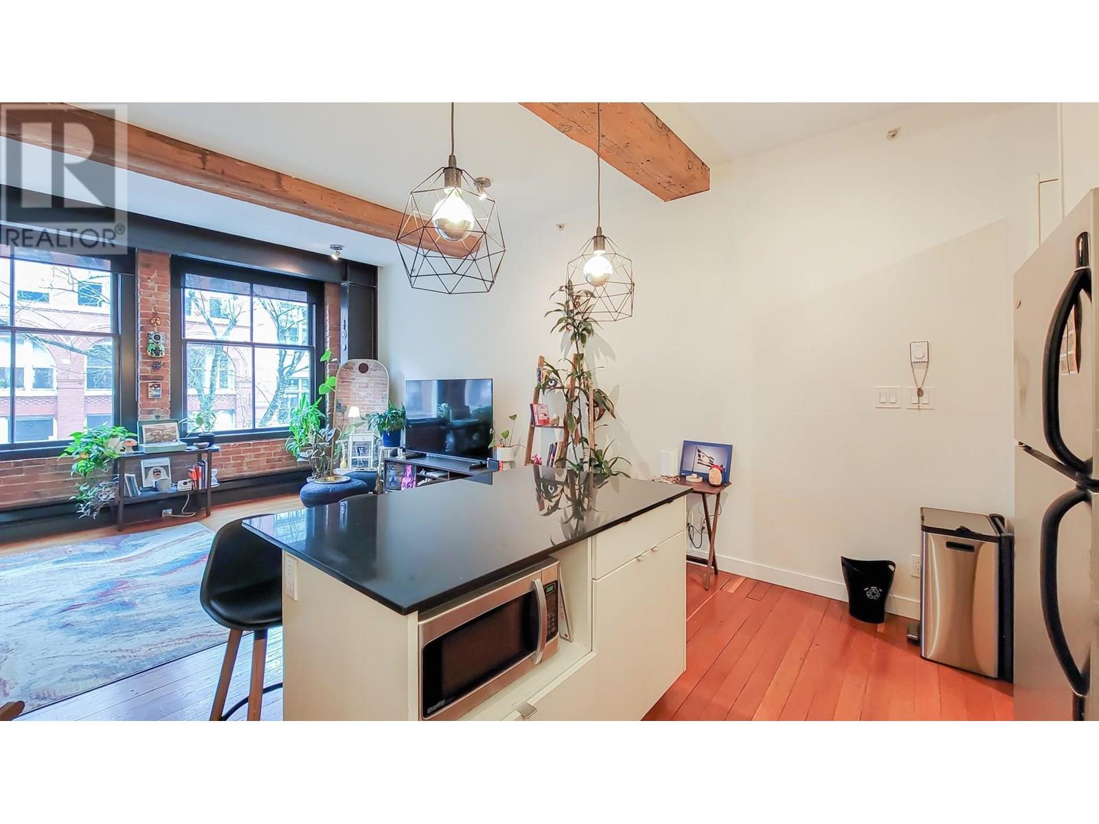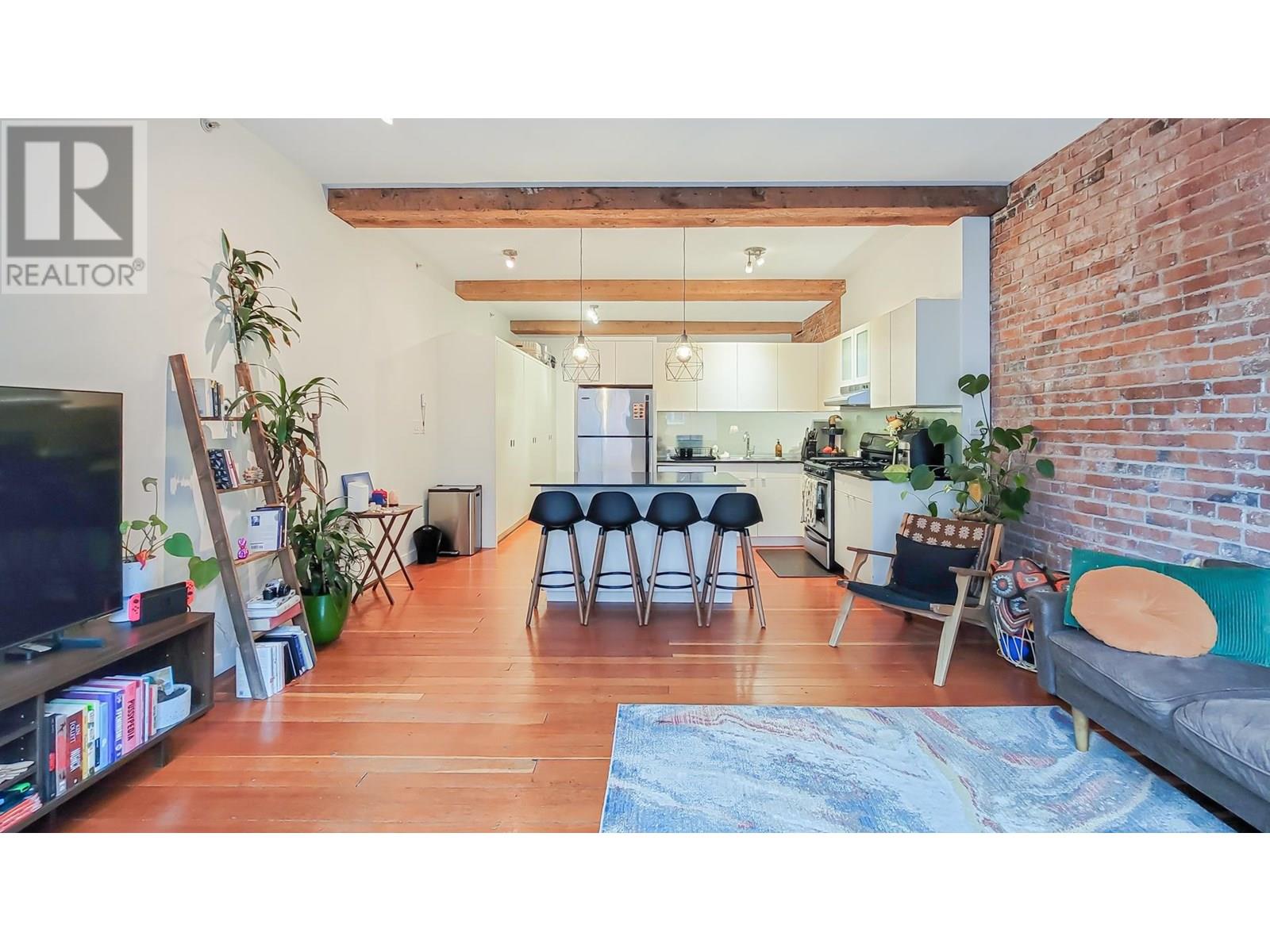 This captivating 812 sqft loft that perfectly blends timeless charm with urban convenience. Featuring original hardwood floors, heritage-style exposed brick walls, and oversized windows that flood the space with natural light, this home is a true gem. Situated directly across from the iconic Steam Clock, this loft offers unparalleled access to all that Gastown has to offer-boutique shopping,restaurants, and the convenience of Waterfront SkyTrain Station, all just steps away. Whether you're looking for a sound investment opportunity or a stunning place to call home, this property checks all the boxes. This is a unique and vibrant piece of Vancouver´s history! 2005 winner of the Award of Excellence for Revitalization. FOUR VIRTUALLY STAGED PICTURE TWO LIVING ROOM AND TWO BEDROOM (id:48970) Show More