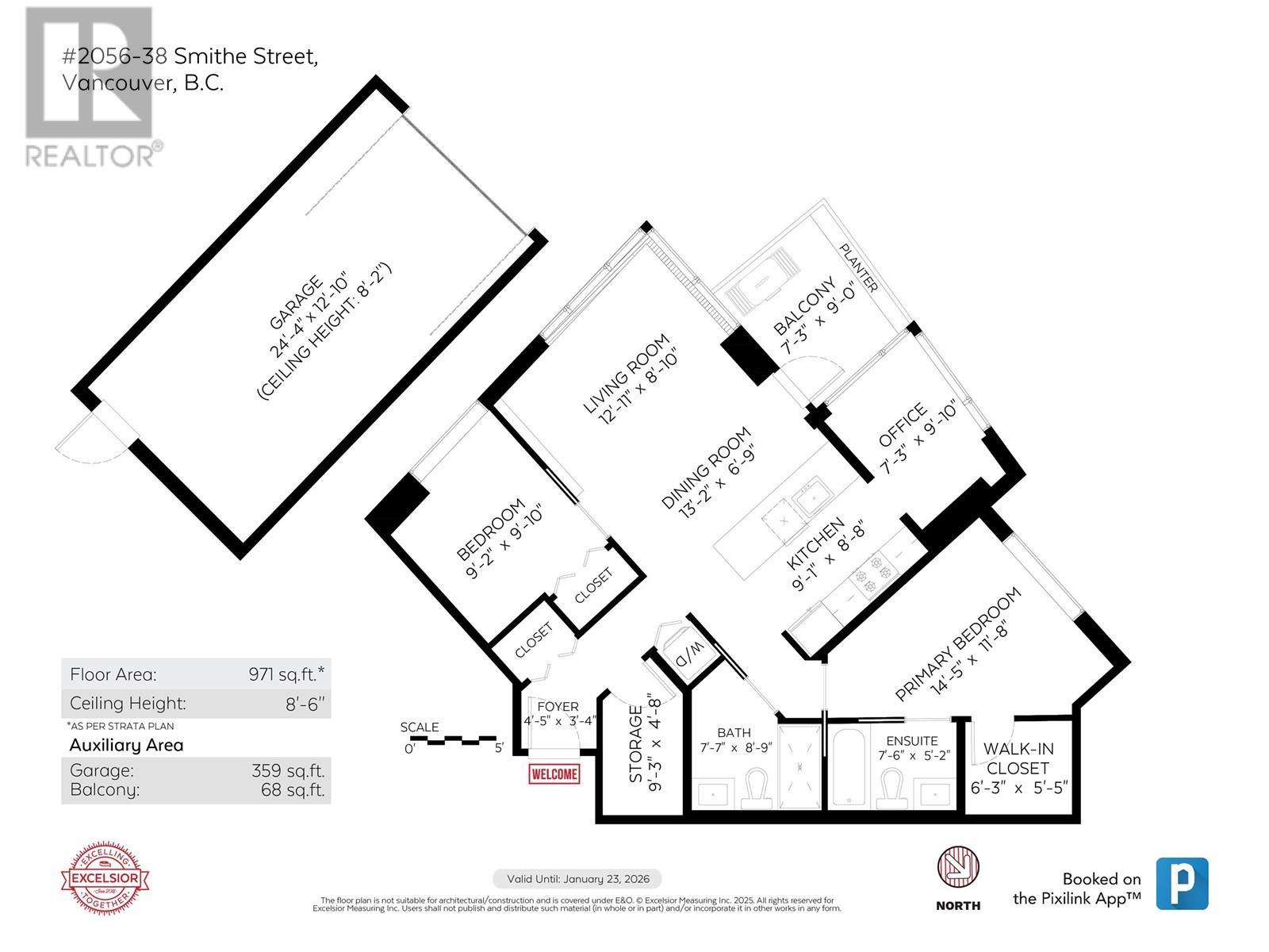- Area 971 sq ft