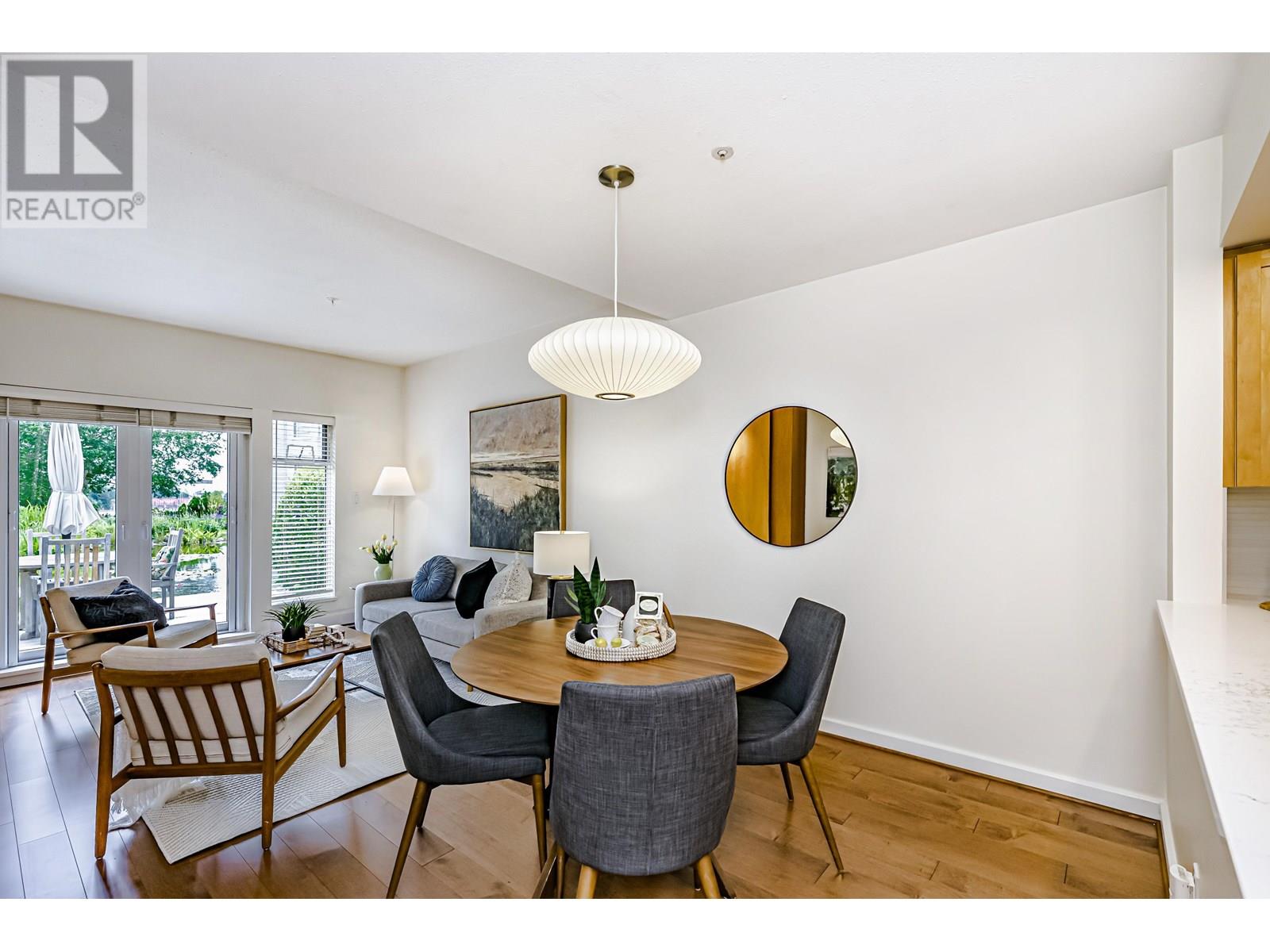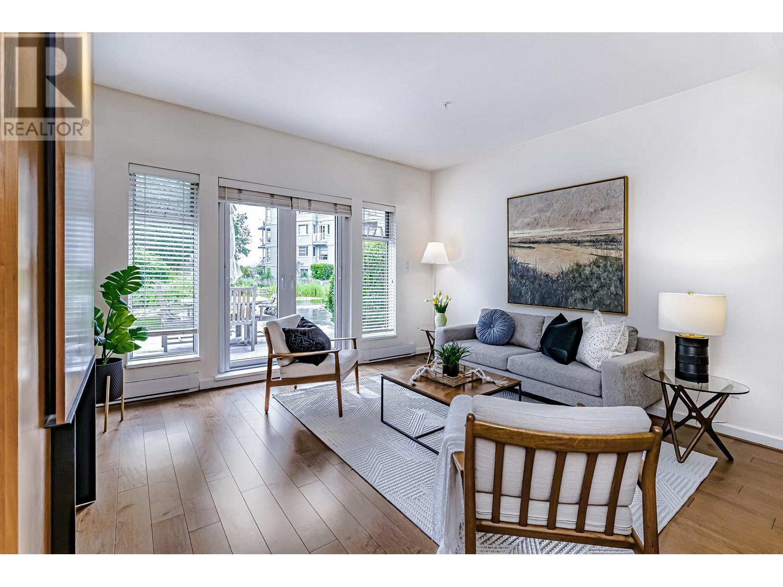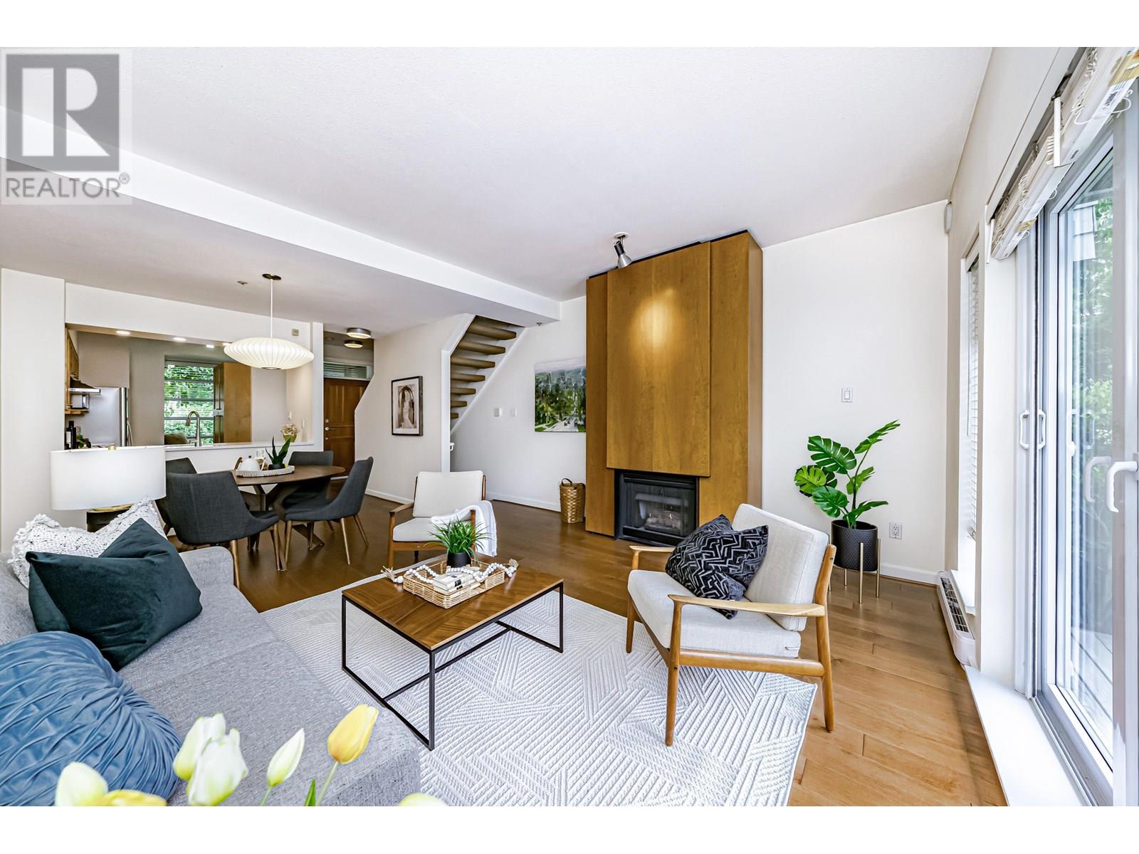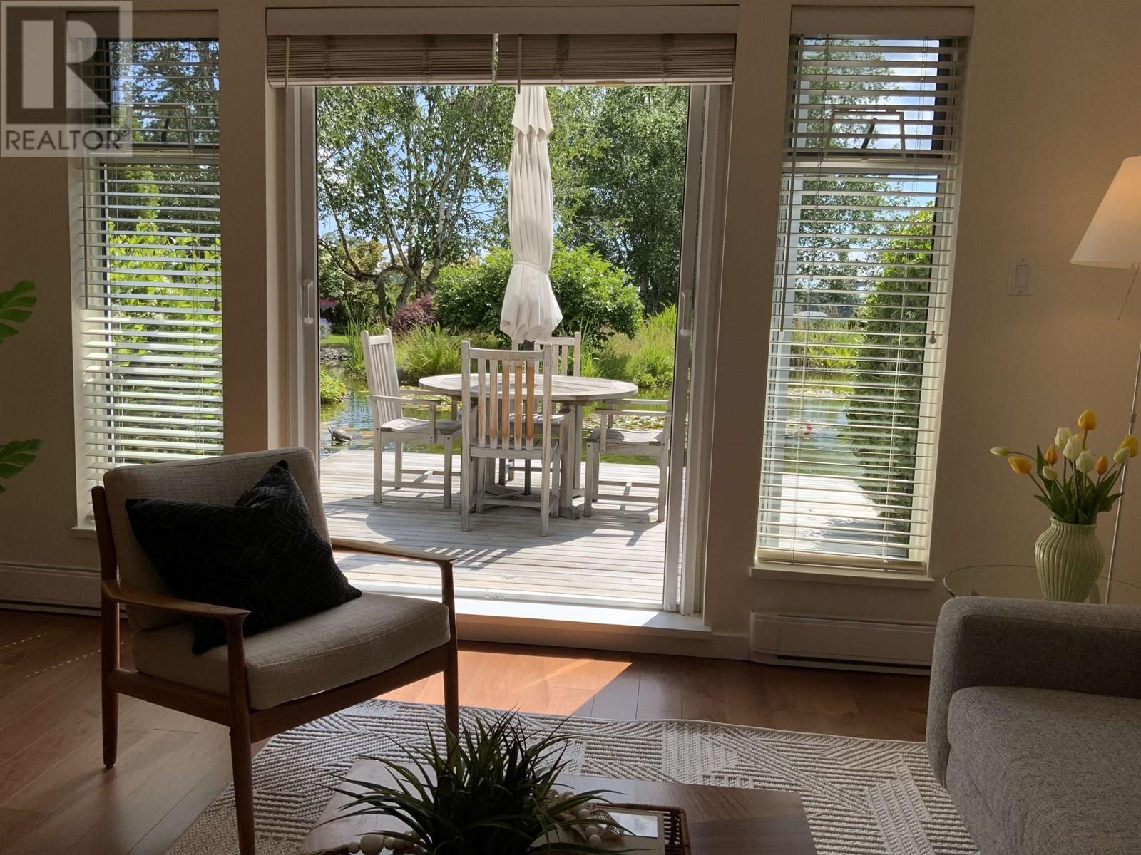 Presenting an exceptional, single-owner residence on the market for the first time! This bright, 3-bed, 2-bath home showcases thoughtful design enriched by numerous upgrades. Step inside to find engineered maple wood floors, ceramic tiles in the kitchen, & sophisticated fir flush-finish wood swing & bifold doors. The living room is anchored by a stunning fireplace featuring a cherry veneer book-matched finish. Kitchens & baths exude luxury with Carrara marble & Caesarstone counters, complemented by soft New Zealand wool carpets in select areas. French doors lead to a lower deck, overlooking a serene lily pond adorned with irises, rose gardens, and visiting hummingbirds. This unique row home provides direct access to a private garage with a Level 2 EV charger, plus an additional parking stall. (id:48970) Show More