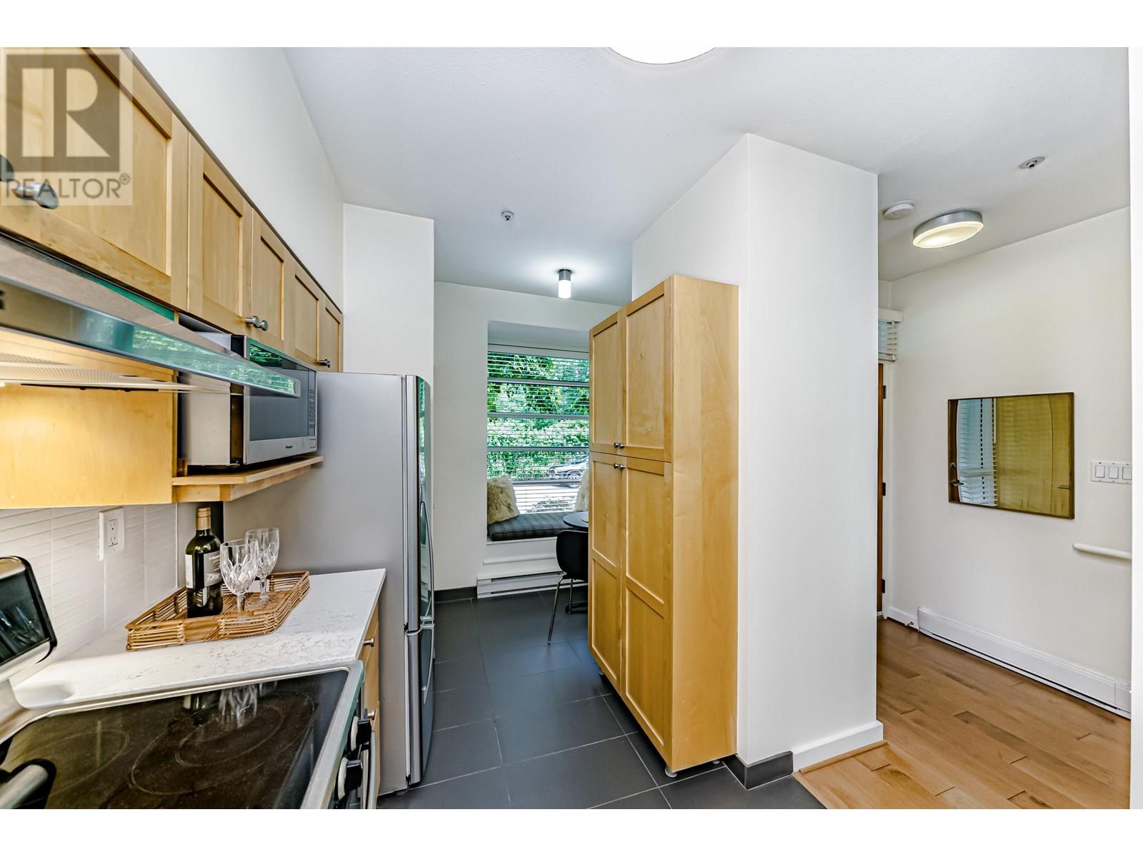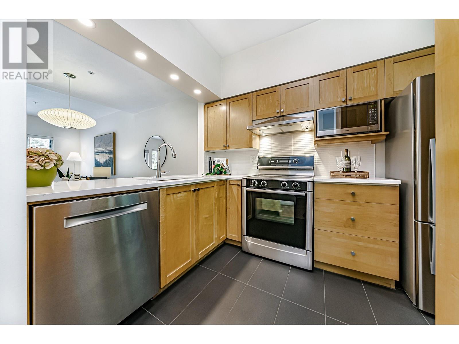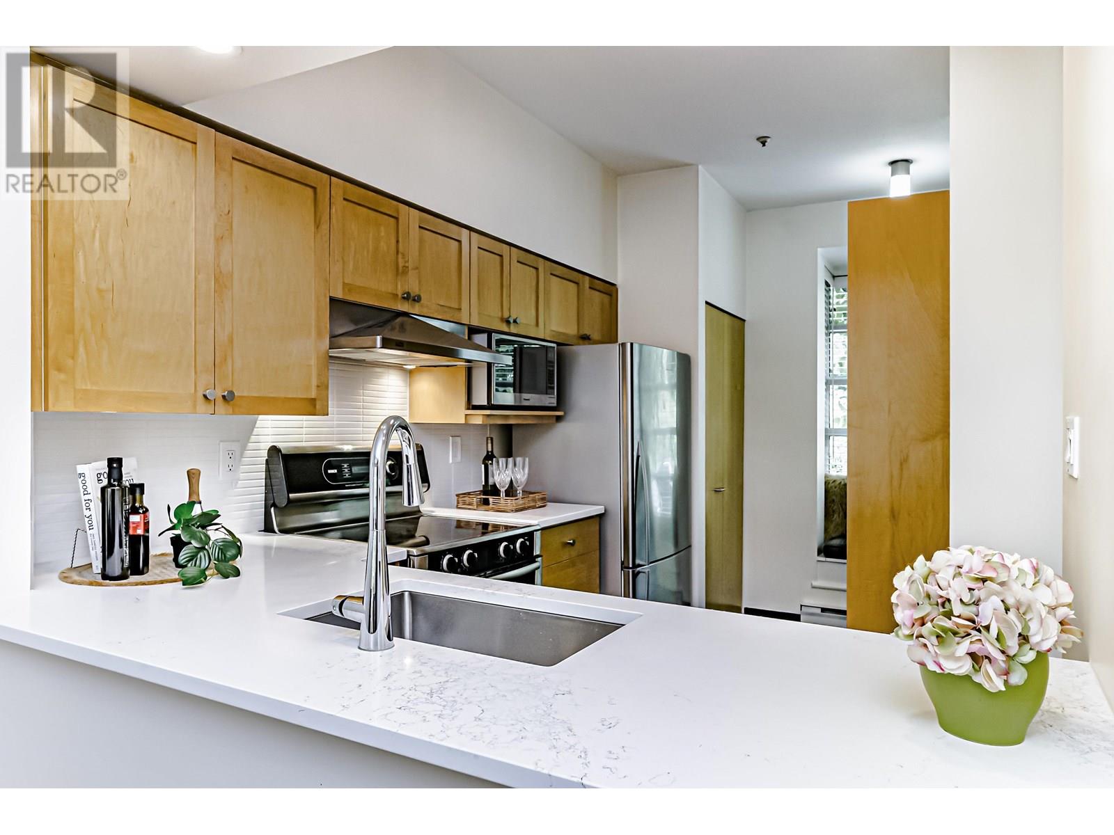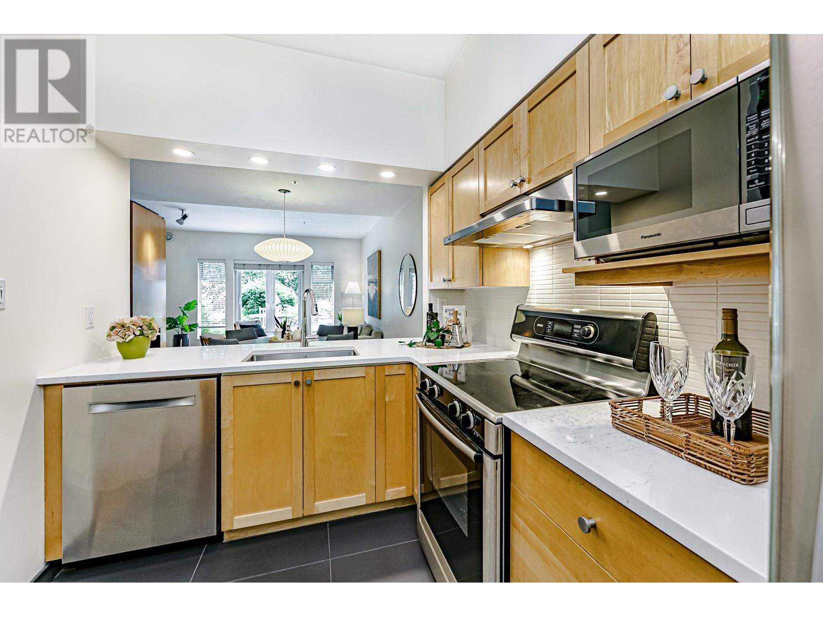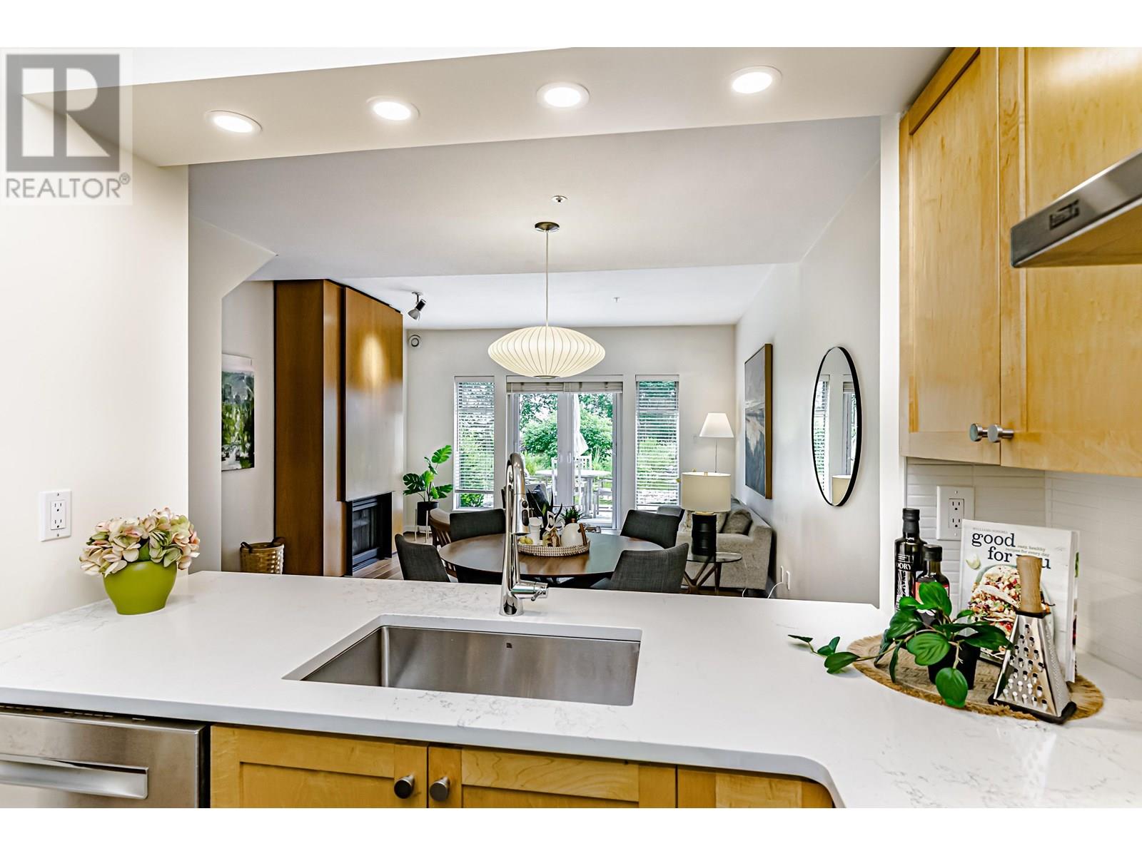 Presenting an exceptional, single-owner residence on the market for the first time! This bright, 3-bed, 2-bath home showcases thoughtful design enriched by numerous upgrades. Step inside to find engineered maple wood floors, ceramic tiles in the kitchen, & sophisticated fir flush-finish wood swing & bifold doors. The living room is anchored by a stunning fireplace featuring a cherry veneer book-matched finish. Kitchens & baths exude luxury with Carrara marble & Caesarstone counters, complemented by soft New Zealand wool carpets in select areas. French doors lead to a lower deck, overlooking a serene lily pond adorned with irises, rose gardens, and visiting hummingbirds. This unique row home provides direct access to a private garage with a Level 2 EV charger, plus an additional parking stall. (id:48970) Show More
