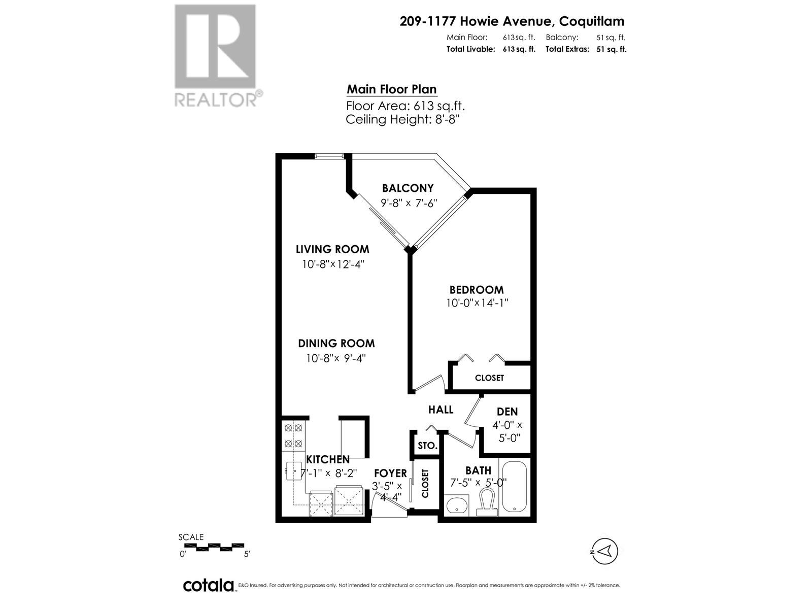 - Area 613 sq ft