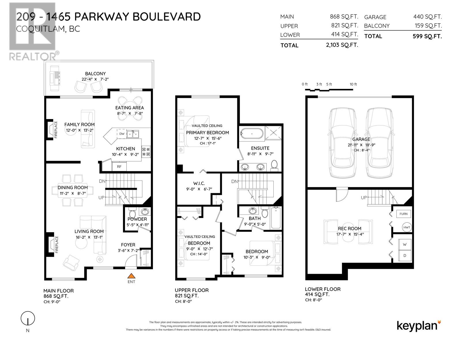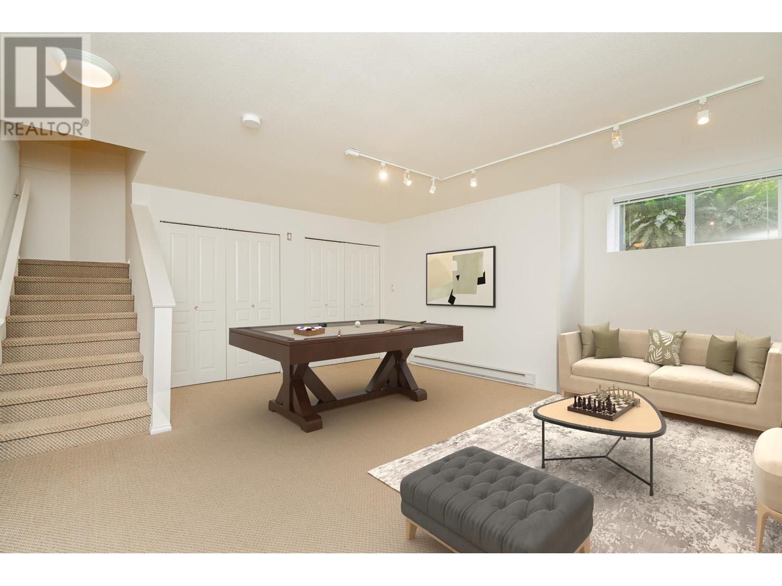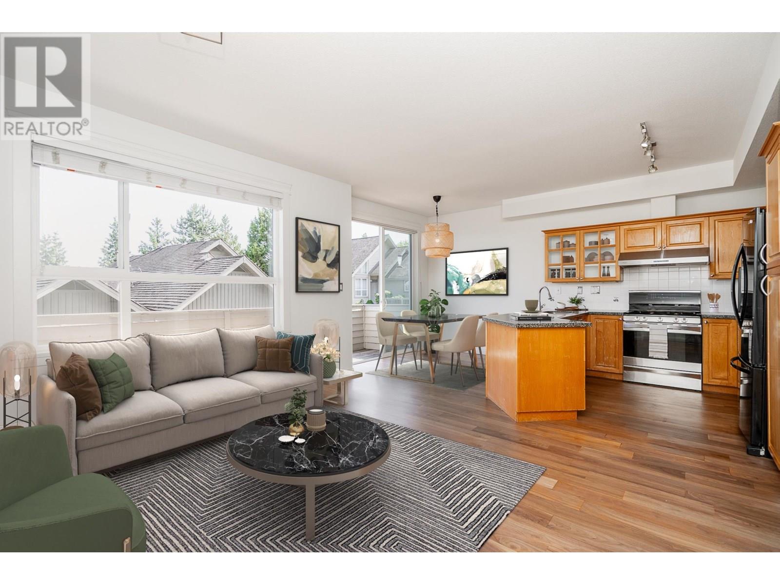 Welcome to Silver Oaks in Westwood Plateau! This bright South-facing townhome with beautiful city and mountain views offers 3 bedrooms, 3 bathrooms, and 2,103 square ft of well-designed living space. The main floor features refinished hardwood flooring, formal dining, living room and kitchen with family room plus eating area. The kitchen includes a gas cooktop, peninsula counter, and ample storage, while the open family room leads to a full-width sunny, private balcony. Up you'll find 3 beds, (2 w/vaulted-ceilings) including a spacious primary w/stunning views, plus a 5 piece ensuite and WIC. The lower level includes a rec room, laundry, and access to a double side-by-side garage. Enjoy robust amenities including a pool, gym, and social lounge. Close proximity to schools, transit and parks. (id:48970) Show More