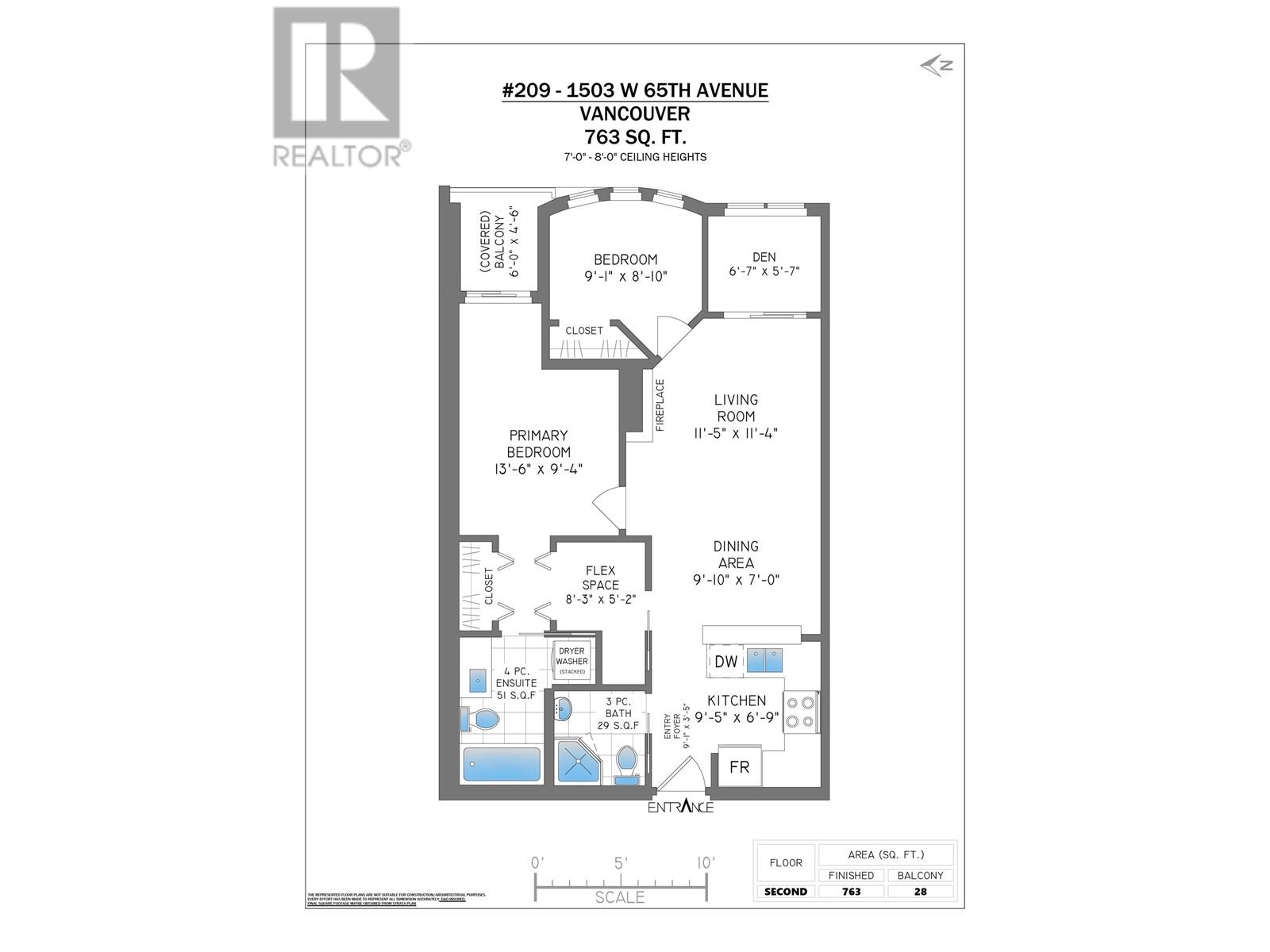 - Area 763 sq ft