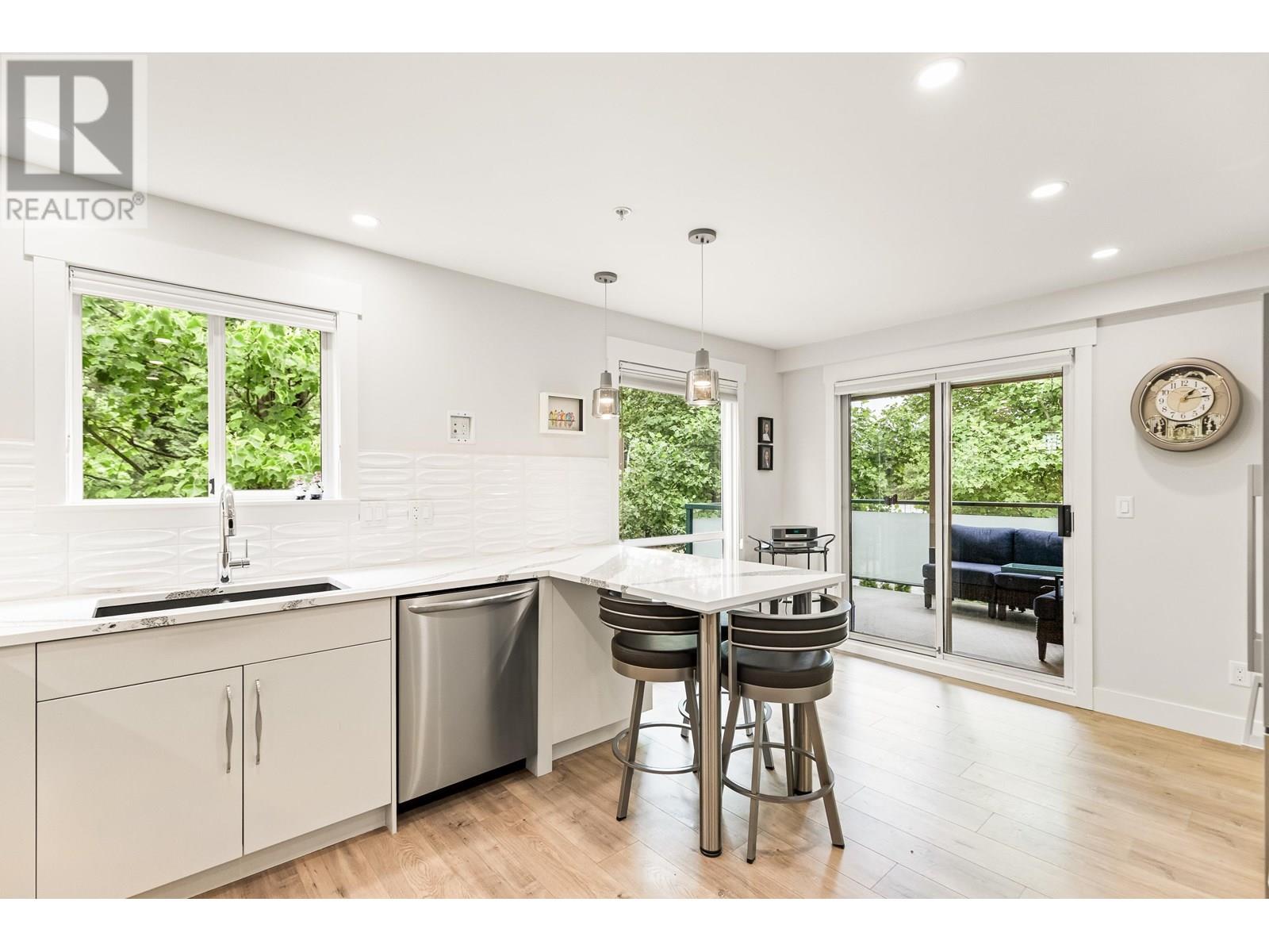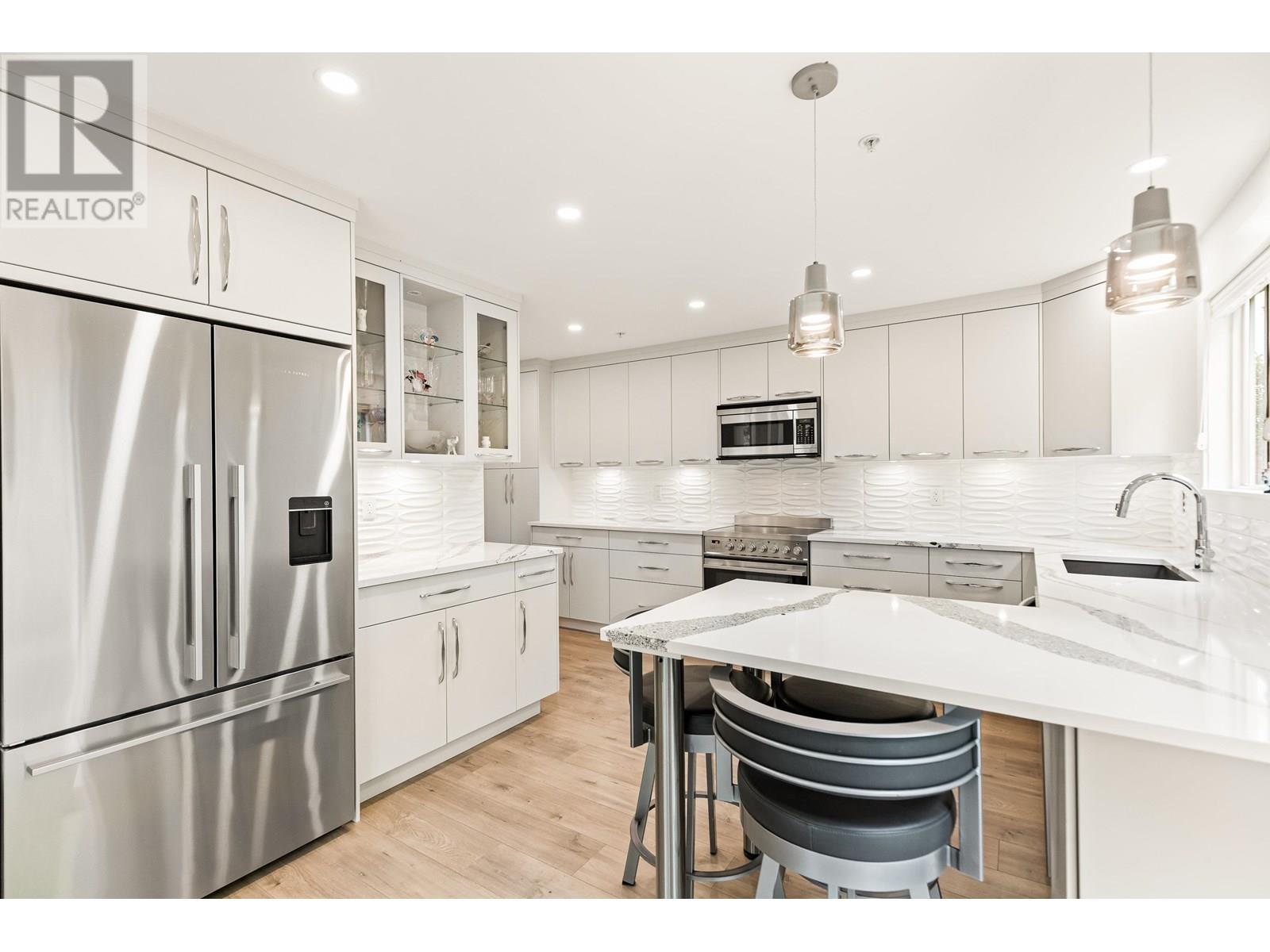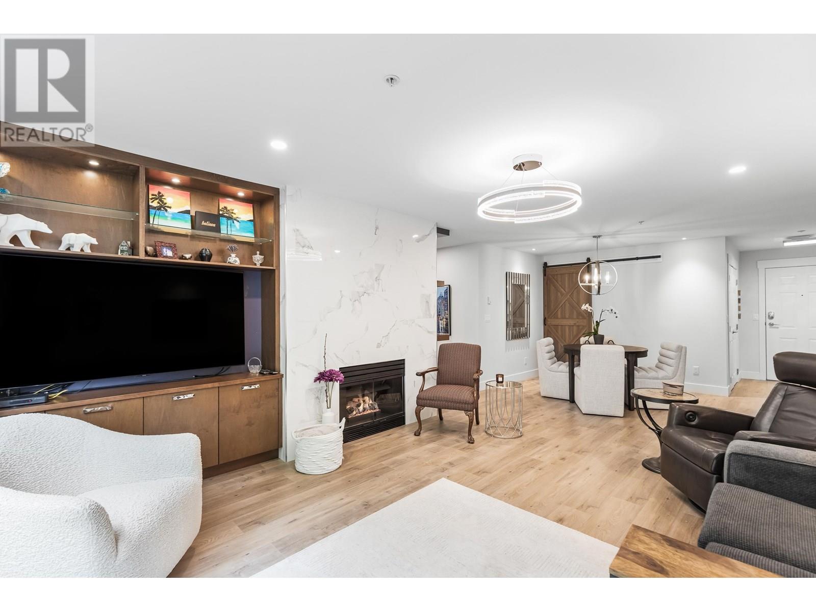 Beautifully updated and move-in ready, this 3-bedroom corner unit in the heart of Pitt Meadows is sure to impress. Renovated by Westcoast Dream Homes, it features a modern kitchen with plenty of new cabinets, stone counters, breakfast bar, tiled backsplash and high-end Fisher & Paykel appliances. The spacious open layout includes a bright living/dining area with floor-to-ceiling windows perfect for entertaining, custom built-ins and a gas fireplace with tile surround. Enjoy time on the large covered private balcony overlooking green space. Additional updates include wide-plank flooring, barn door, new lighting, blinds, new door/window frames and fresh paint. The primary bedroom has a walk-in closet and a spa-like ensuite with heated floors and oversized shower. Comes with 2 parking spots and a storage locker. Walking distance to the West Coast Express, parks, recreation, schools, microbrewery and restaurants! (id:48970) Show More