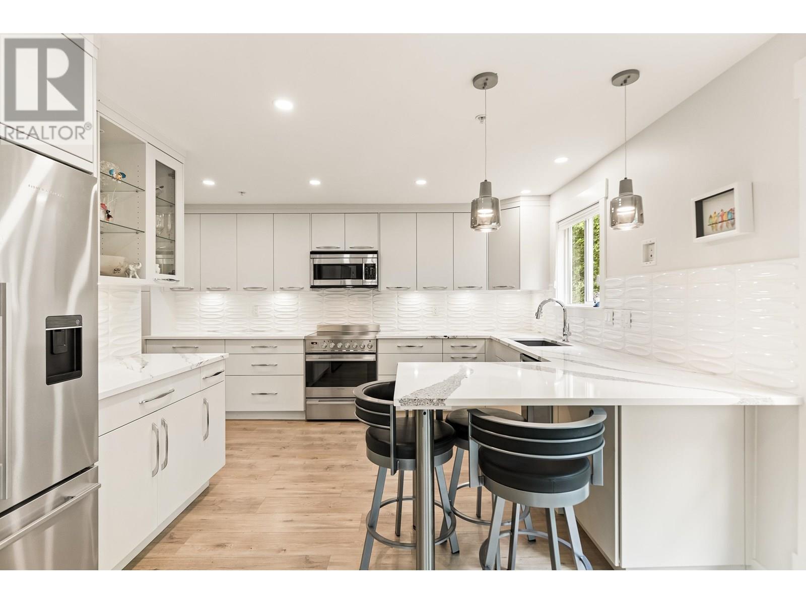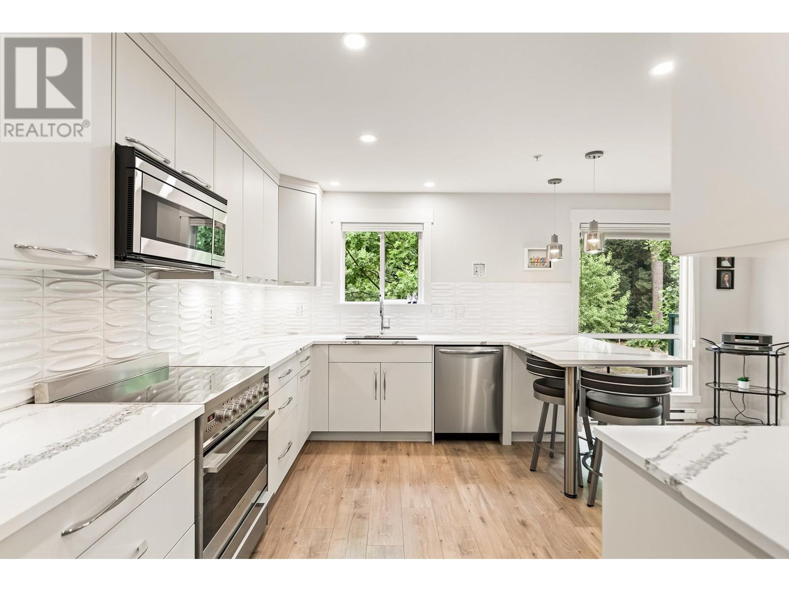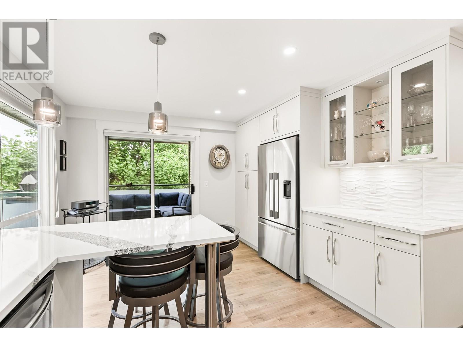 Beautifully updated and move-in ready, this 3-bedroom corner unit in the heart of Pitt Meadows is sure to impress. Renovated by Westcoast Dream Homes, it features a modern kitchen with plenty of new cabinets, stone counters, breakfast bar, tiled backsplash and high-end Fisher & Paykel appliances. The spacious open layout includes a bright living/dining area with floor-to-ceiling windows perfect for entertaining, custom built-ins and a gas fireplace with tile surround. Enjoy time on the large covered private balcony overlooking green space. Additional updates include wide-plank flooring, barn door, new lighting, blinds, new door/window frames and fresh paint. The primary bedroom has a walk-in closet and a spa-like ensuite with heated floors and oversized shower. Comes with 2 parking spots and a storage locker. Walking distance to the West Coast Express, parks, recreation, schools, microbrewery and restaurants! (id:48970) Show More