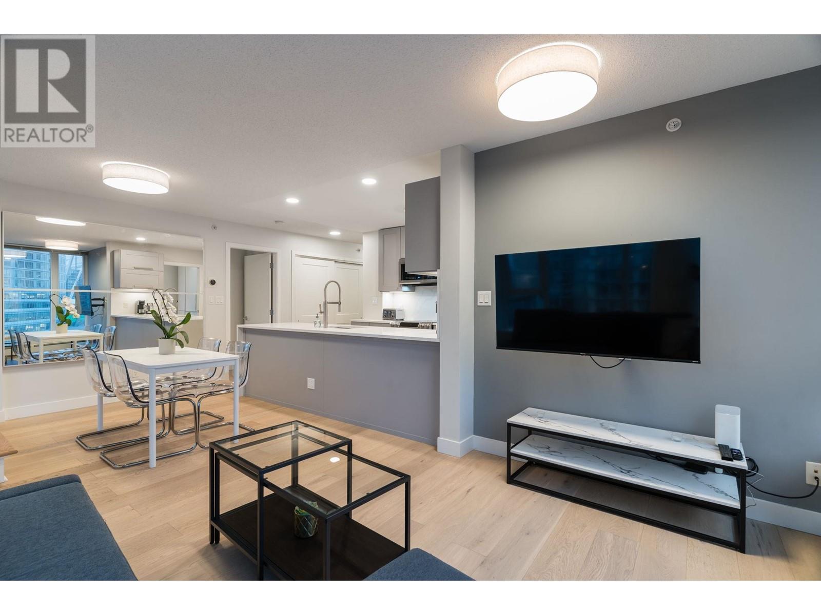 This beautifully renovated 2 bed, 2 bath + den + flex in the iconic Espana Tower offers a rare and efficient layout with space to live, work, and relax in style. Thoughtful upgrades include sleek counters, modern cabinetry, stainless steel appliances, hardwood flooring, custom closets, and two fully redone bathrooms. The building is pet-friendly, allows short-term rentals, and includes top-tier amenities: 24/7 concierge, pool, gym, sauna, theatre, and more. One secured parking and storage locker included. Just steps to the SkyTrain, T&T, Costco, Cineplex, and Crosstown Elementary-downtown living at its best. Call today! (id:48970) Show More