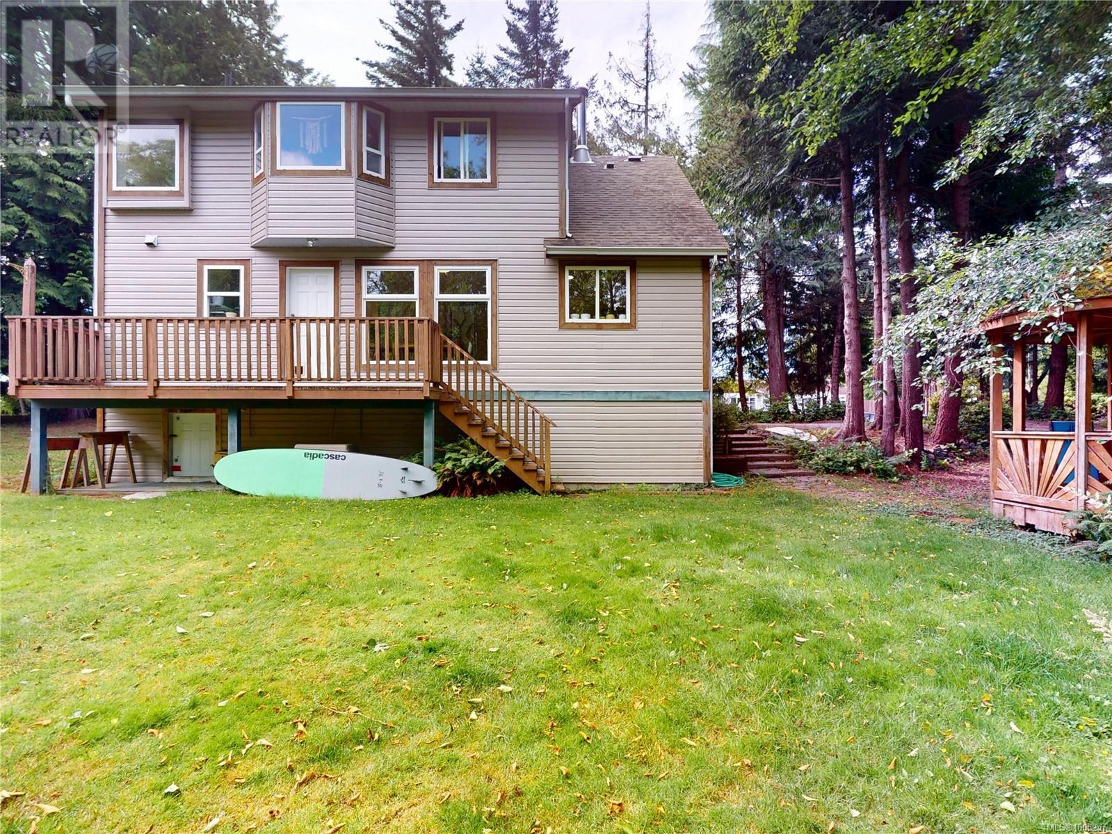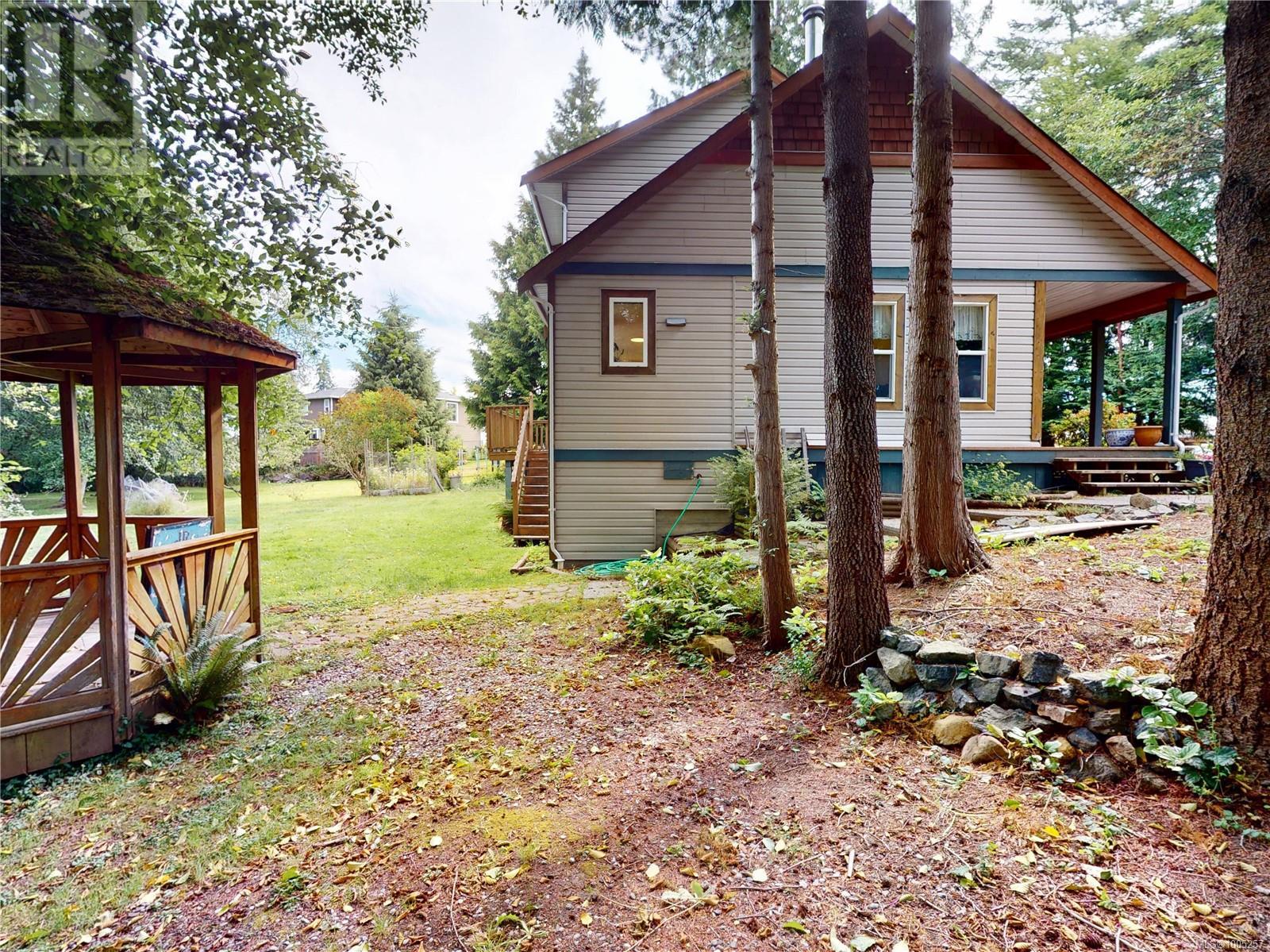 Where else offers you more? Funky West Coast meets Cape Cod with an exterior that exudes warmth & charm on the inside & perfectly sited on a large .37 acre property featuring an expansive rear yard that trails of into parkland/greenbelt teeming with birds and wildlife. A classic covered front verandah greets you & glass panelled fir front door filters light in the perfect entry into this 3 Bedroom 2 bathroom home. The large living room features a soaring vaulted ceiling warmed by a cozy wood stove, open to the gorgeous country kitchen with island, plenty of cabinetry & blissful private outlook over green space and adjacent to the windowed dining room, mudroom. Huge rear yard meshes seamlessly with parkland out back, master suite with window seat, ensuite features jetted tub, sep shower, 3rd BR up. Privacy in front & nature sanctuary at the home's rear. Do we have a Handyman around? You gotta check out the work shop in the crawl space. It's the West Coast life you're looking for! (id:48970) Show More