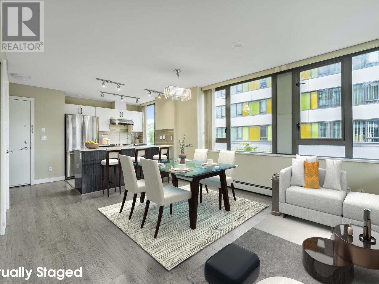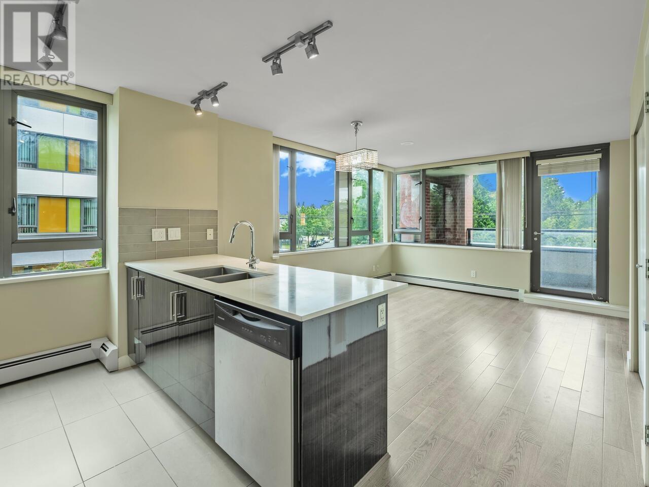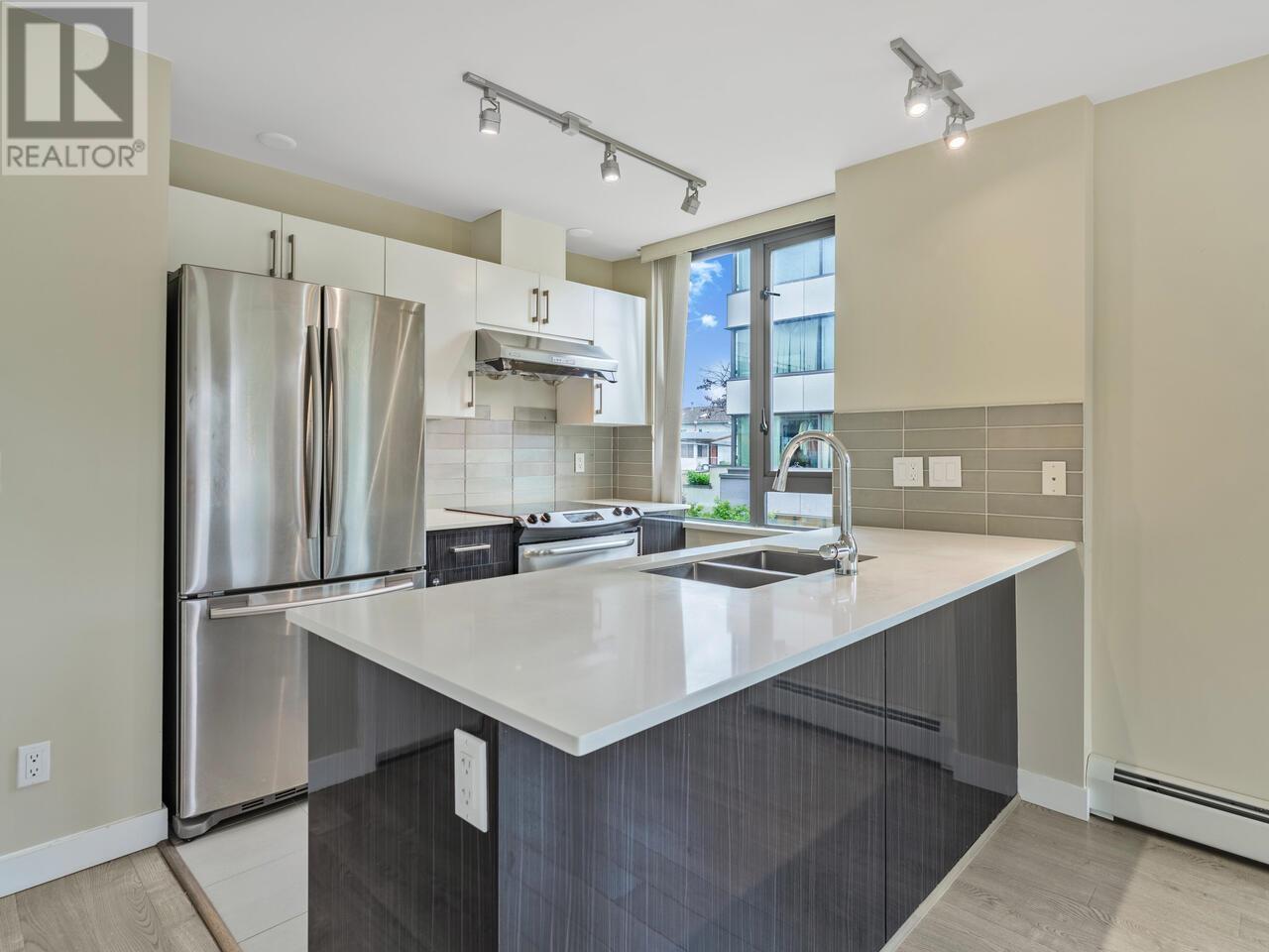 Welcome to Skyway Tower! This corner unit has 2 bedroom, 2 bathroom and a flex, offering very effective and functional layout, provides bright and green SE facing to the Norquay Park! Kitchen equipped with S/S appliances, quartz counter top and backsplash tiles. A flex room inside the unit can be used as a pantry or storage. Convenient central location, walking to schools, parks, public transits, restaurants, shopping and much more. Easy commute to Metrotown and downtown. Plus 1 parking and 1 locker, a full package awaiting for you to call it home! Open House: Saturday July 12, 2-4pm (id:48970) Show More