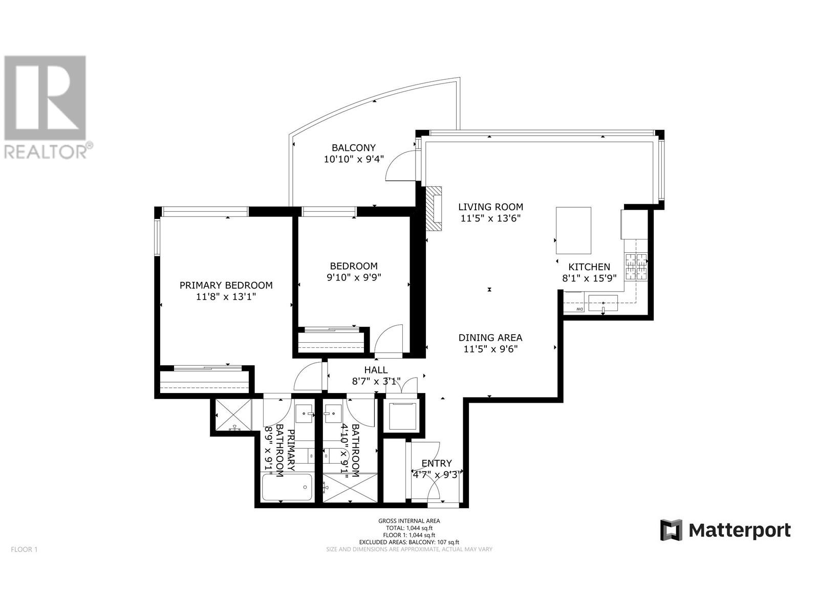 - Area 1044 sq ft