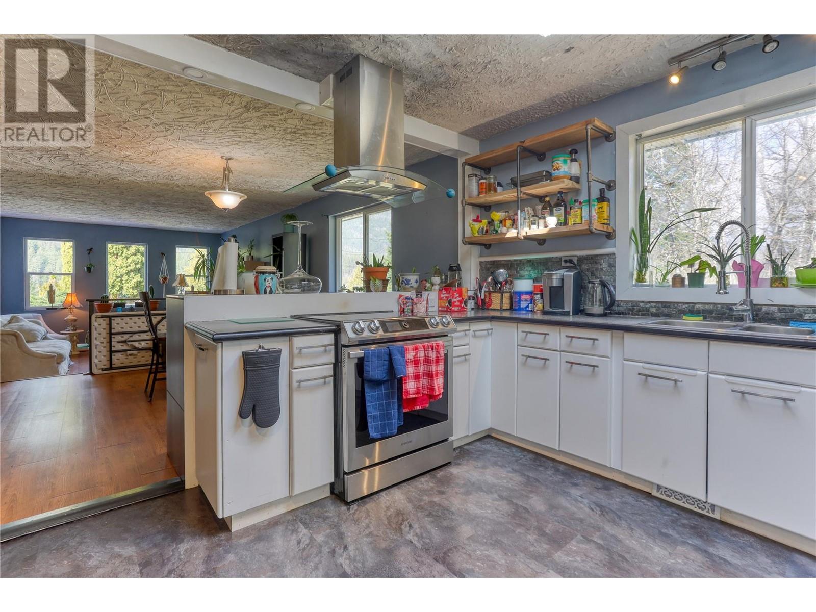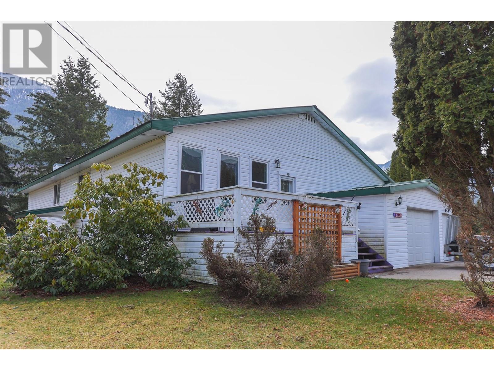 Welcome to this beautiful 1.21-acre property in the peaceful community of Glade, BC, just a short walk from the stunning Kootenay River. This flat, sunny lot offers plenty of space for both relaxation and recreation. The large family home features a bright kitchen with a skylight, allowing natural light to flood the space. The cozy sunken living room, with its French doors leading to a partially covered deck, is perfect for enjoying the serene surroundings. The main home includes three spacious bedrooms, with the primary bedroom offering a private en suite. Additionally, there is a fully self-contained two-bedroom suite with its own laundry and a walkout basement, providing great potential for rental income or extended family. The fully fenced backyard is ideal for animals, with plenty of room for pets to roam freely. The property also boasts a newly installed septic system (approximately two years old) and a one-car attached garage/shop. Large, mature trees and fruit trees provide shade, beauty, and privacy. With ample space to build a detached garage or additional structures, this property offers endless possibilities. Whether you're looking for a peaceful retreat, a place to grow your family, or an investment opportunity, this home in Glade is truly a gem. (id:48970) Show More