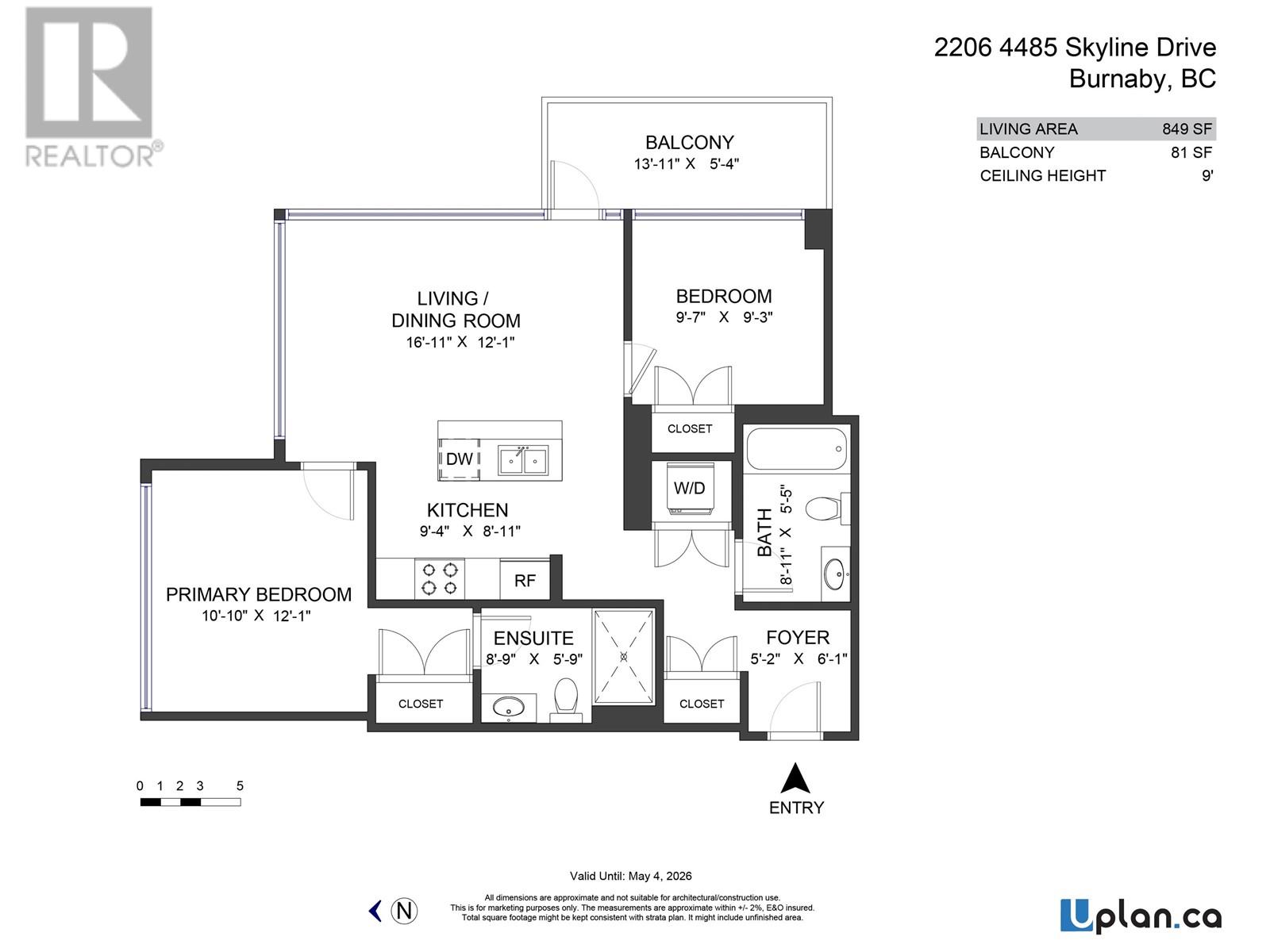- Area 849 sq ft