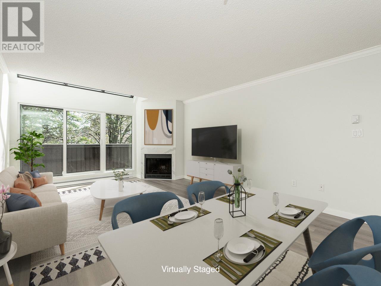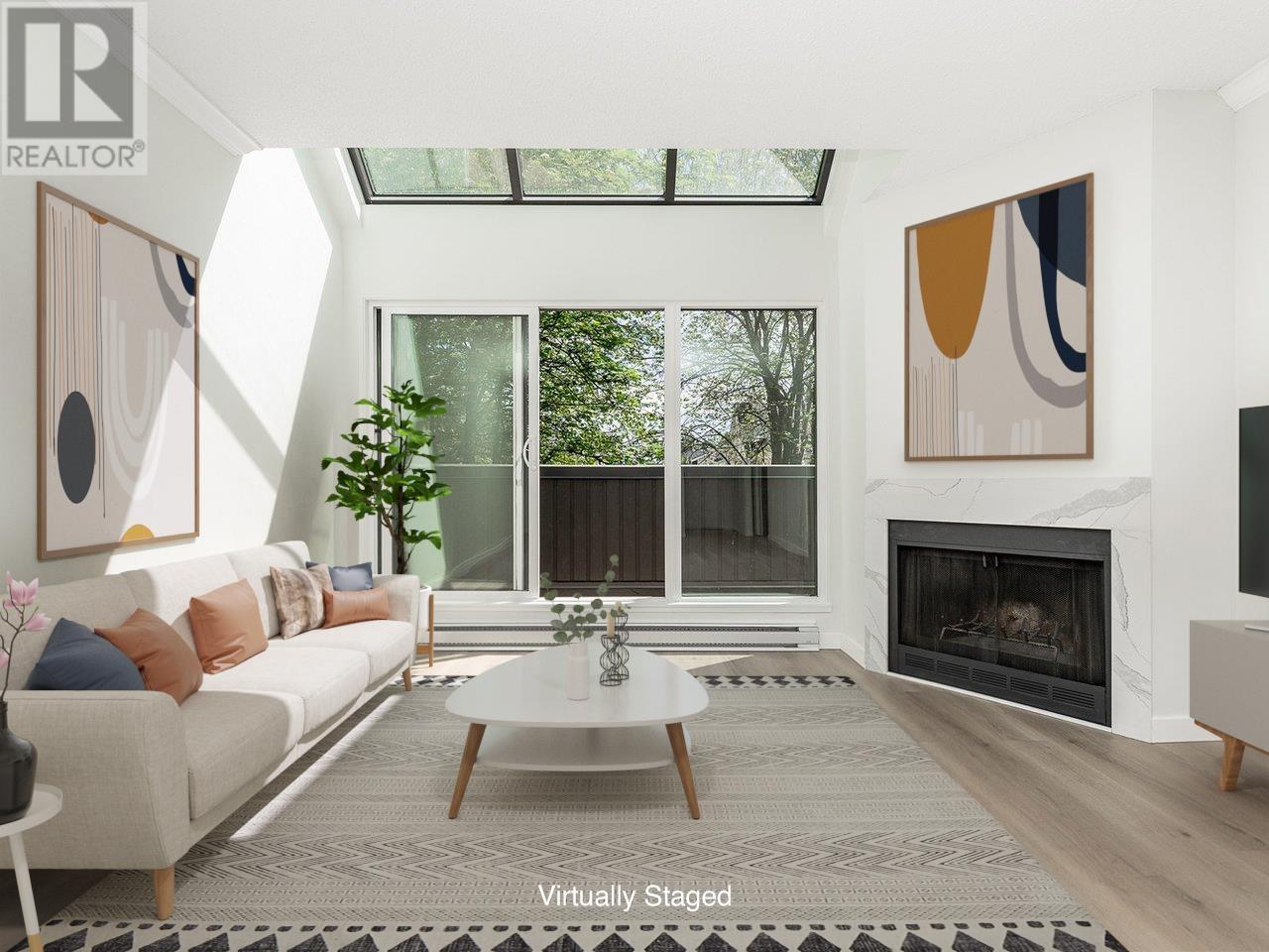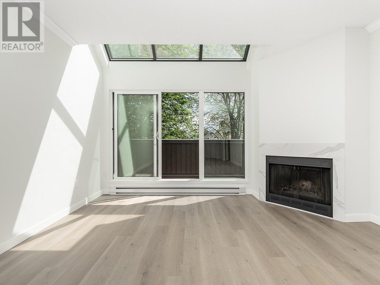 Welcome to Ashford Place! This fully renovated 1-bedroom suite in the heart of Richmond is move-in ready and packed with thoughtful updates. Enjoy brand-new vinyl plank flooring, a sleek modern kitchen with Quartz countertops, updated appliances, recessed lighting, stylish doors, and designer fixtures throughout. The bathroom features a new vanity, updated fixtures, and a charming wood feature wall. The fireplace has also been tastefully refreshed with a Quartz surround, adding a modern touch to the living area. The bright and airy living room is enhanced by skylights, bringing in natural light and warmth. Additional perks include in-suite laundry, secured parking, and access to fantastic amenities: an outdoor pool, hot tub, and fitness room in the shared rec centre. All renovations are professionally done with attention to detail. Located just steps to Minoru Park, transit, Richmond Centre, and more! (id:48970) Show More