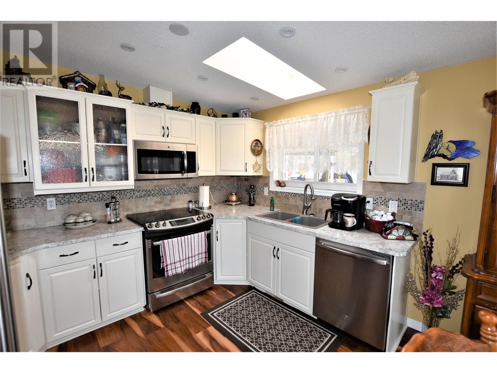 Nestled on a spacious corner lot at 223 Cougar Street in Parker Cove, this immaculate modular home offers a delightful Okanagan living experience. The property features two bedrooms plus a versatile den, ideal for a home office or guest space, and two well-appointed bathrooms. The bright kitchen boasts crisp white cabinetry, stainless steel appliances, a skylight that floods the space with natural light, and ample storage for your culinary needs. The master bedroom includes a convenient 3-piece in-suite bathroom, while the den/office provides a practical and private workspace. Gorgeous walnut hardwood flooring adds warmth throughout the main living area, complemented by large windows that create a bright atmosphere. The property has a new furnace and A/C (installed December 2022), ensuring peace of mind and energy efficiency. Outdoors, enjoy a fenced backyard, carport, and an attached single-car garage with a workbench. Additional features include underground sprinklers, a crawl space, and a shed for ample storage. The low-maintenance landscaping lets you enjoy the beautiful Okanagan surroundings with minimal upkeep. Located just a few minutes’ walk from a shared beach, this property benefits from a lease registered until 2043, with an annual lease payment of $4702.25 for 2025. Here is an affordable opportunity to embrace the Okanagan lifestyle near the lake. (id:48970) Show More