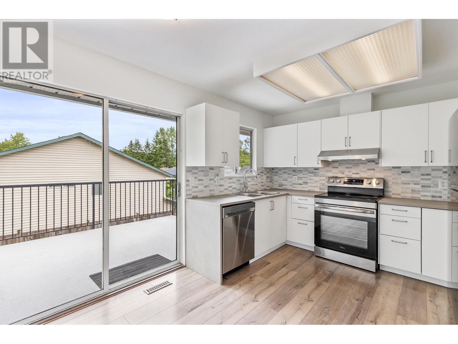 CENTRAL MAPLE RIDGE - Conveniently located basement entry home with fresh paint, new kitchen and appliances, and recent flooring throughout. Situated on a no through street, easy access to Abernethy Way, steps to transit, Alouette Elementary, and a quick walk to all the amenities of downtown. The level entry basement features tons of daylight, a walk out patio, 2 beds, and would make a great inlaw suite. Upstairs are 3 more beds, spacious living room with wood burning fireplace, and easy access to a large sundeck. Book your appointment with your Realtor today. *Photos showing furniture are virtually staged* Walk through Tour attached (id:48970) Show More