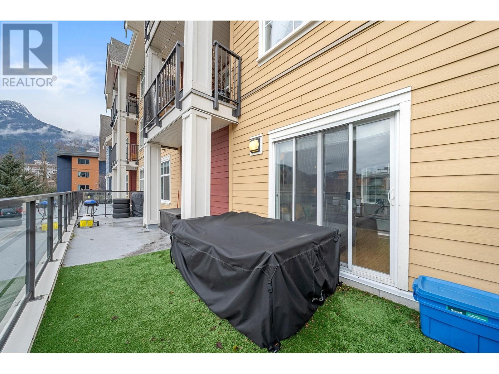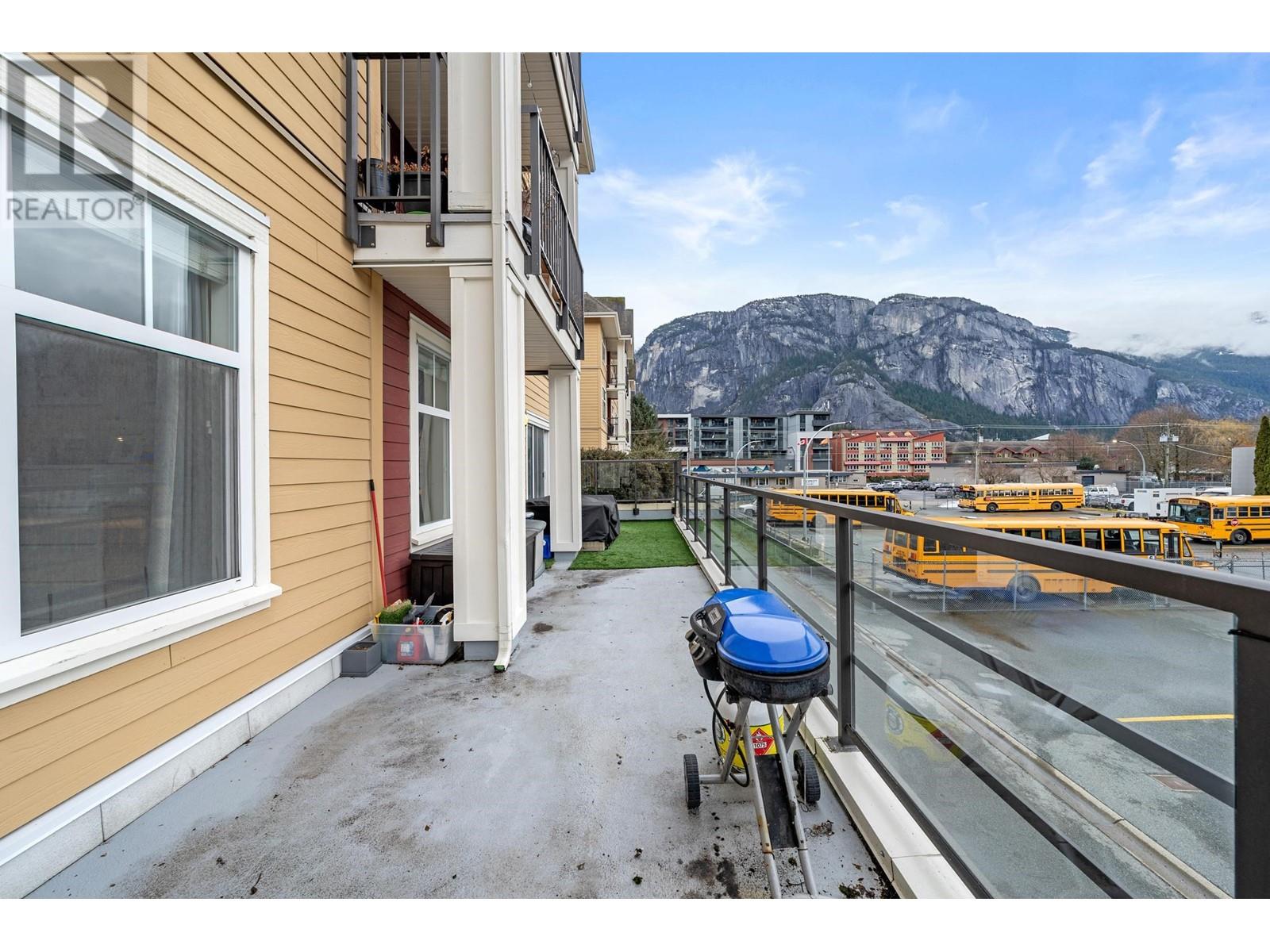 One of the most desirable units in the Artisan in beautiful DT Squamish. End unit 2BR/2BA with an exceptional layout offering privacy yet perfect socializing at your doorstep. 36 foot long (346 ft²) private deck with panoramic views of The Chief, Shannon Falls & mtn's to the south & west. Room for BBQ, dining plus lounging. Massive storage room (over 6 feet wide & goes floor-to-ceiling) on the same floor just down the hall with room for multiple mountain bikes, shelving system, storage bins & more. 1 secure over-height parking spot tall enough to dry out your tent on top of your vehicle plus an additional bike room right next to your end spot. Large common areas with kids play area close enough to hand food from your BBQ or cold ones from your kitchen window. A wonderful layout with all the storage to support this world class lifestyle just steps from shops, library, eats, treats & adventures. (id:48970) Show More