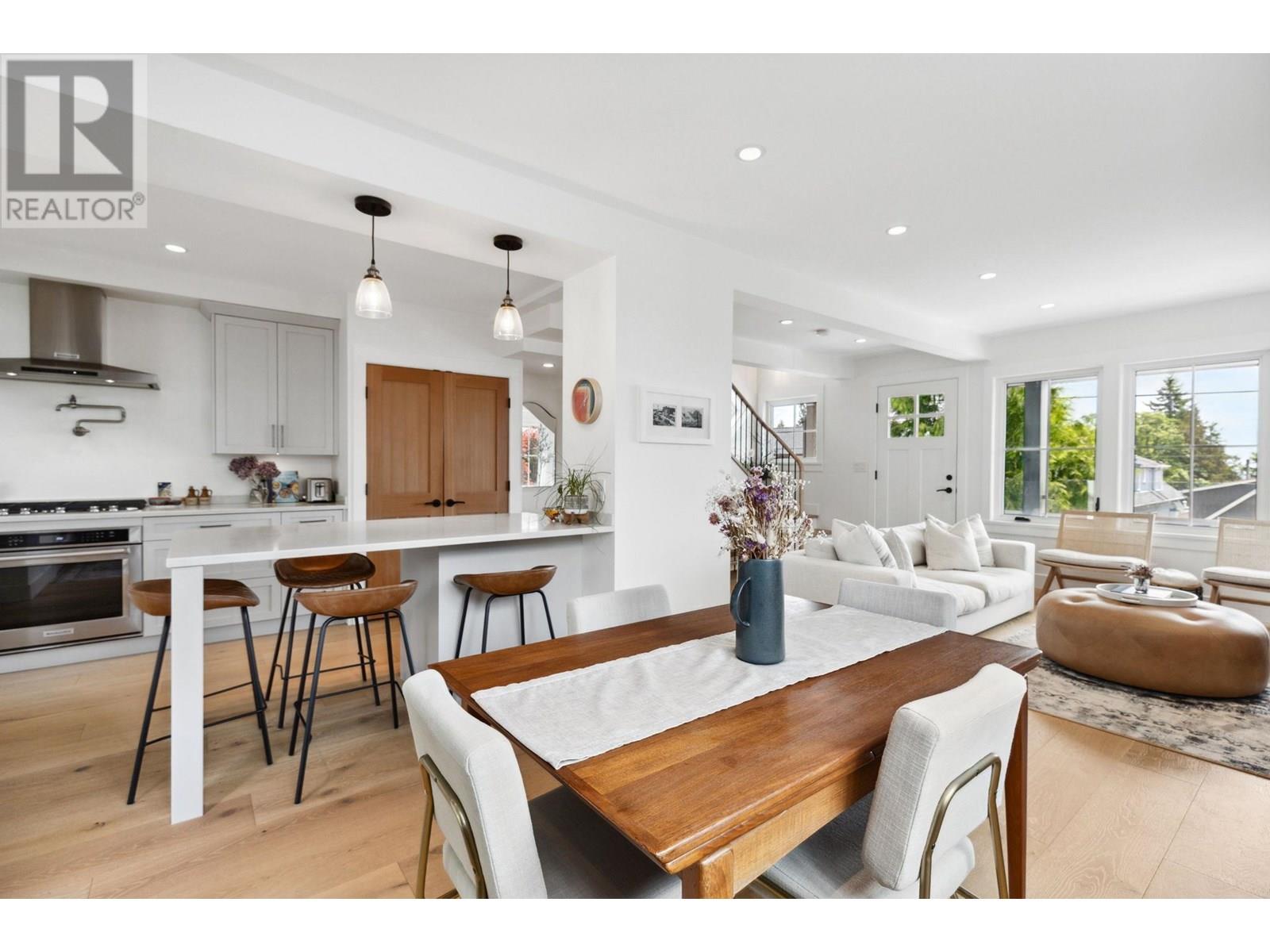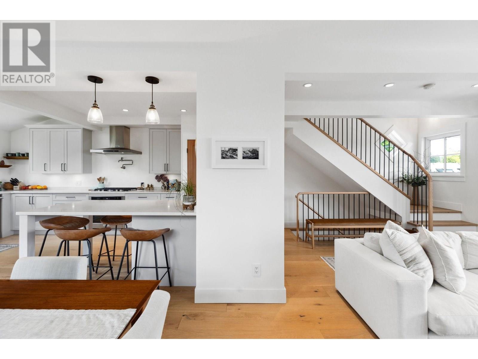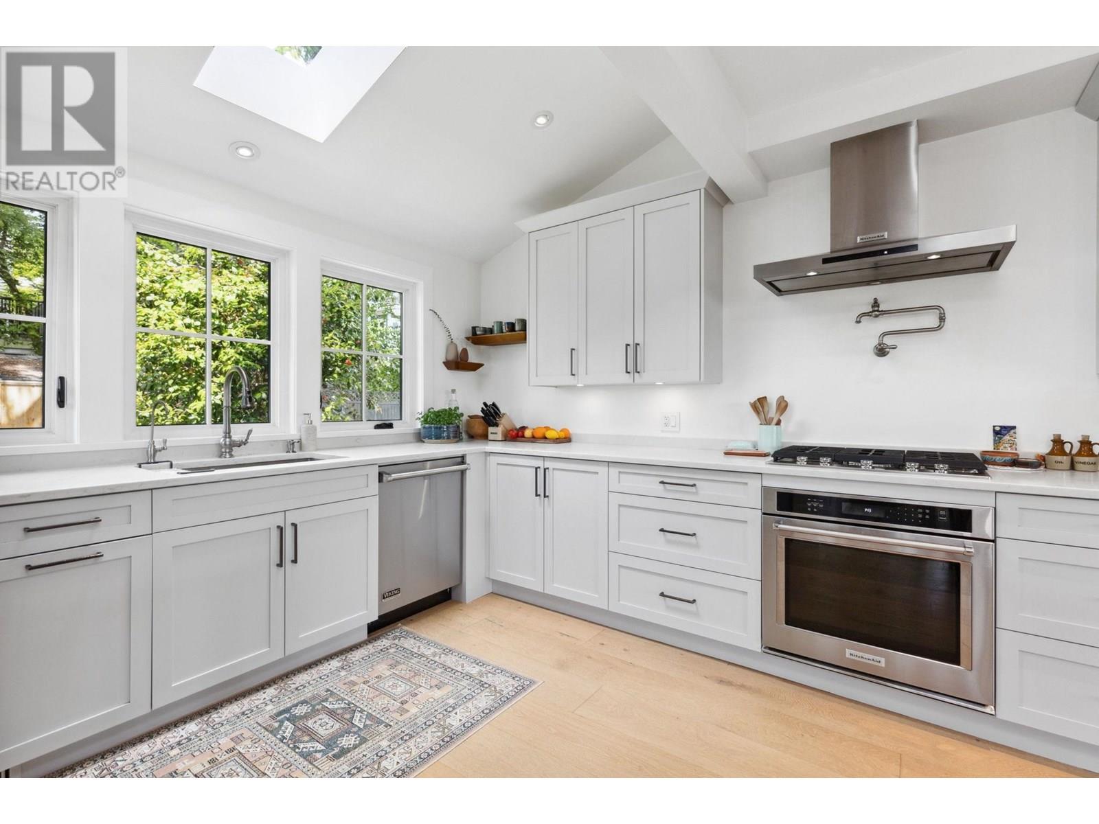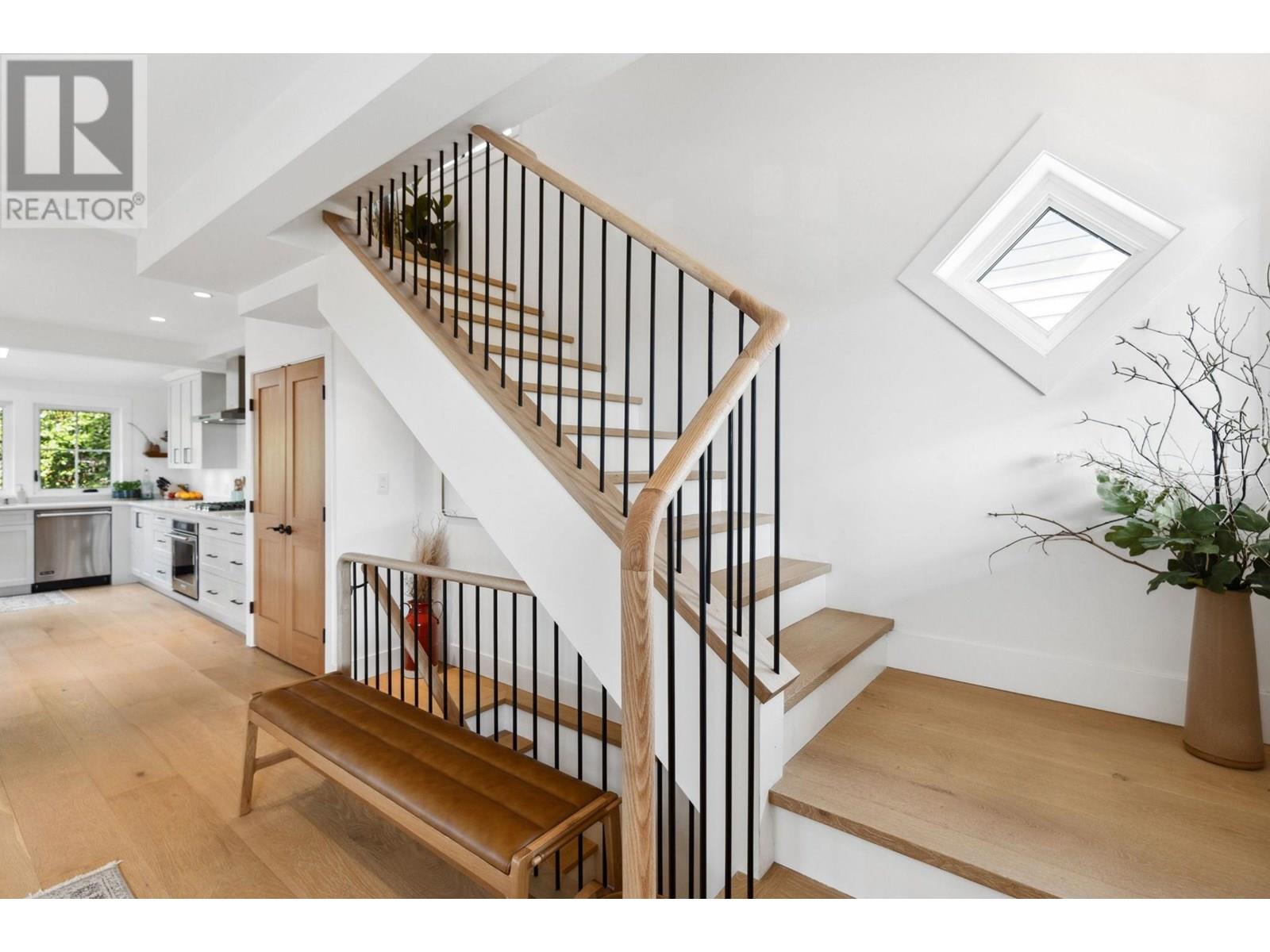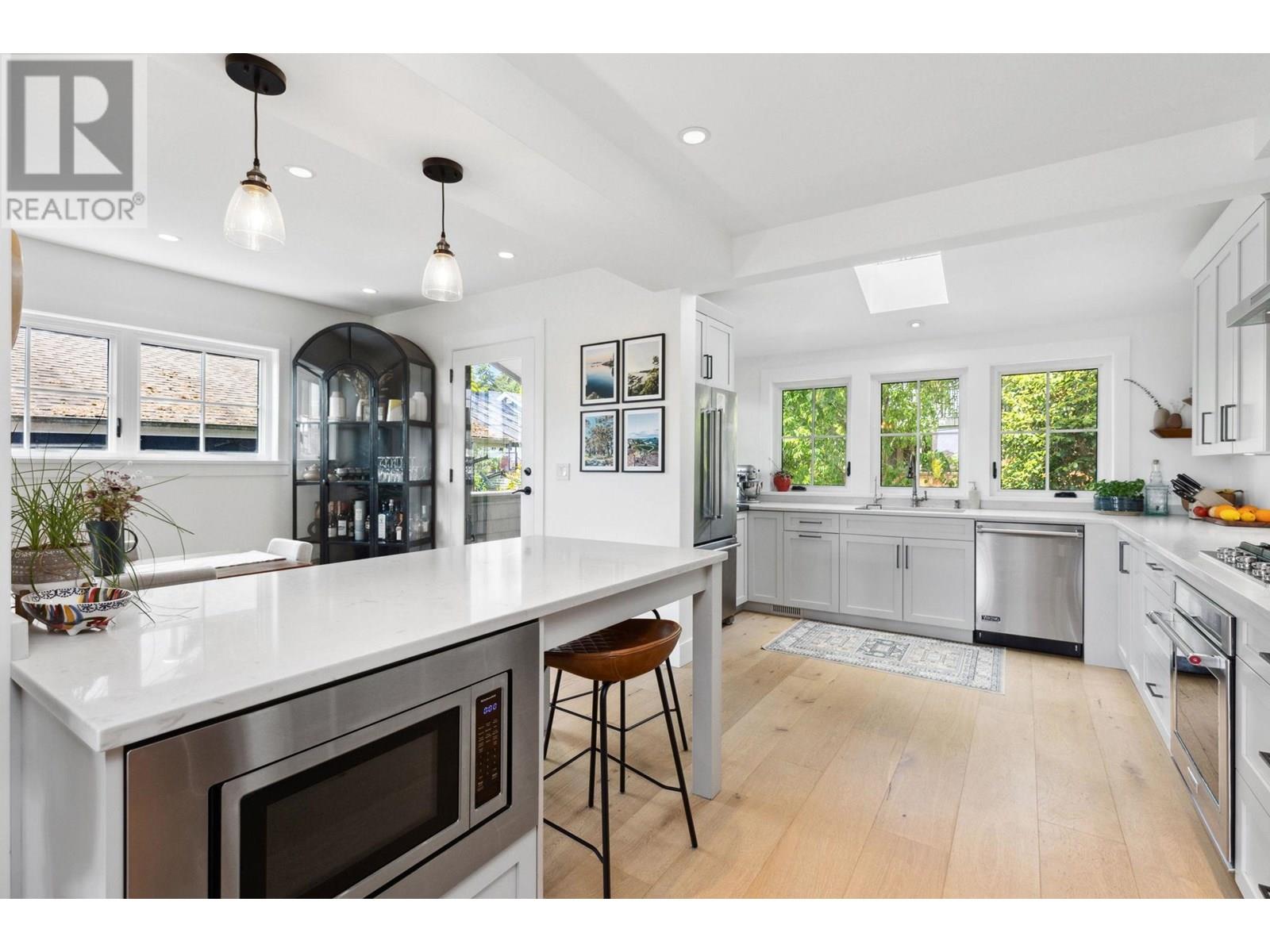 This extensively renovated home has been meticulously upgraded over the past 8 years, with nearly every component renewed-plumbing, electrical, insulation, drywall, windows, cedar shingle siding, and high-end custom finishes throughout. Inside, it features engineered wide-plank white oak flooring and heated polished concrete on the lower level. A Rinnai on-demand hot water system and air-handling furnace provide year-round efficiency and comfort. The kitchen is a showstopper with solid maple millwork, stone countertops, a large island, and premium KitchenAid and Viking appliances. The spa-like primary bath includes NuHeat in-floor heating, a frameless glass shower, stone soaker tub, and a bespoke double vanity. Enjoy panoramic ocean, city, and English Bay views from multiple sun-drenched decks. The lower level offers suite potential with its own kitchen, bath, and entry. A drivable grass driveway, new LG laundry, lush landscaping, and carport complete this exceptional property. (id:48970) Show More