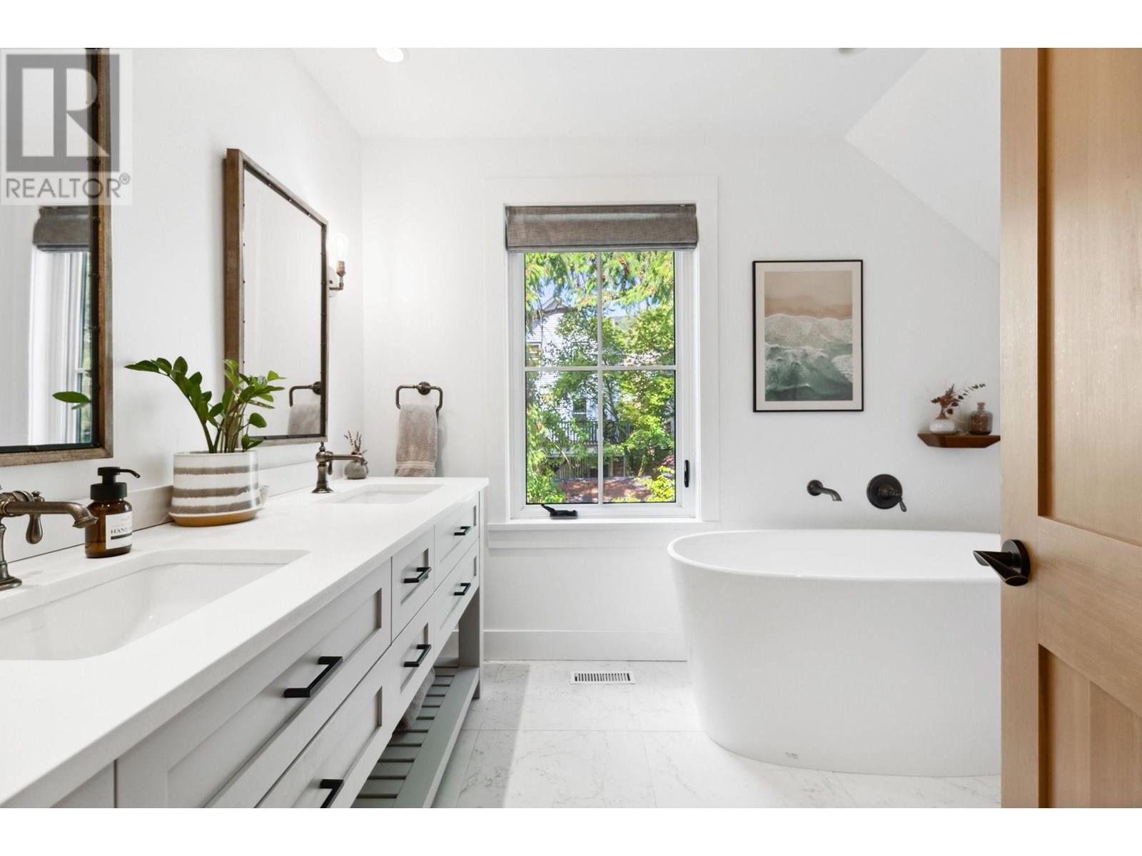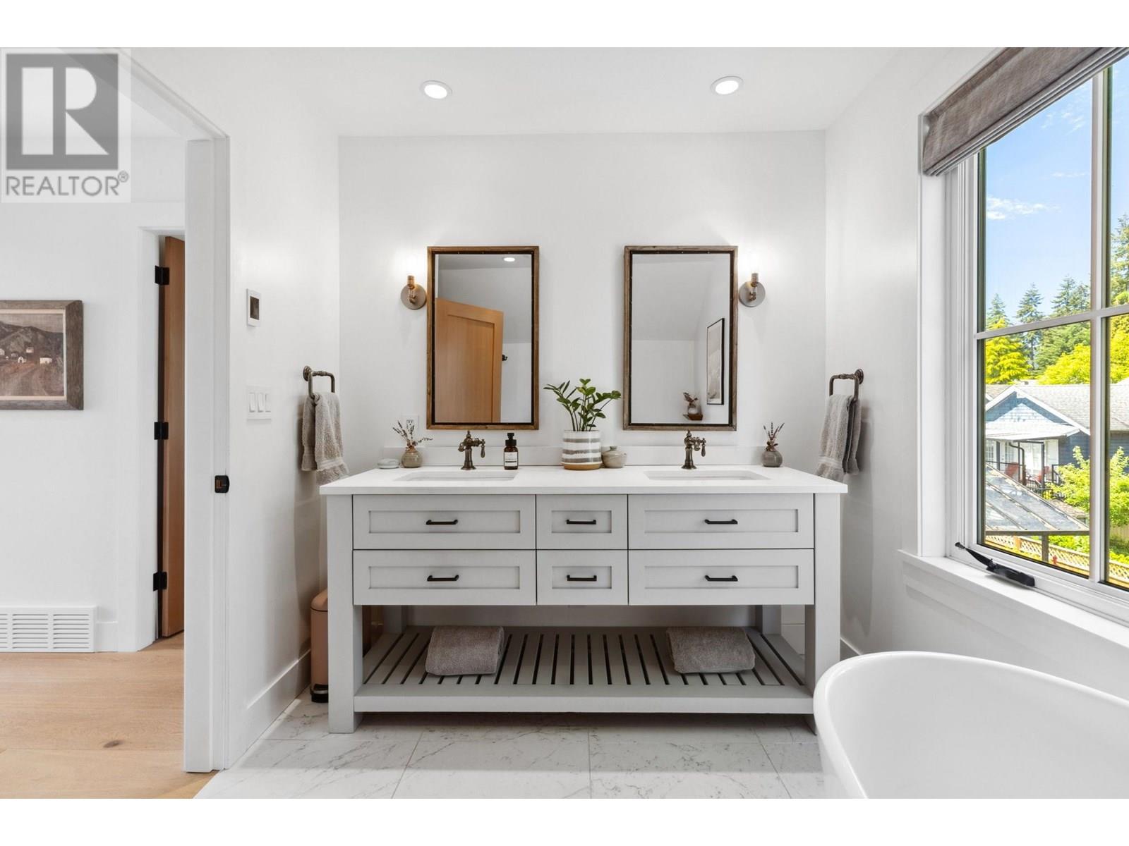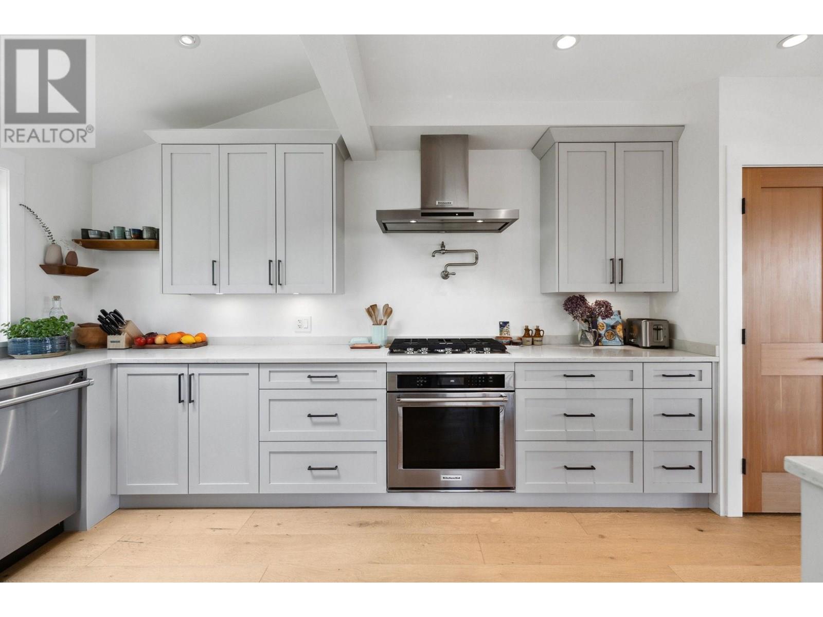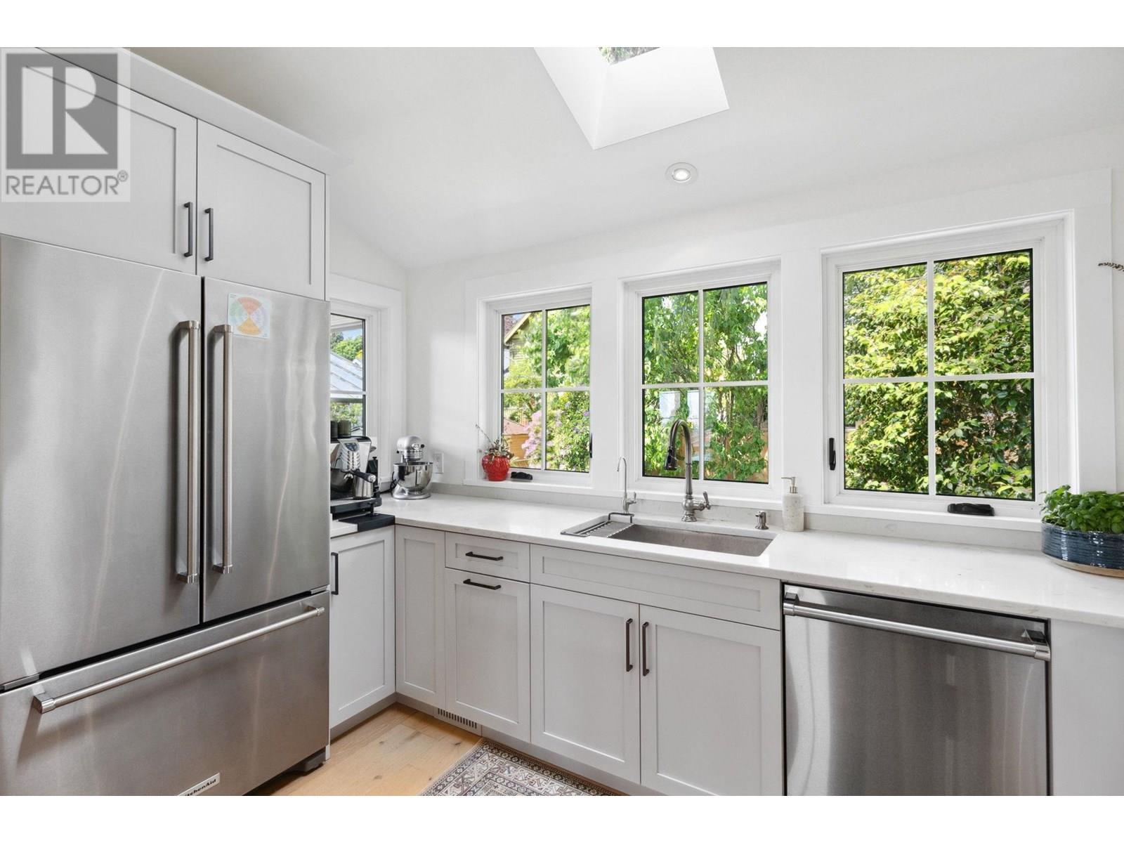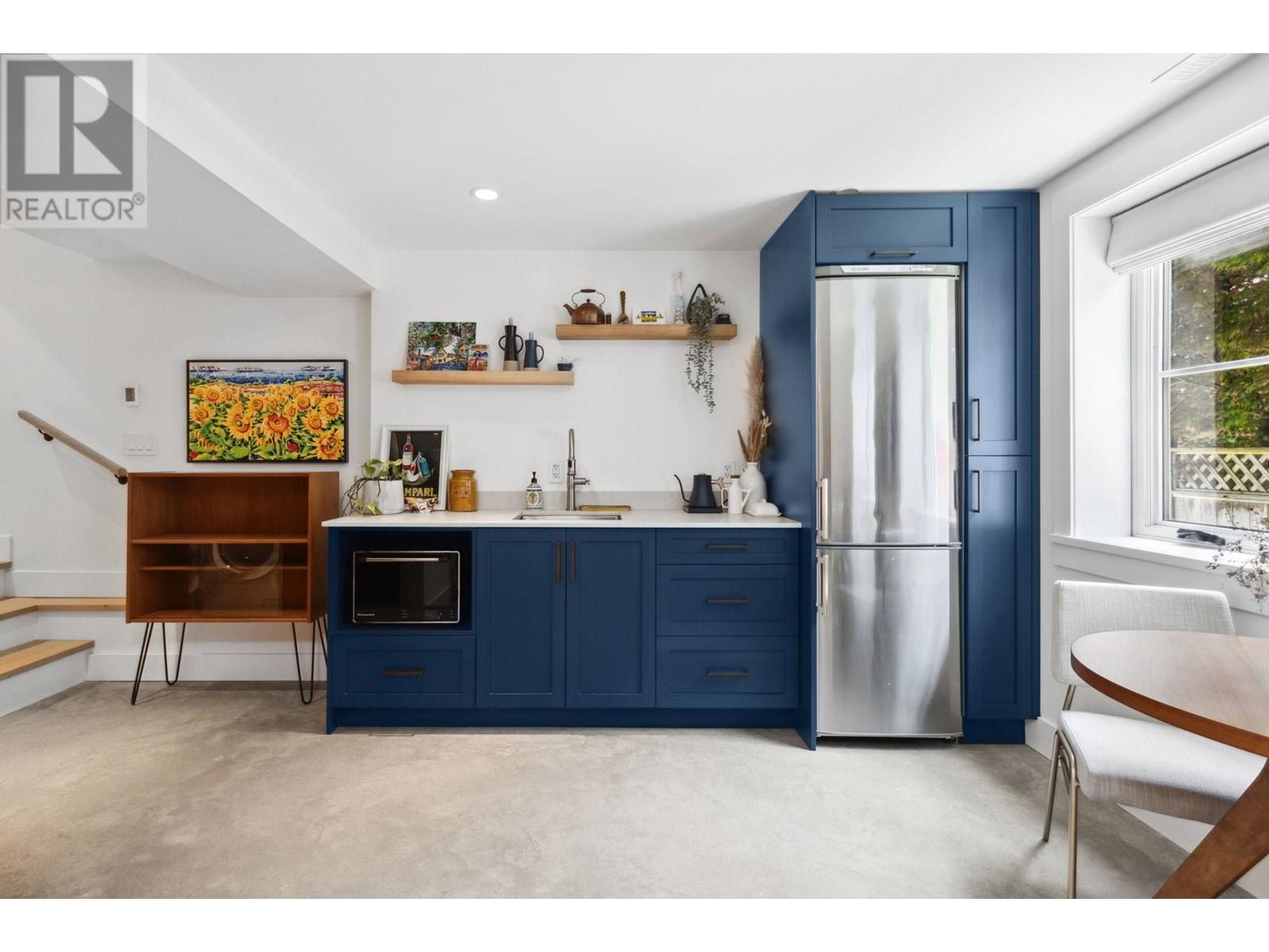 This extensively renovated home has been meticulously upgraded over the past 8 years, with nearly every component renewed-plumbing, electrical, insulation, drywall, windows, cedar shingle siding, and high-end custom finishes throughout. Inside, it features engineered wide-plank white oak flooring and heated polished concrete on the lower level. A Rinnai on-demand hot water system and air-handling furnace provide year-round efficiency and comfort. The kitchen is a showstopper with solid maple millwork, stone countertops, a large island, and premium KitchenAid and Viking appliances. The spa-like primary bath includes NuHeat in-floor heating, a frameless glass shower, stone soaker tub, and a bespoke double vanity. Enjoy panoramic ocean, city, and English Bay views from multiple sun-drenched decks. The lower level offers suite potential with its own kitchen, bath, and entry. A drivable grass driveway, new LG laundry, lush landscaping, and carport complete this exceptional property. (id:48970) Show More