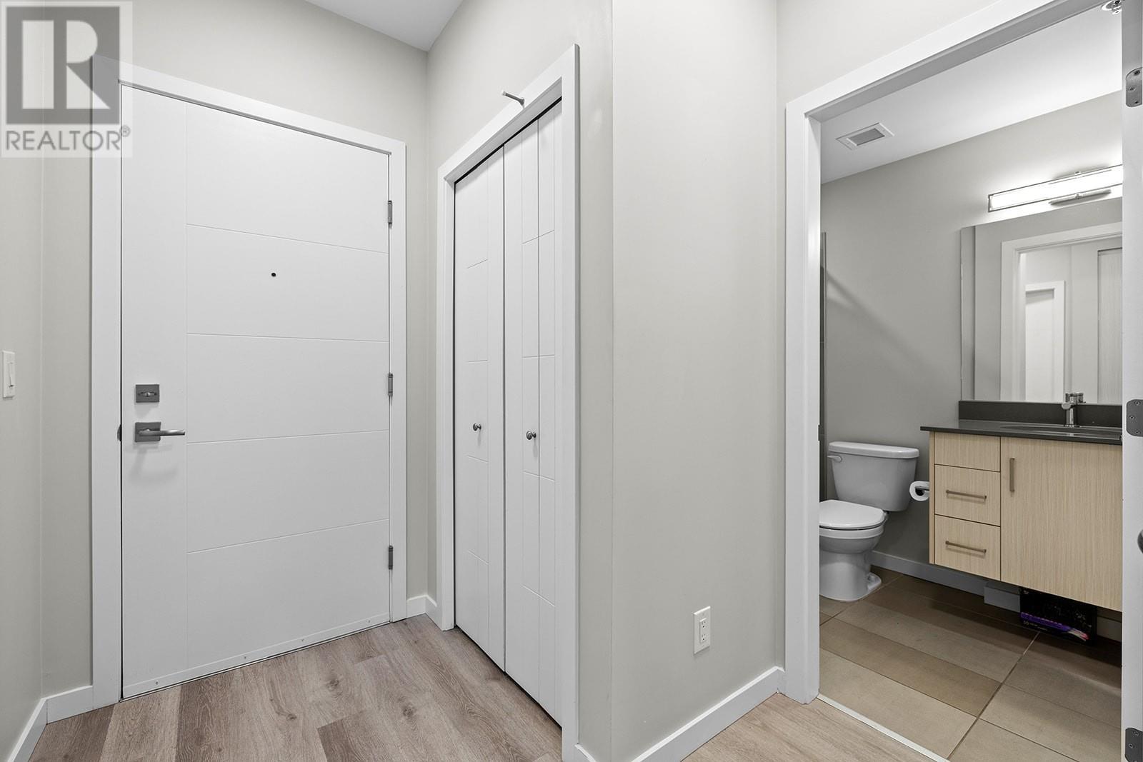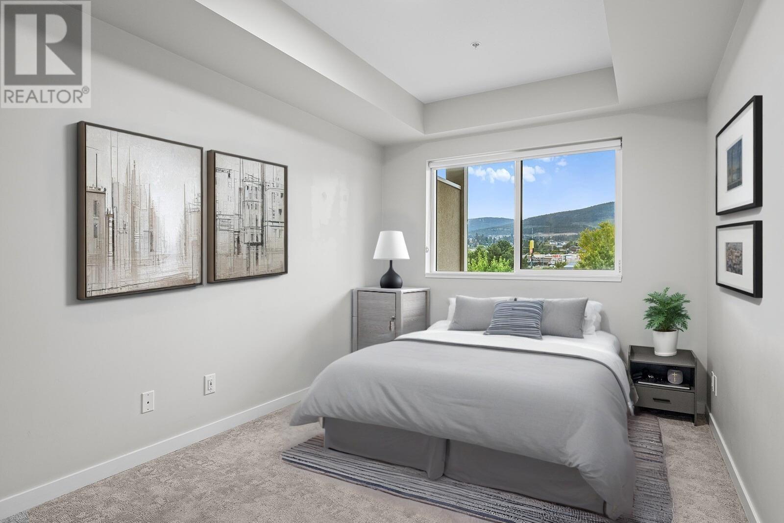 Welcome to this well laid-out unit in the sought-after Centro development. This stunning 1 bed and den home comes with underground parking, a storage locker and all the luxuries you would expect from a newer build! Featuring nine foot tray ceilings, quartz countertops, contemporary 2-tone flat panel cabinetry with soft closers, kitchen island, vinyl plank flooring and plush carpet in the bedroom, Whirlpool stainless steel appliances, full size washer and dryer, and ceramic tile flooring in your modern bathroom. Enjoy the views from your third-floor, covered balcony and bring your furry friends as Centro allows 2 cats or dogs (or a combination) with no size restrictions! With Rentals allowed, PTAC Heating & Cooling system and amenities such as a lounge with kitchen, fitness room, bike storage and a guest suite for your overnight visitors, this home is bursting with value and close proximity to parks, beaches, trails, wineries and an abundance of shops, restaurants and services! (id:48970) Show More