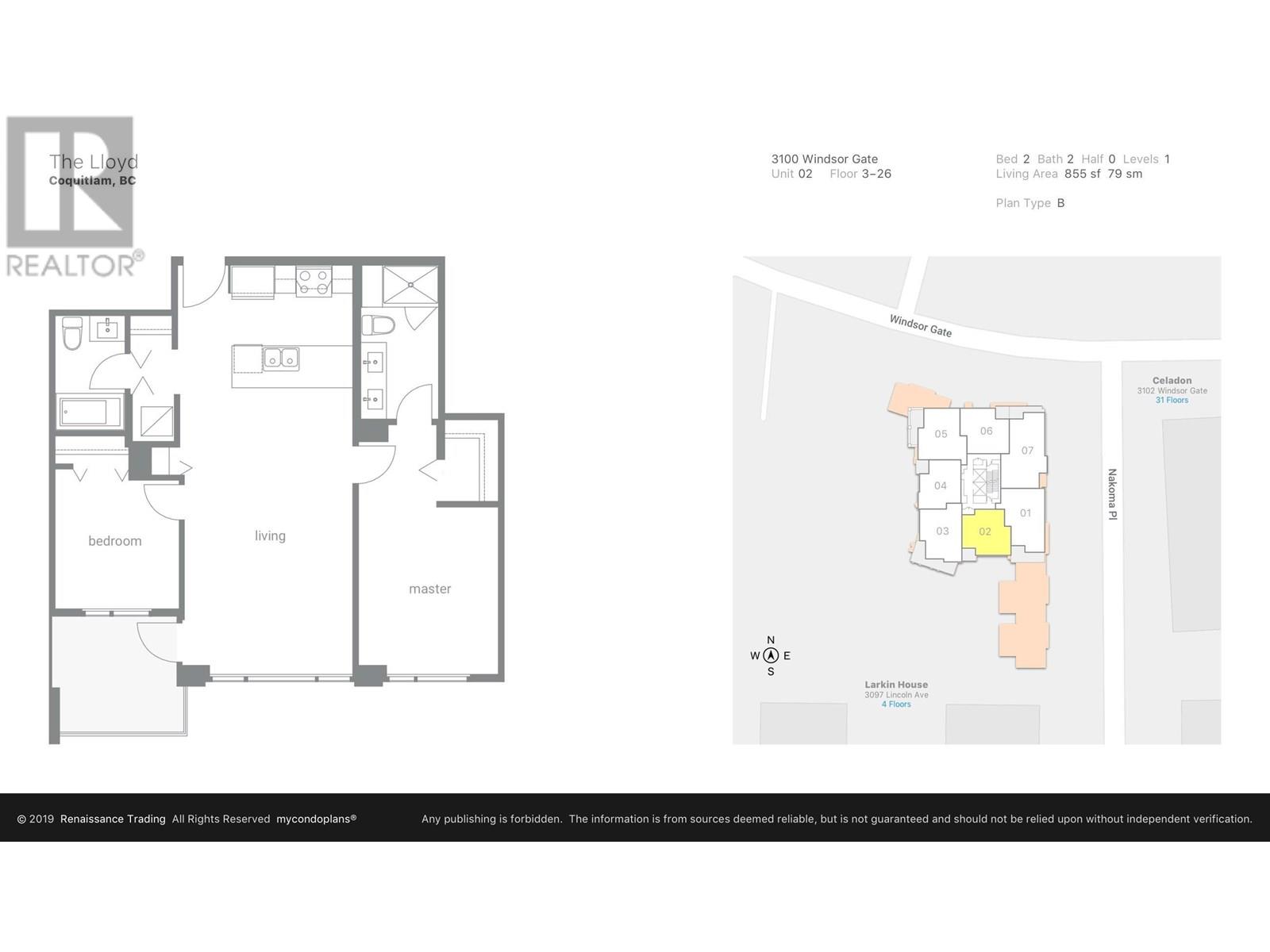 - Area 855 sq ft