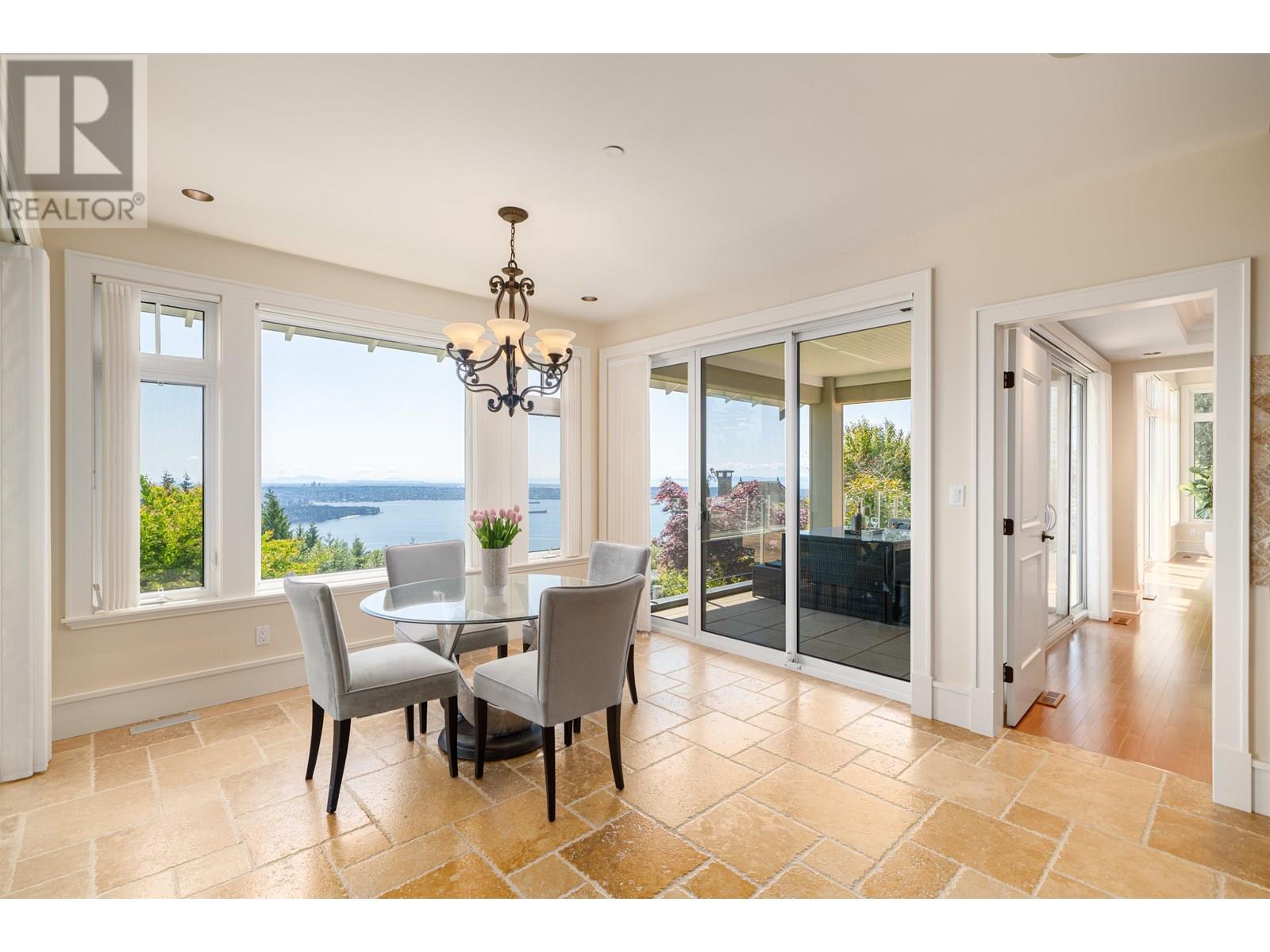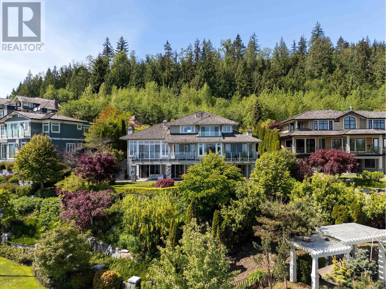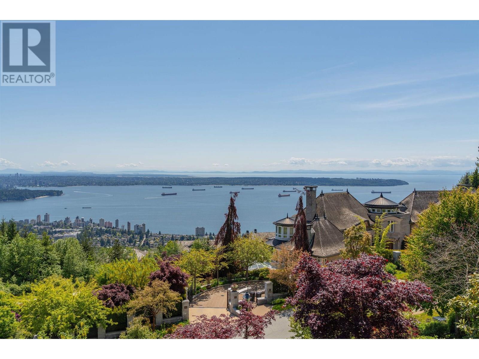Perched in a prime Whitby Estates cul-de-sac, this beautifully maintained custom-built home offers unobstructed panoramic ocean, city and Lions Gate Bridge views from all 3 levels. Features include a heated driveway, home office, spacious recreation/media room, security system, built-in vacuum, sound system, and top-tier Viking & Wolf appliances.The upper level showcases a grand primary suite with spa-like ensuite, while the lower level offers 3 ensuite bdrooms, perfect for family and guests. Multiple patios and balconies invite you to enjoy breathtaking sunsets & city lights year-round. Ideally located minutes to Collingwood, Mulgrave, and within the sought-after Chartwell Elementary and Sentinel Secondary catchments.Quiet, private, and offering truet West Van luxury living at its finest! (id:48970) Show More