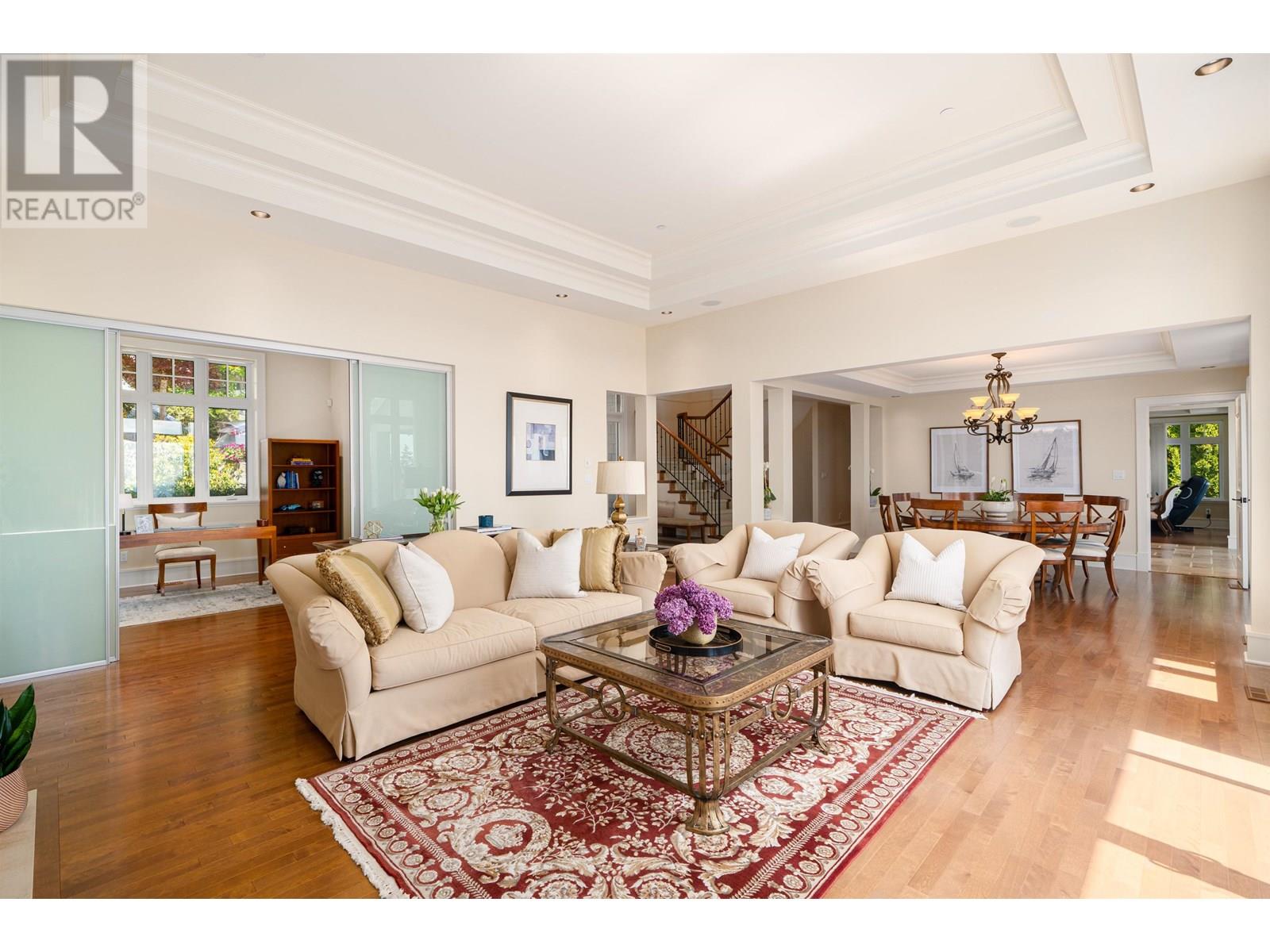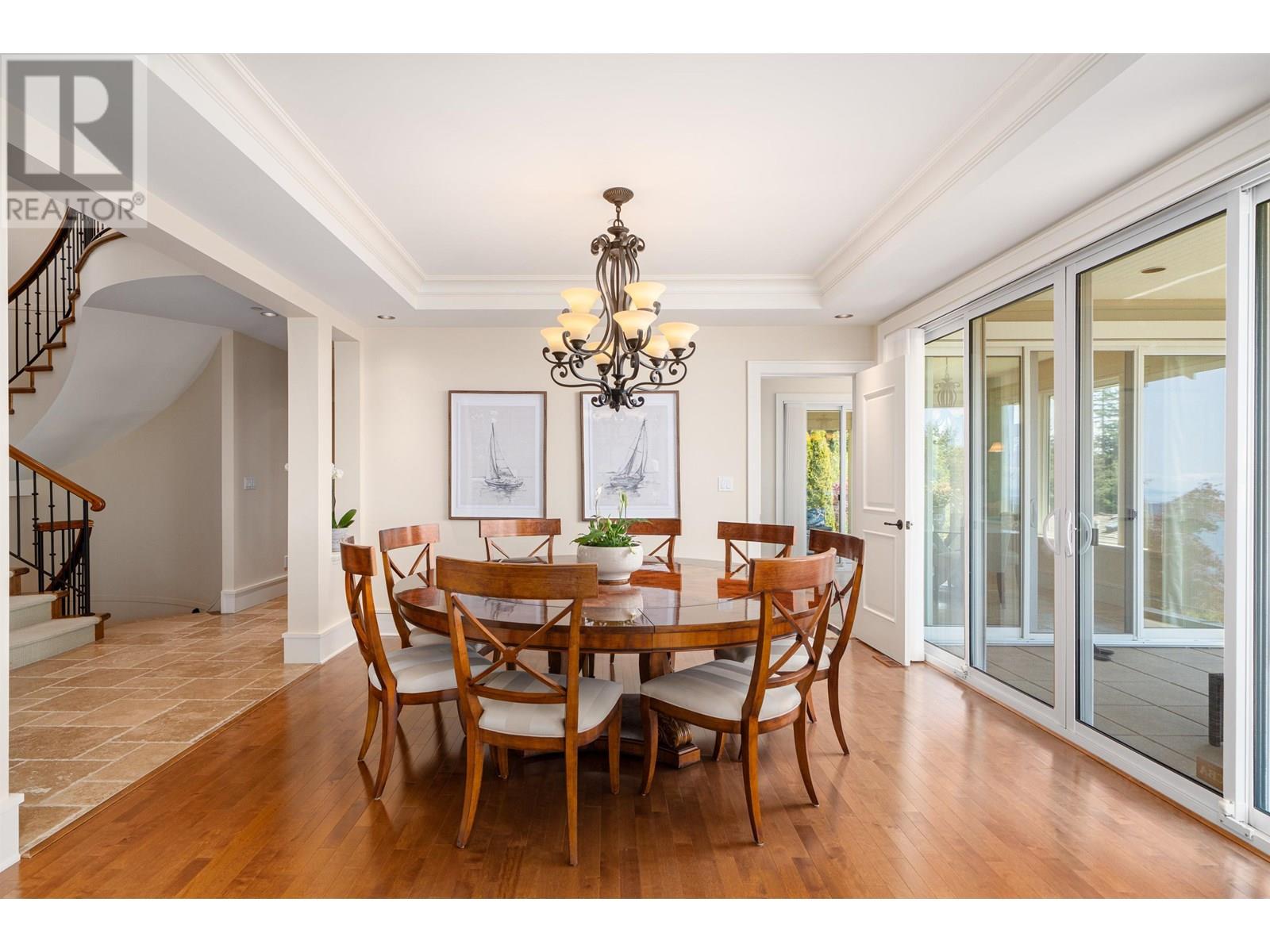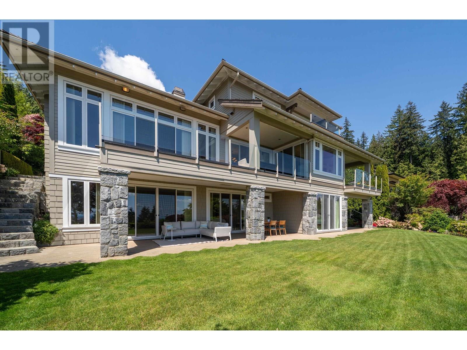 Perched in a prime Whitby Estates cul-de-sac, this beautifully maintained custom-built home offers unobstructed panoramic ocean, city and Lions Gate Bridge views from all 3 levels. Features include a heated driveway, home office, spacious recreation/media room, security system, built-in vacuum, sound system, and top-tier Viking & Wolf appliances.The upper level showcases a grand primary suite with spa-like ensuite, while the lower level offers 3 ensuite bdrooms, perfect for family and guests. Multiple patios and balconies invite you to enjoy breathtaking sunsets & city lights year-round. Ideally located minutes to Collingwood, Mulgrave, and within the sought-after Chartwell Elementary and Sentinel Secondary catchments.Quiet, private, and offering truet West Van luxury living at its finest! (id:48970) Show More