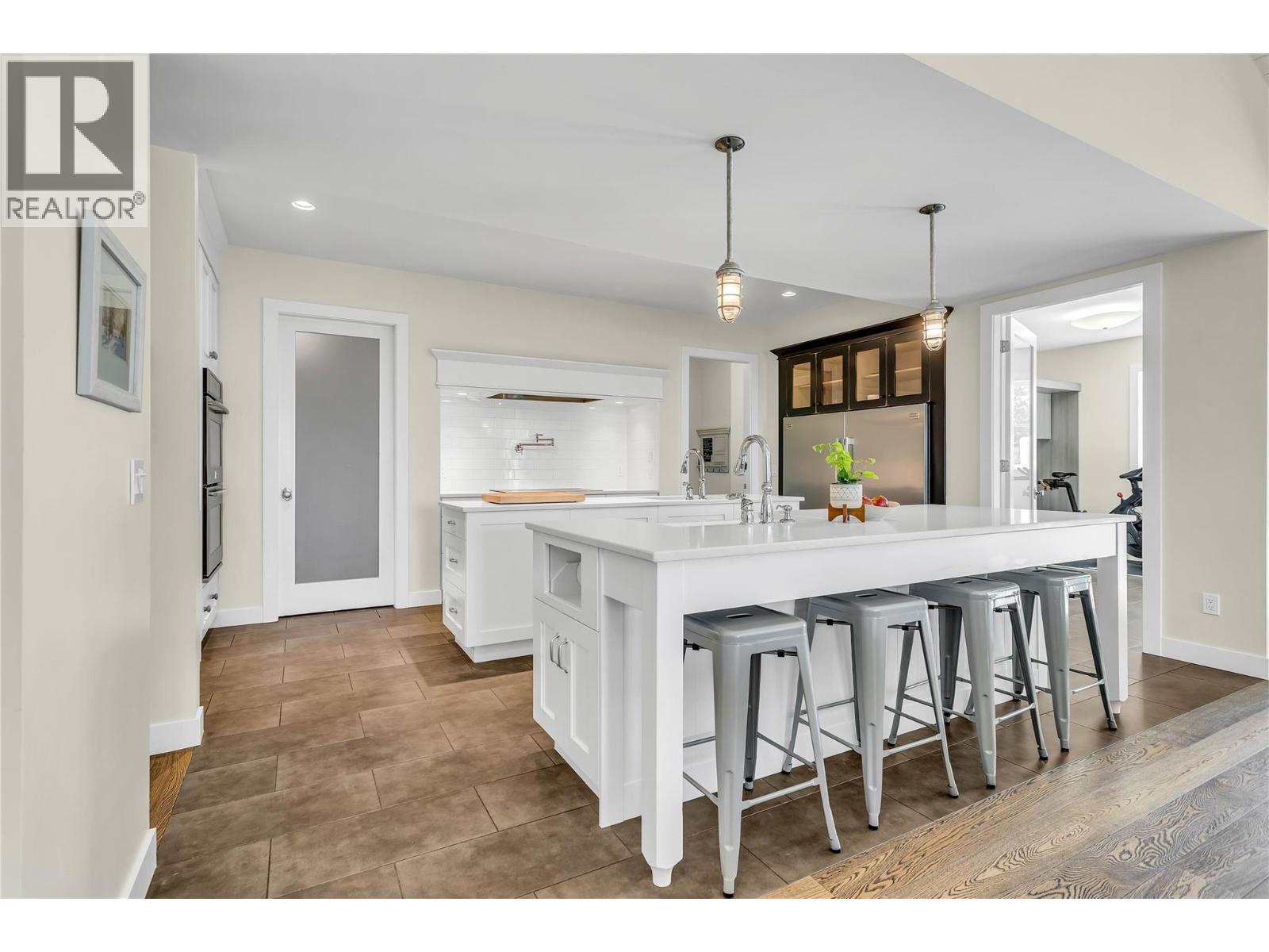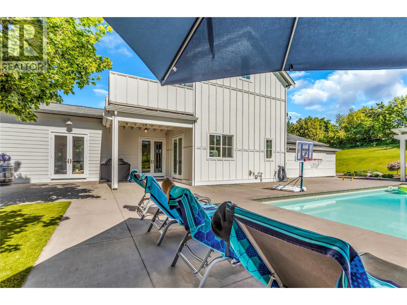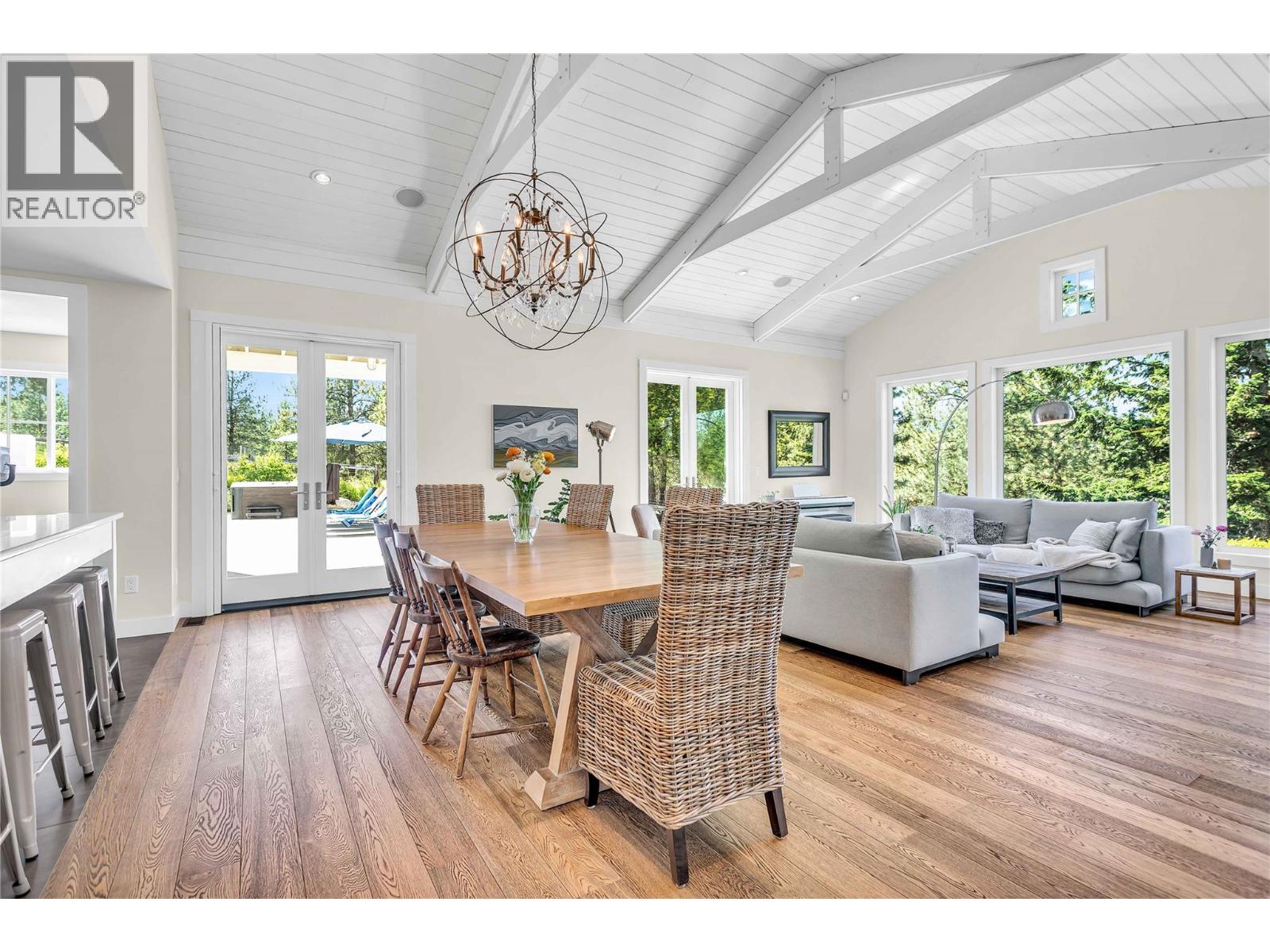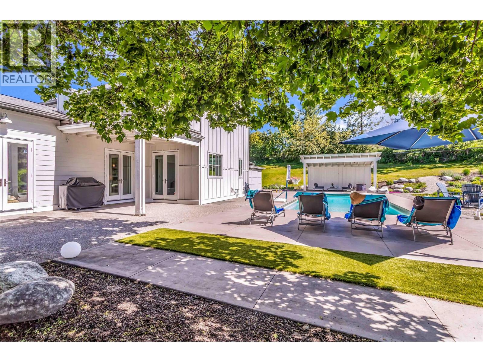 Welcome to your private sanctuary in Southeast Kelowna, where nature, thoughtful design, and everyday luxury come together on 4.25 acres of forested beauty. Mature trees surround this modern farmhouse, which offers 5600 sq ft of vibrant living space, perfect for quiet moments and lively gatherings. At the heart of the home, the kitchen features double islands, quartz counters, high-end appliances, and a spacious walk-in pantry, designed for creating special moments with family and friends. Vaulted dining and living areas with white-washed beams, a brick fireplace, and a sparkling crystal chandelier exude warmth and style. French doors open onto a wraparound patio, in-ground pool, and fire pit framed with lush landscaping, inviting you to relax and unwind in complete privacy. The main level offers two bedrooms with en-suite bathrooms, walk-in closets, a den, laundry, and a mudroom for convenience. Upstairs, the primary suite is a private retreat, complete with a spa-like ensuite, and a balcony overlooking the property—your perfect spot for a morning coffee or evening wine. The lower level is built for connection and fun, featuring a second kitchen, multiple living areas, and two bedrooms. A heated double garage with front and rear access, plus basement entry, adds extra convenience. Tucked away in Southeast Kelowna, this home offers rare privacy and natural beauty. This is more than just a home—it’s a lifestyle waiting for you to make it your own. (id:48970) Show More