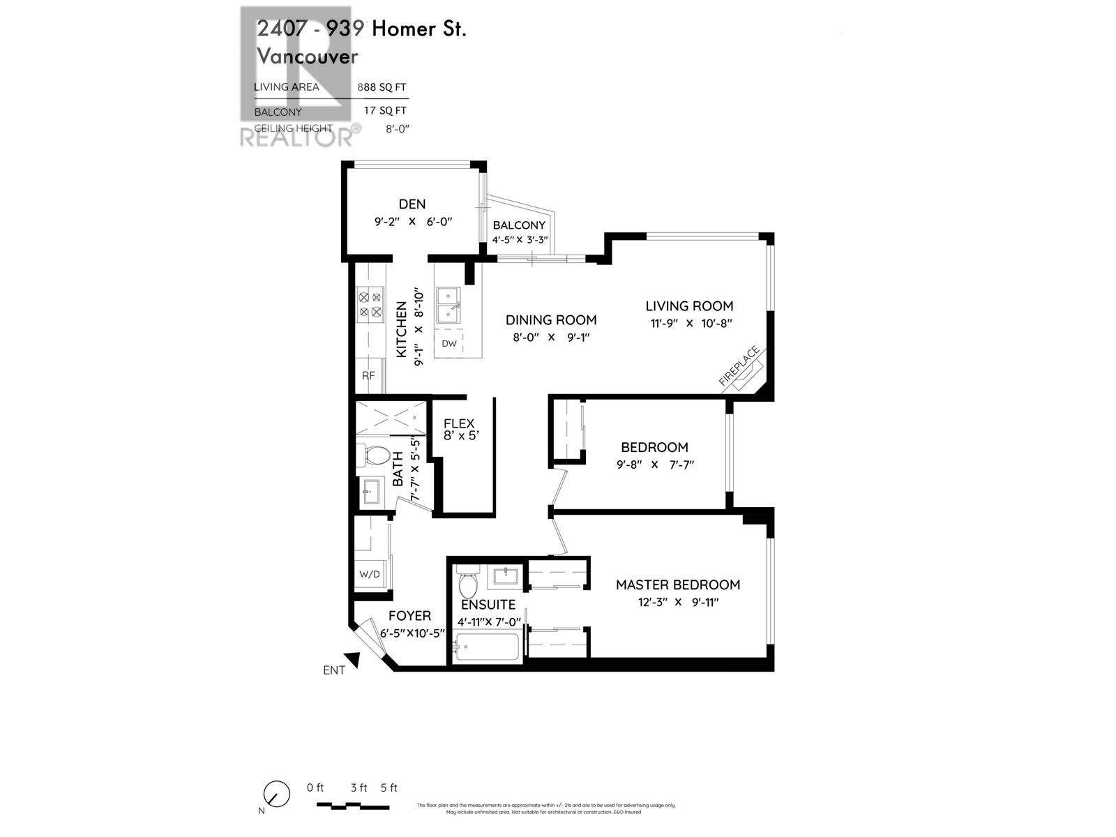 - Area 888 sq ft
