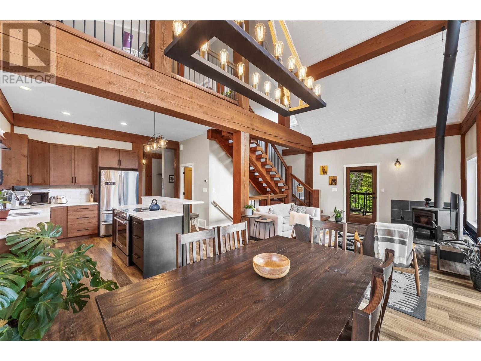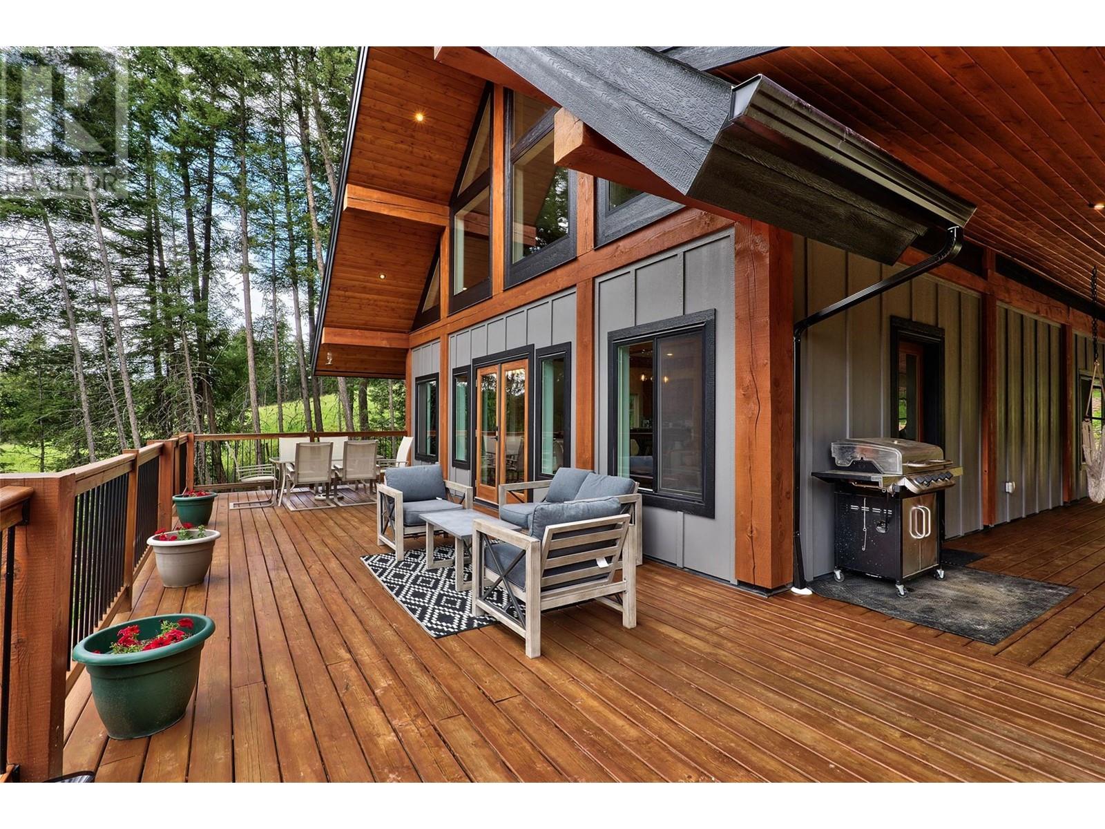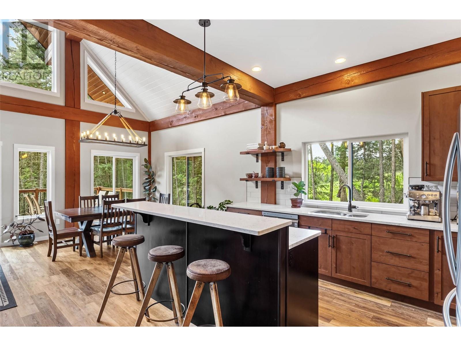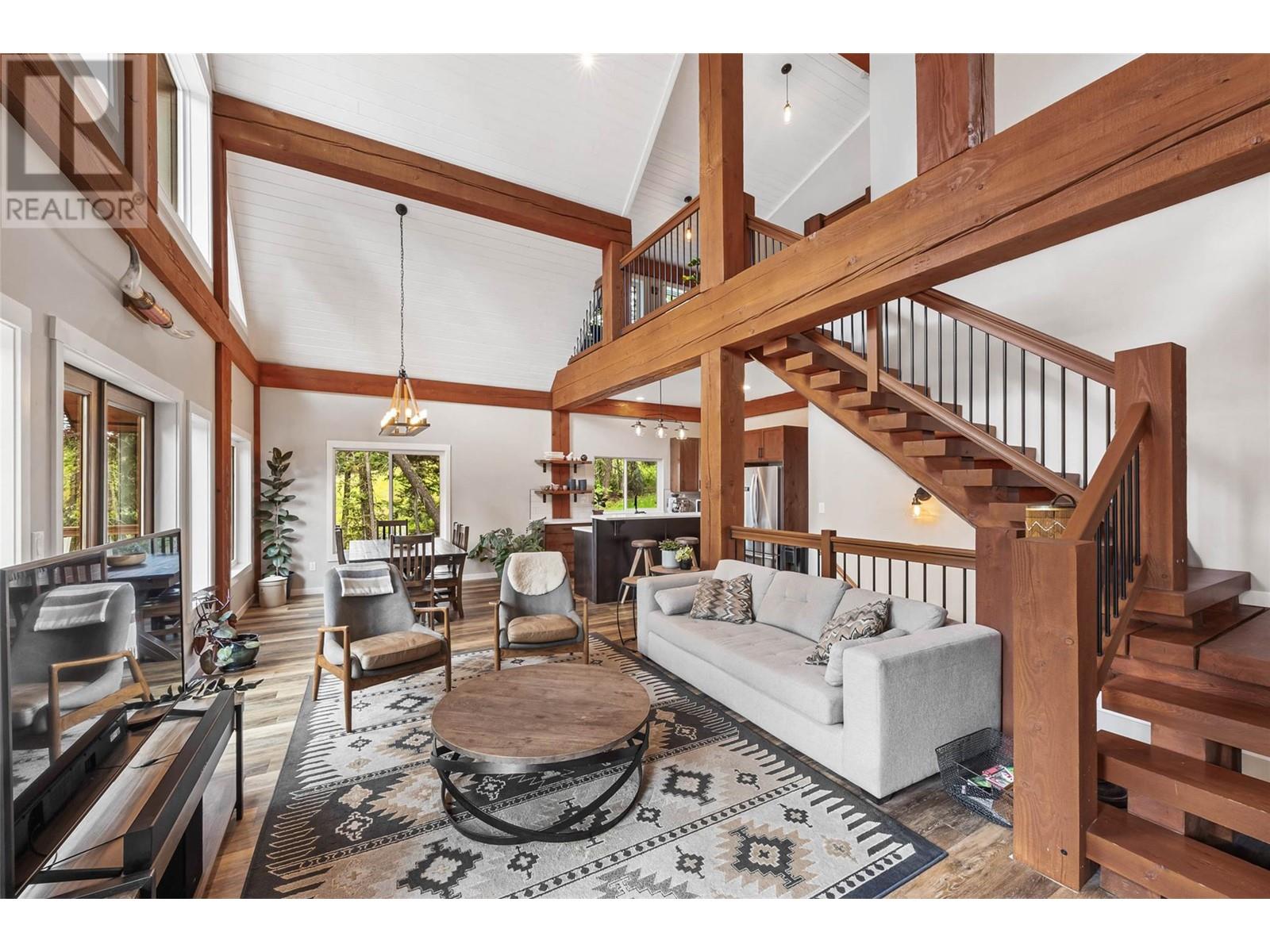 Discover your dream home nestled on 5 acres opposite Heffley Lake, 10 min to Sun Peaks Resort & only 35 min to Kamloops! This stunning 2017-built timber frame home features 4 bedrooms, 3 bathrooms, including 2-bed suite ideal for income or guest accommodations. The open concept main floor is perfect for gathering with its sleek modern kitchen including quartz countertops, island & eatery bar open to the dining area & great room with vaulted ceilings, gorgeous exposed timbers, cozy wood stove & walls of windows showering the area with an abundance of natural light. Double glass doors lead to an expansive deck & covered side patio, ideal for outdoor entertaining! Retreat upstairs to your luxurious primary suite with ample closet space & ensuite bath with cozy radiant heated tile to soak in the tub while gazing out the windows at incredible mountain views. All 5 acres are very usable with some clearing, partially fenced for livestock with chicken coop. High speed internet. Offered furnished. See listing for 3D and video tours. (id:48970) Show More