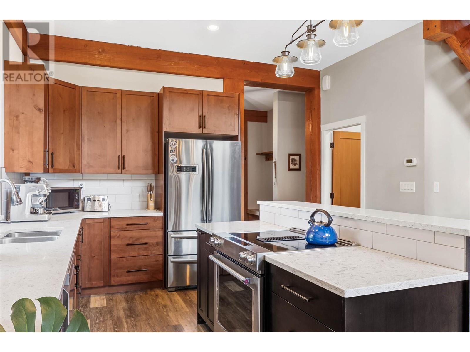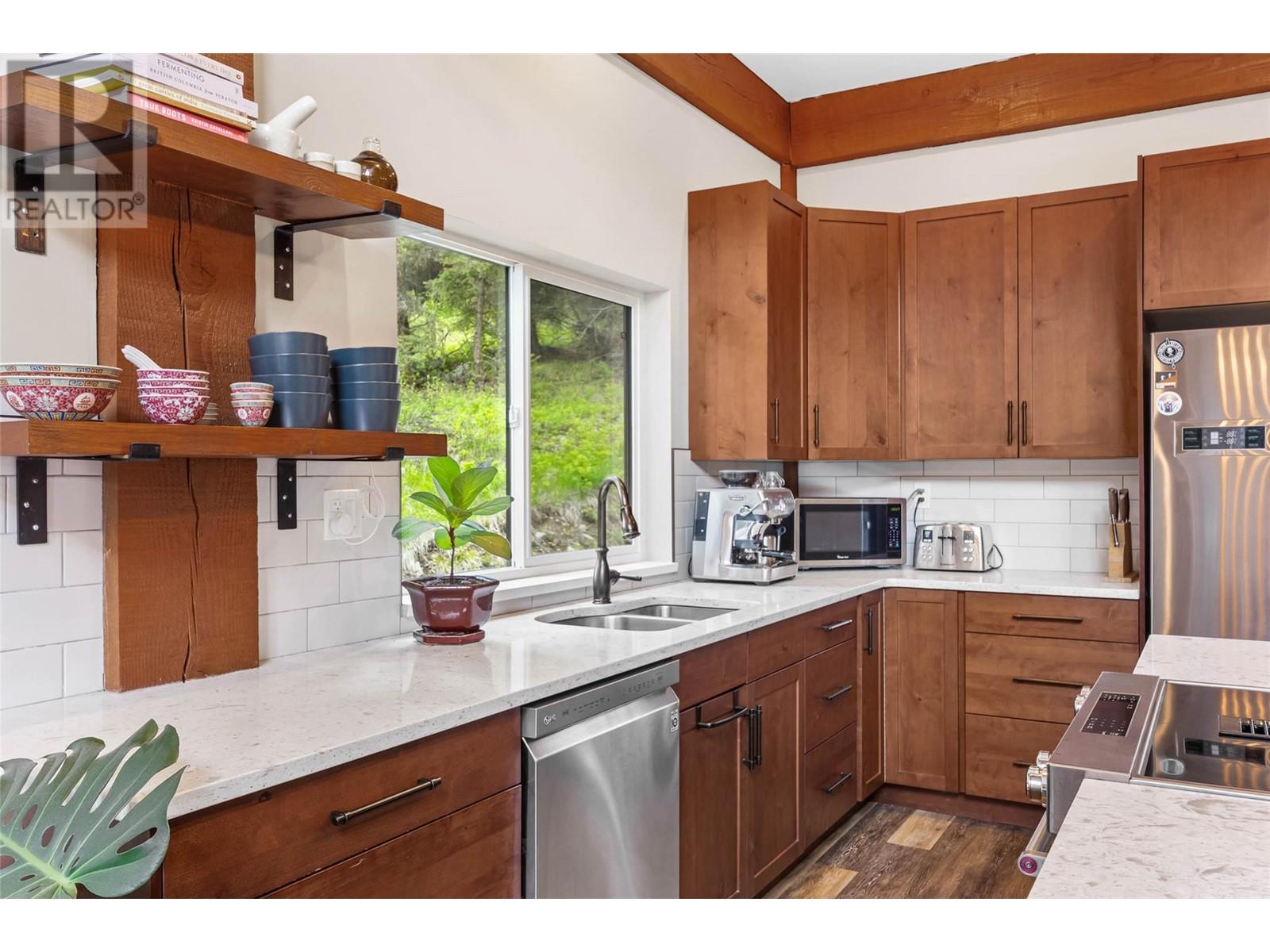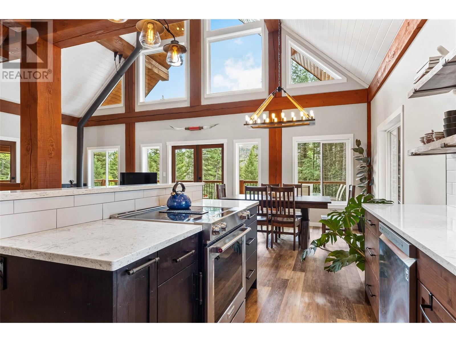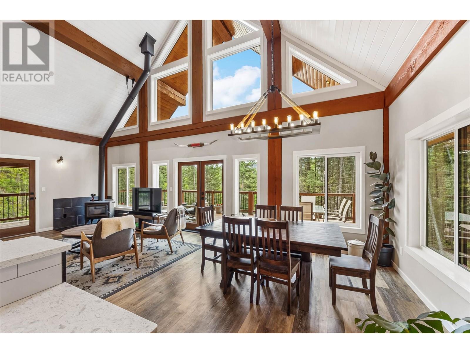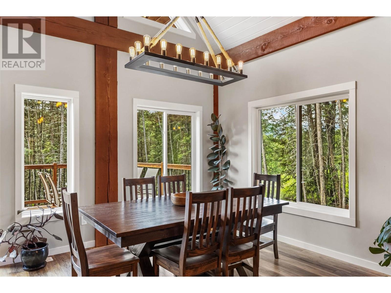 Discover your dream home nestled on 5 acres opposite Heffley Lake, 10 min to Sun Peaks Resort & only 35 min to Kamloops! This stunning 2017-built timber frame home features 4 bedrooms, 3 bathrooms, including 2-bed suite ideal for income or guest accommodations. The open concept main floor is perfect for gathering with its sleek modern kitchen including quartz countertops, island & eatery bar open to the dining area & great room with vaulted ceilings, gorgeous exposed timbers, cozy wood stove & walls of windows showering the area with an abundance of natural light. Double glass doors lead to an expansive deck & covered side patio, ideal for outdoor entertaining! Retreat upstairs to your luxurious primary suite with ample closet space & ensuite bath with cozy radiant heated tile to soak in the tub while gazing out the windows at incredible mountain views. All 5 acres are very usable with some clearing, partially fenced for livestock with chicken coop. High speed internet. Offered furnished. See listing for 3D and video tours. (id:48970) Show More