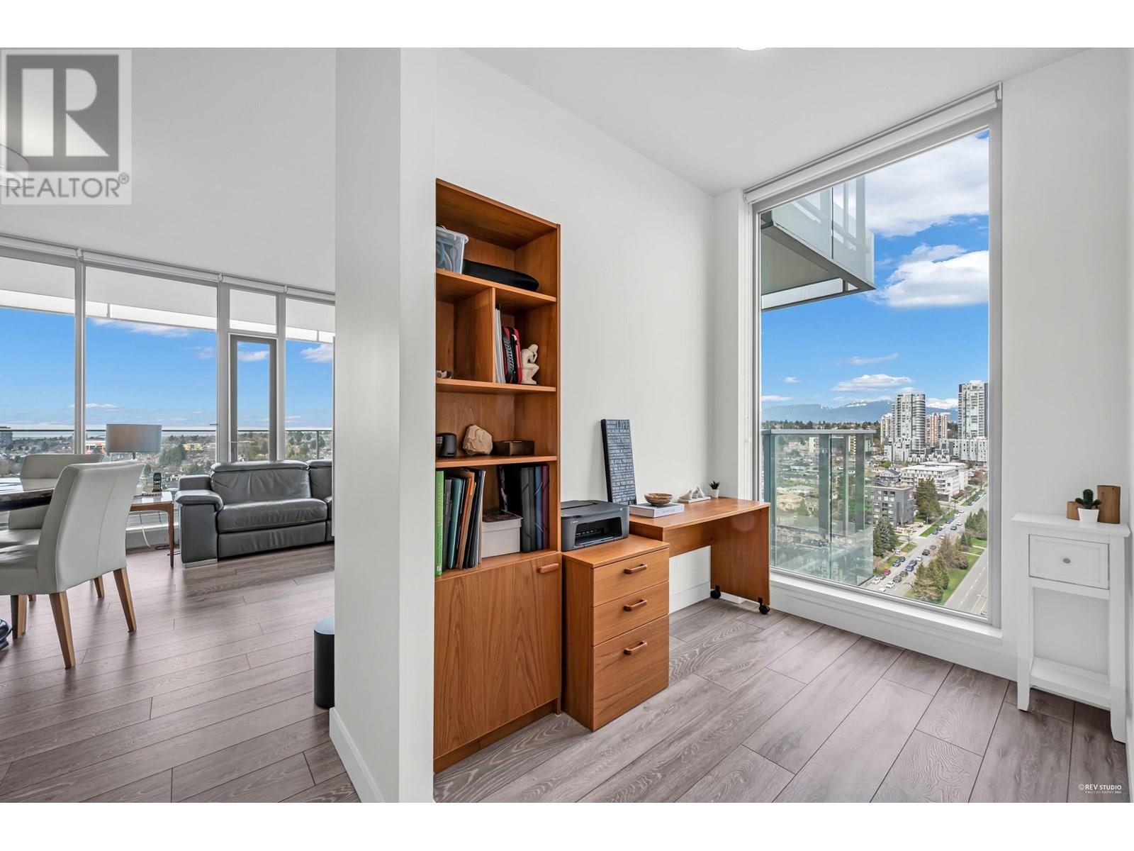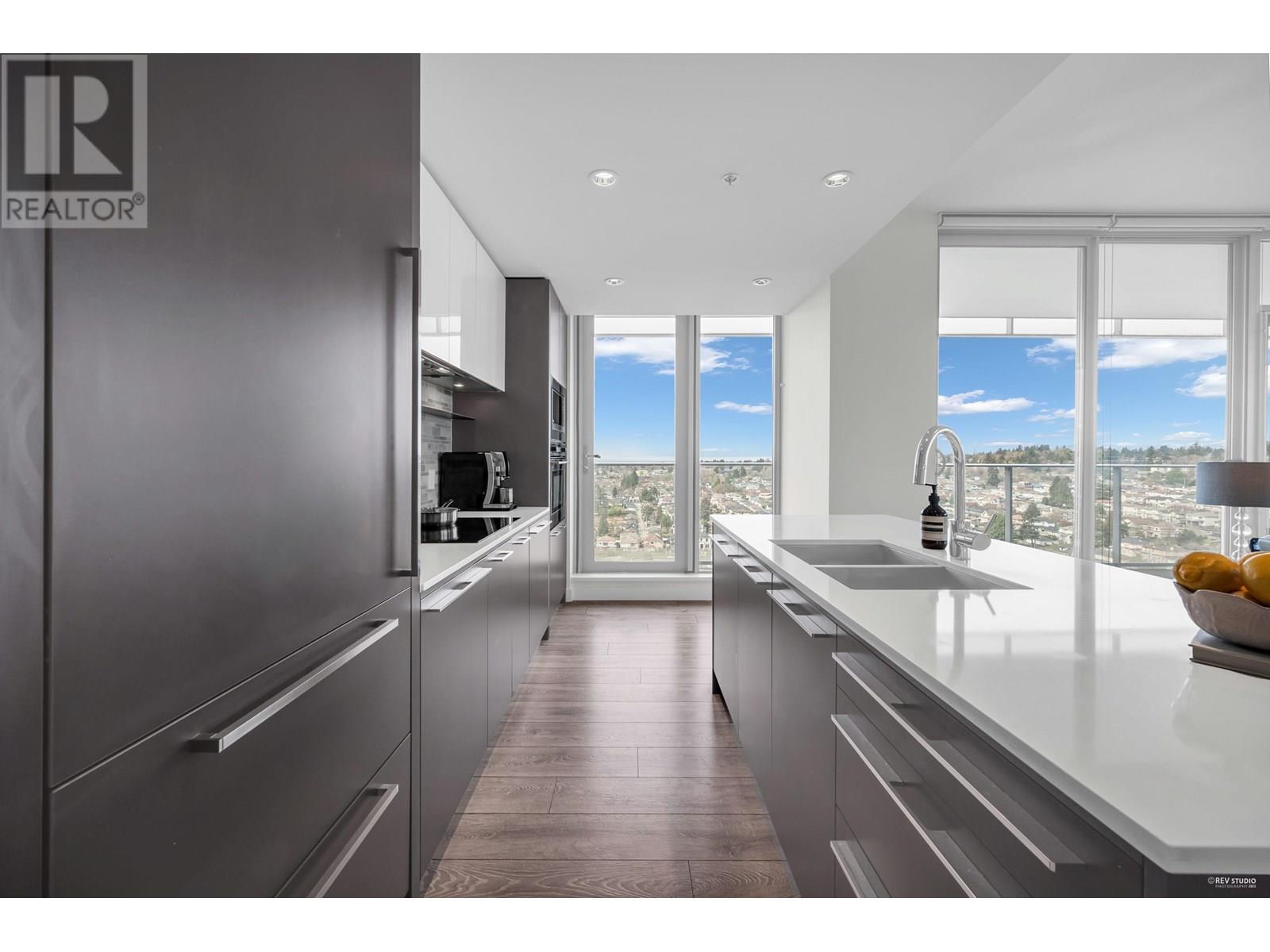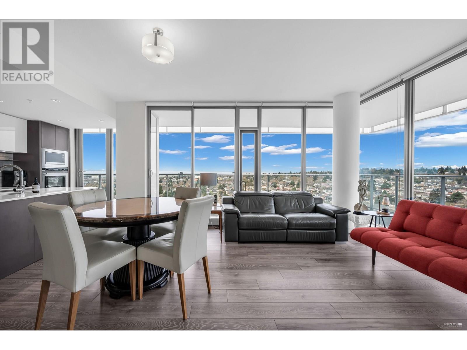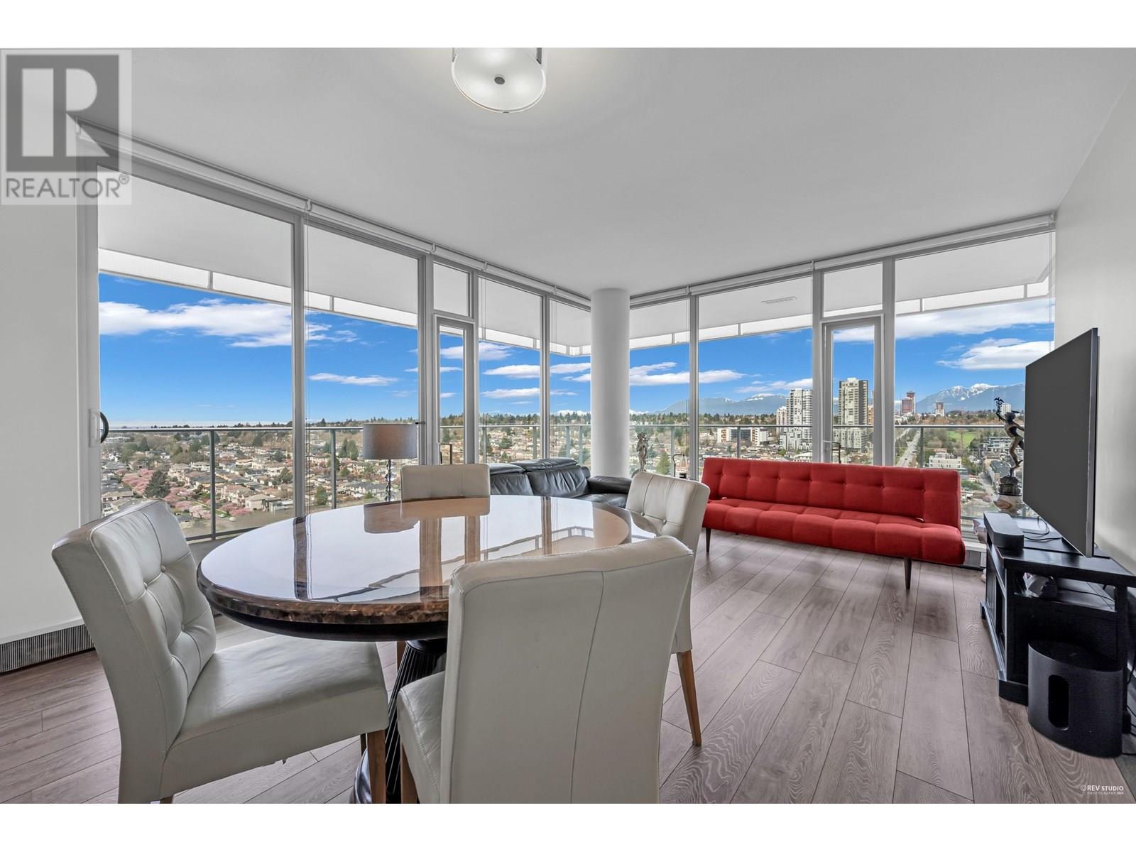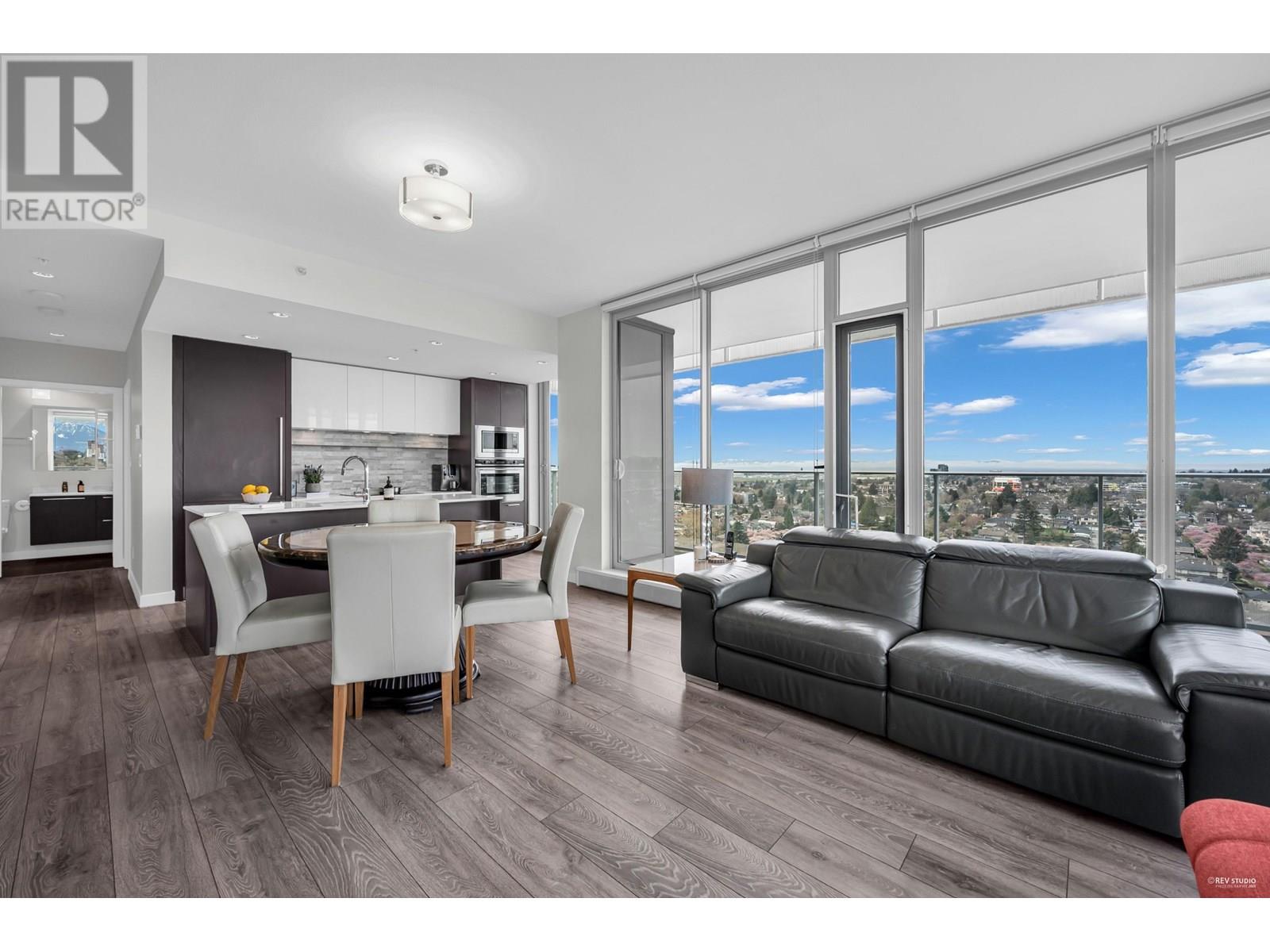 Stunning Sub-Penthouse with Panoramic Views & Expansive Balcony at MC² by Intracorp- Experience luxury living designed by renowned architect James Cheng. This RARE 2 bedroom+den corner unit offers breathtaking mountain, city, water, park & golf course views- filling the home with natural light. Enjoy an open-concept layout with sleek laminate flooring, Blomberg appliances, hydronic air cooling & spacious primary suite featuring an expansive walk-in closet. Two ENSUITE bathrooms for added convenience. Step outside to your 365 square ft balcony perfect for watching the sunset & entertaining. Residents benefit from Concierge service & Gym. Unbeatable location-just steps from Marine Dr Station, T&T, Cineplex & more! Schools- JW Sexsmith, Churchill Secondary & Langara College. Make this home yours! (id:48970) Show More