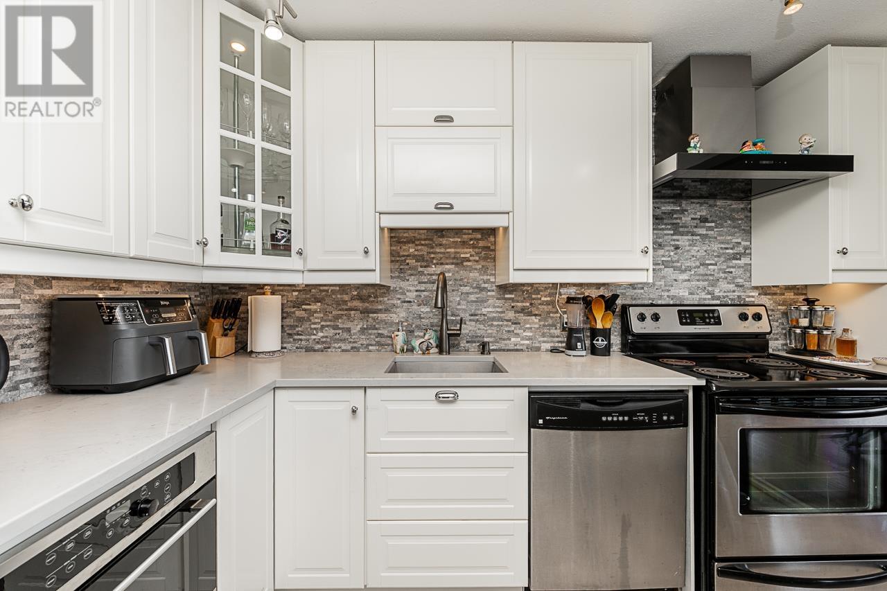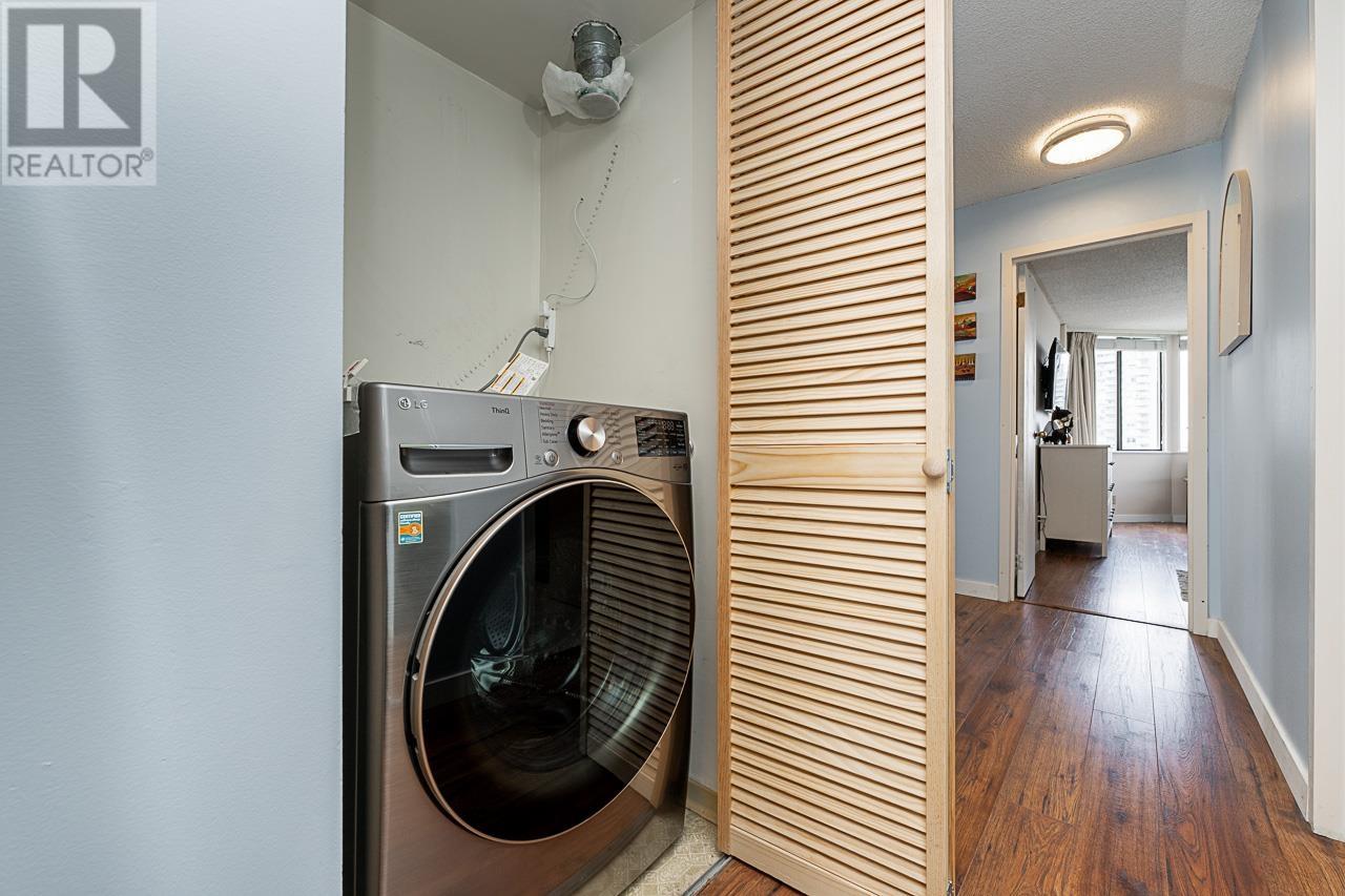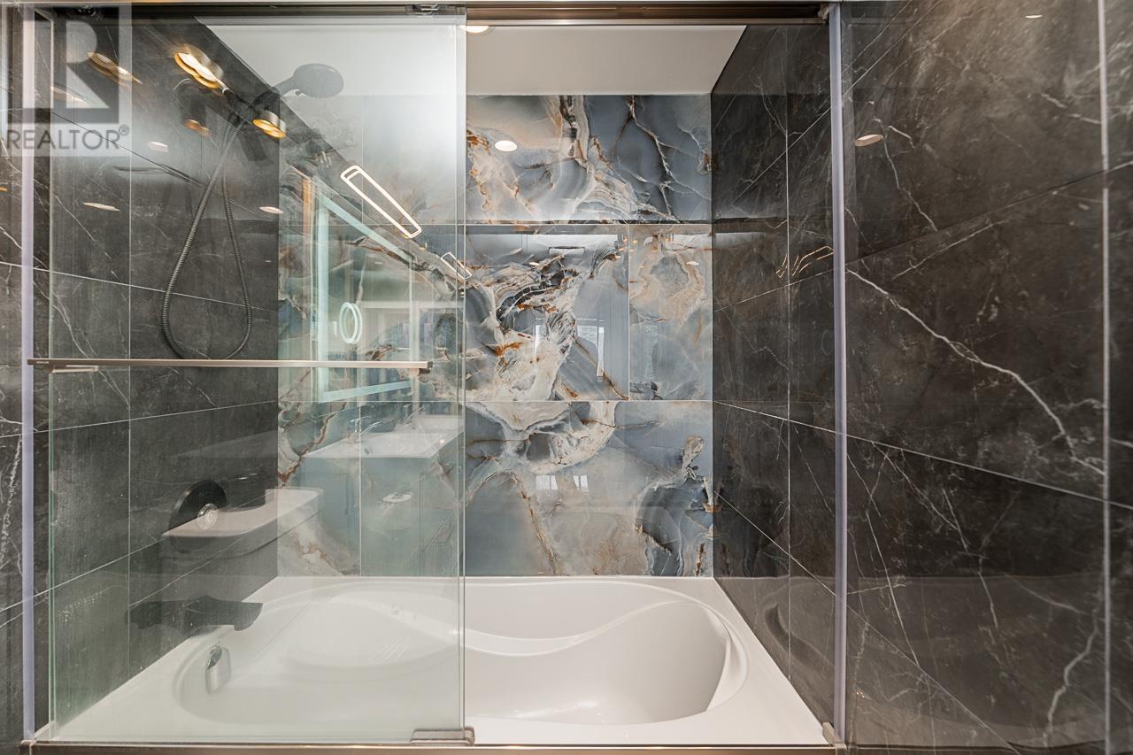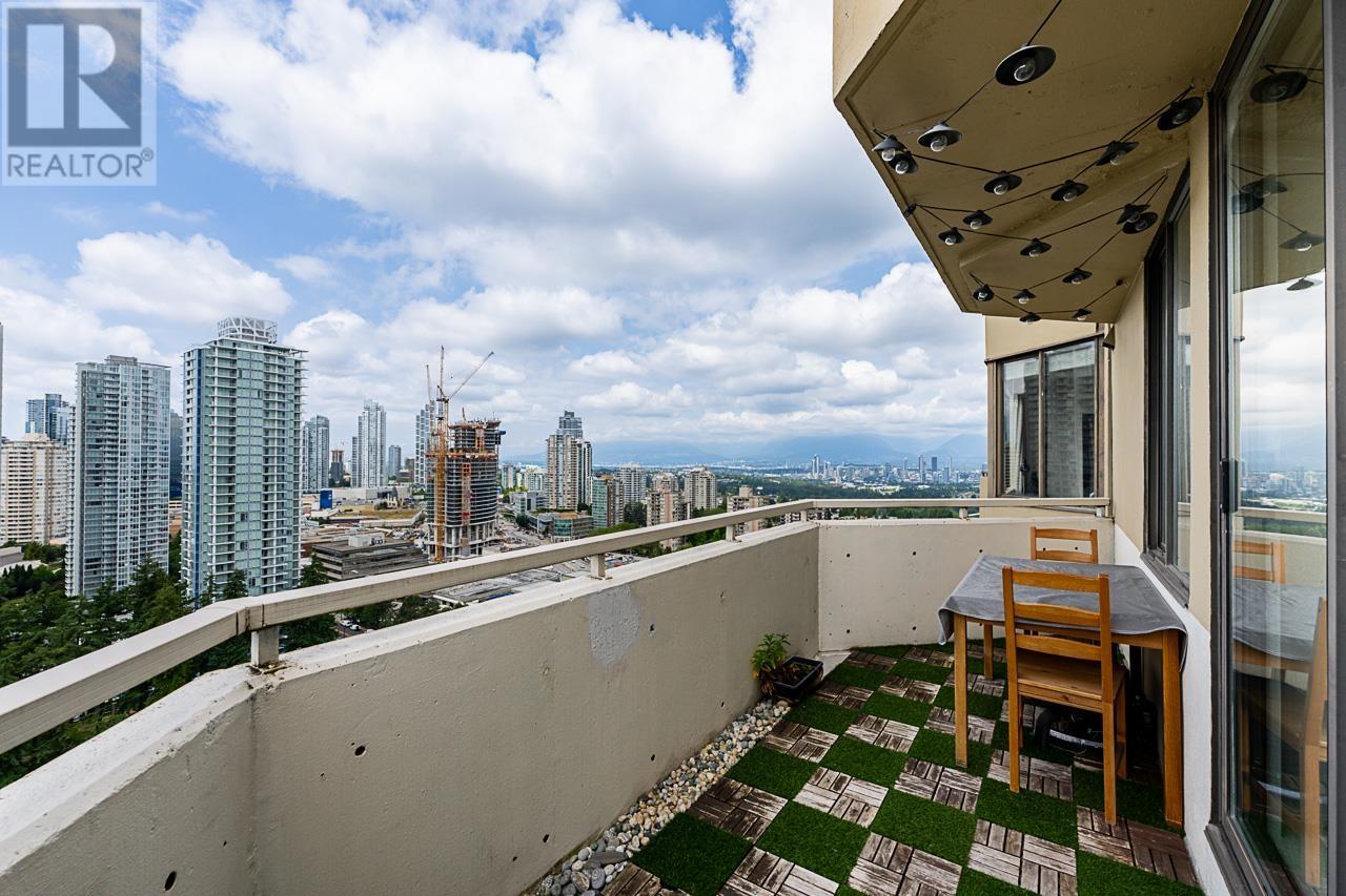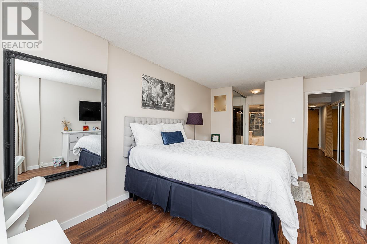 This renovated sub-penthouse delivers stunning 270° views stretching from the North Shore Mountains and Downtown Vancouver to the Fraser Valley and Mount Baker. With 2 bedrooms and 1 spa-inspired bath, this bright corner unit features a sleek modern kitchen with quartz counters, stainless steel appliances, and an oversized island perfect for cooking and entertaining. Expansive window panels fill the open-concept living and dining area with natural light, complemented by warm-toned laminate flooring throughout. Relax in the deep soaker tub and enjoy the convenience of in-suite laundry and generous storage. Situated in a well-managed concrete high-rise with outstanding amenities: a full fitness centre, squash court, basketball court, and secure entry. Steps to Metrotown, Crystal Mall, SkyTrain, Bonsor Rec Centre, shopping, and dining. Includes 1 parking and 1 storage locker. Pet- and rental-friendly-ideal for both homeowners and investors. (id:48970) Show More
