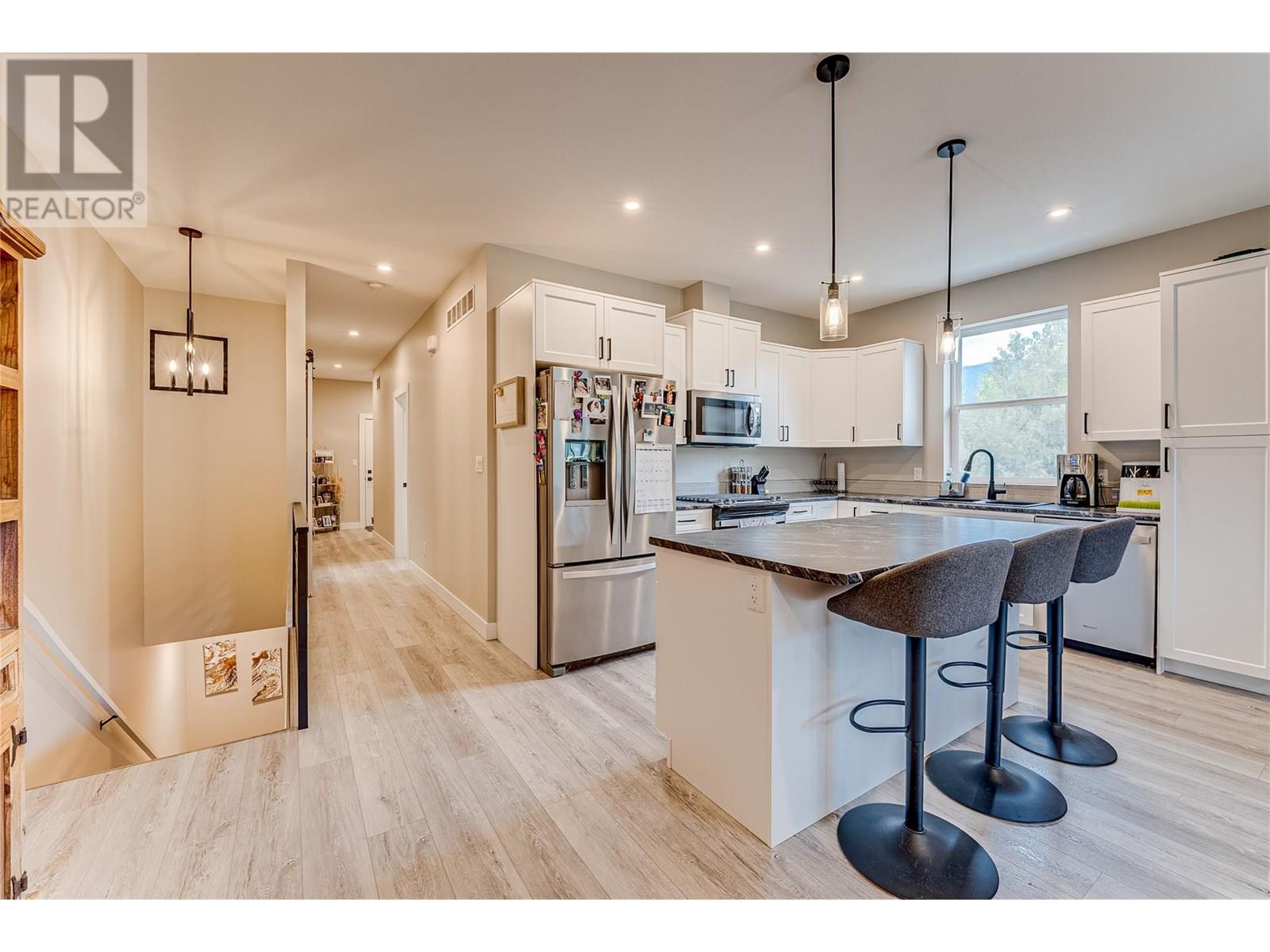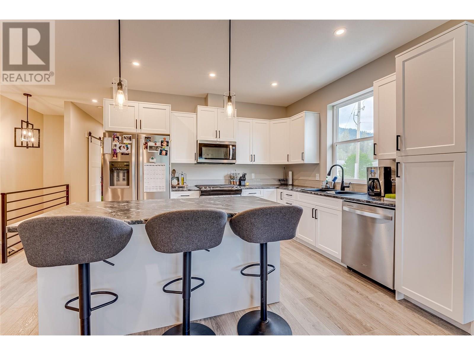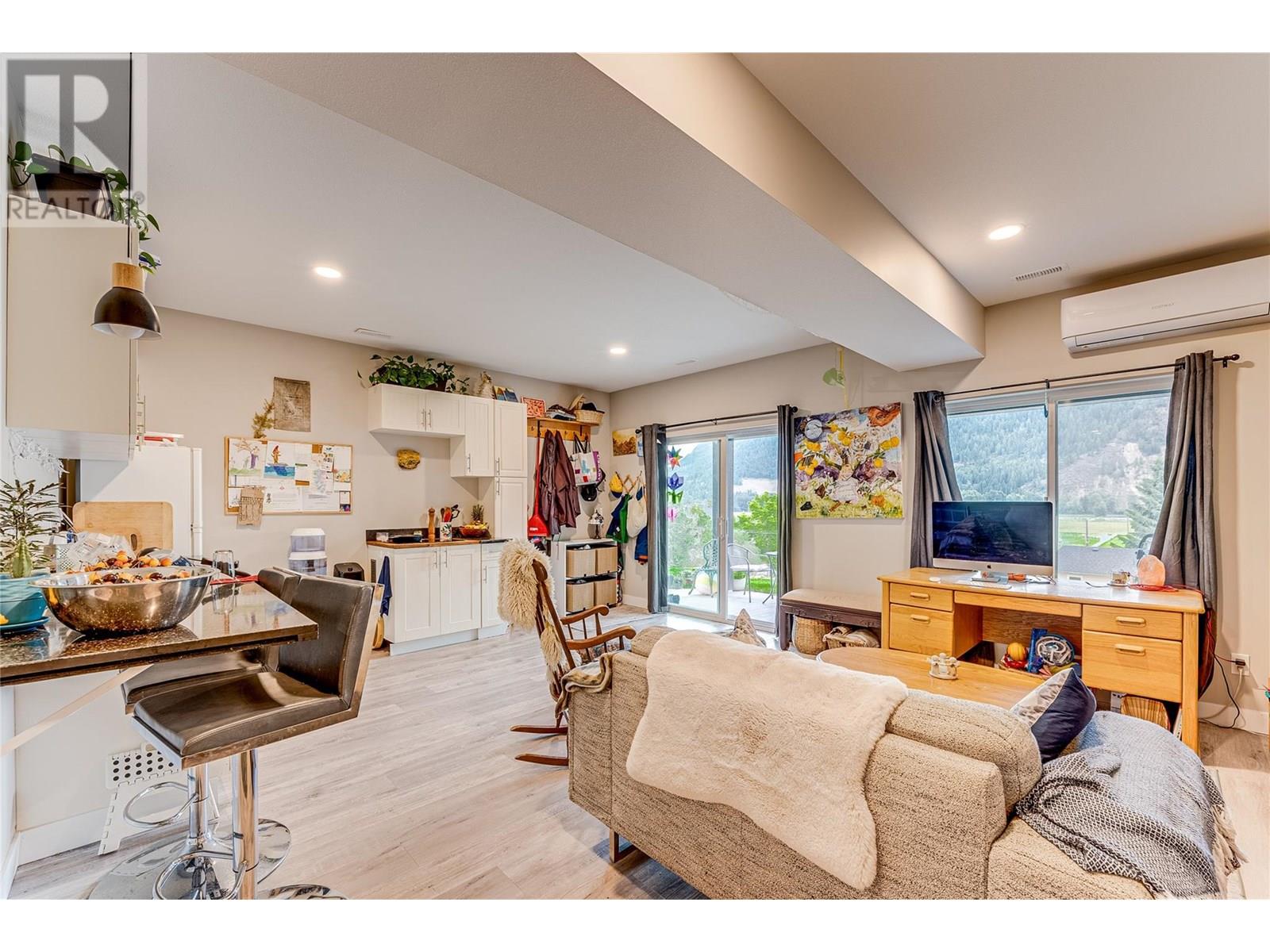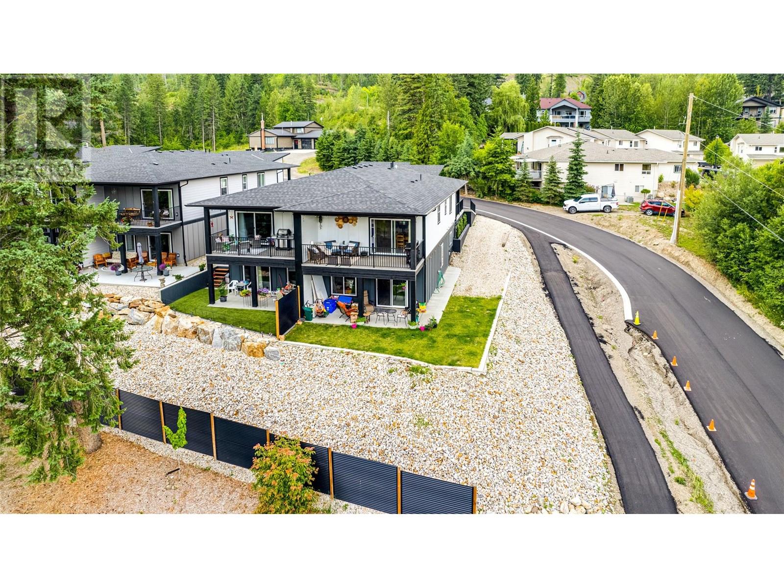 Welcome to “Monashee Verge” — Lumby’s newest strata community! This modern semi-detached home blends style, comfort, and functionality across approx 2,100 sq. ft. of bright, contemporary living space. Featuring 9ft ceilings and large windows that fill the home with natural light, the open-concept main floor is perfect for both entertaining and everyday living. The main level offers true one-level living, including a spacious kitchen with a gas range and stainless steel Whirlpool appliances, open dining and living areas, a generous primary suite with ensuite and walk-in closet, a guest powder room, and the convenience of main-floor laundry. The walk-out basement adds flexible living options. Currently, the homeowners use one bedroom, a den, and a storage area, while the third bedroom and a kitchen/living space are set up as an in-law suite—complete with its own laundry, full bathroom, and independent heating/cooling via a dedicated heat pump. This self-contained suite is currently rented for $1,500/month. Need the whole house? Simply open a door to reconnect the entire space. Outside, enjoy easy-care landscaping, a small patch of lawn ideal for pets, and a driveway that fits a full-sized truck in addition to the single-car garage. There’s even designated suite parking or room for an RV/boat. A dedicated walking path ensures kids can safely walk to school. With remaining new home warranty, and low $55/month strata fees, this is an outstanding opportunity in a growing community. (id:48970) Show More