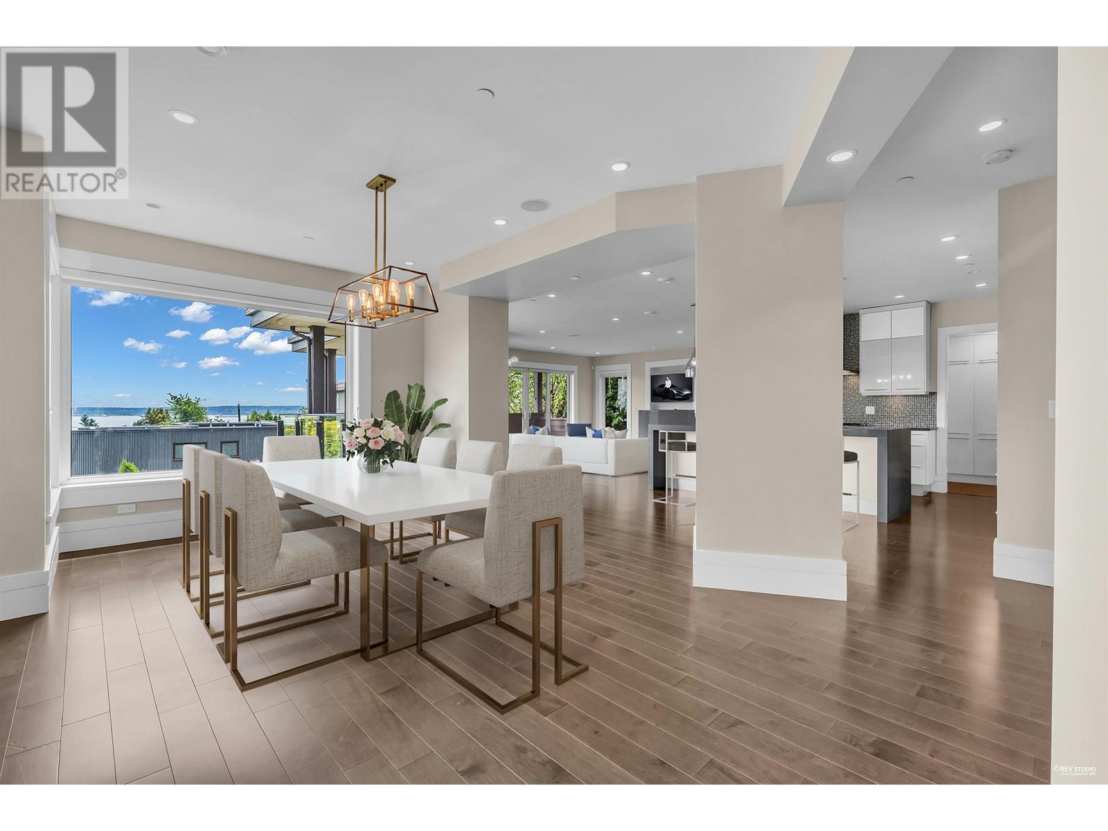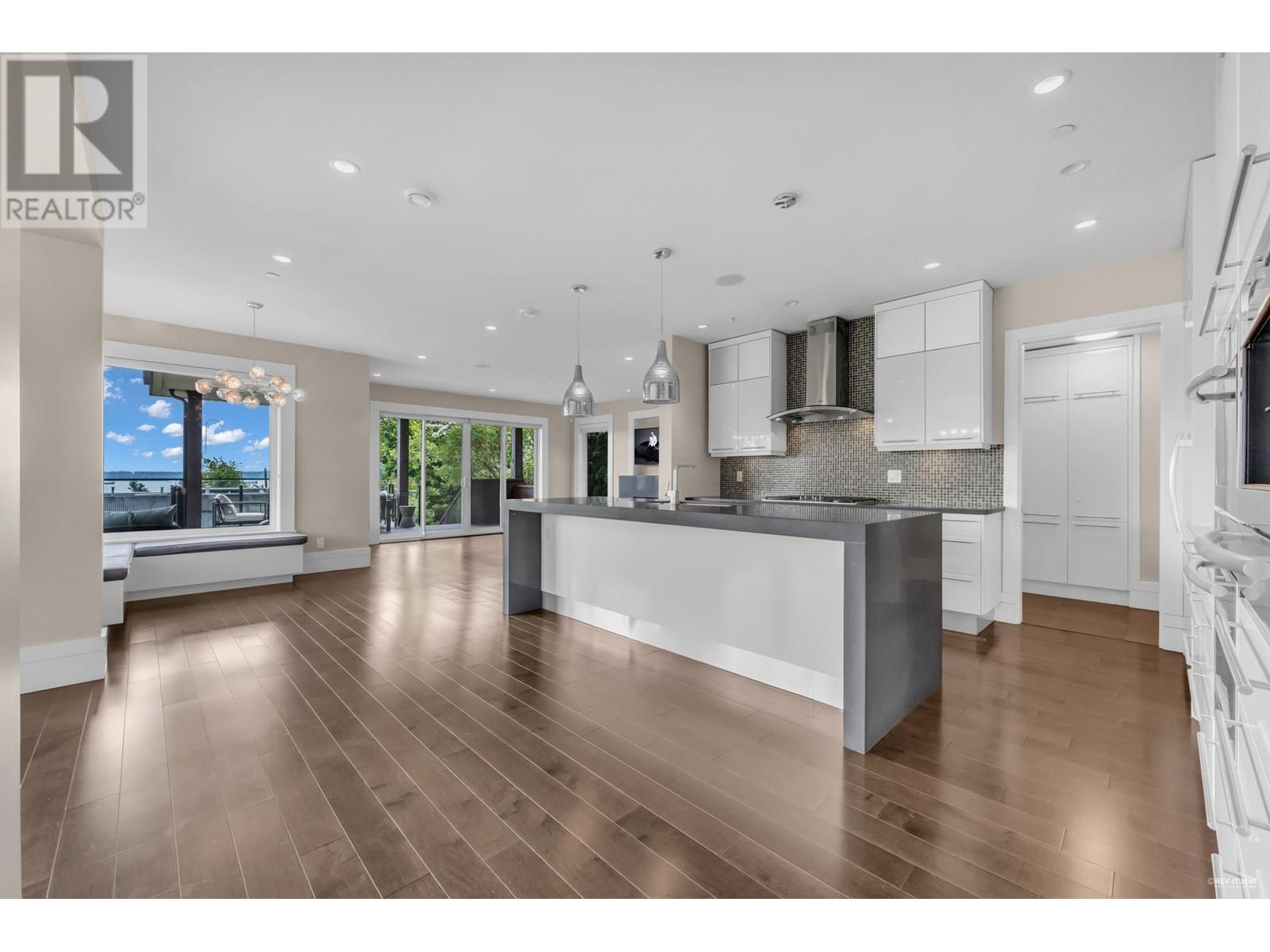 Perfectly positioned to capture sweeping ocean views, this beautifully designed three-level home by Mason Kent offers exceptional indoor-outdoor living in the heart of Dundarave. The expansive main floor is bathed in natural light and features high ceilings and rich hardwood floors. A spectacular chef´s kitchen flows seamlessly into the family room, dining area, and breakfast nook. Step out onto the large covered deck and enjoy panoramic water views. A striking floating staircase leads to three spacious ensuite bedrooms, including a luxurious primary suite with a walk-in closet, spa-like bathroom, and private ocean-view balcony. The lower level offers incredible versatility with a private media room, a fourth bedroom, and a bright walk-out recreation area complete with a summer kitchen, ideal for guests or extended family. Just steps to top schools, shopping, and the beach, this is West Vancouver living at its finest. 3D Matterport Link: https://my.matterport.com/show/?m=UEE8kMmBxoA (id:48970) Show More