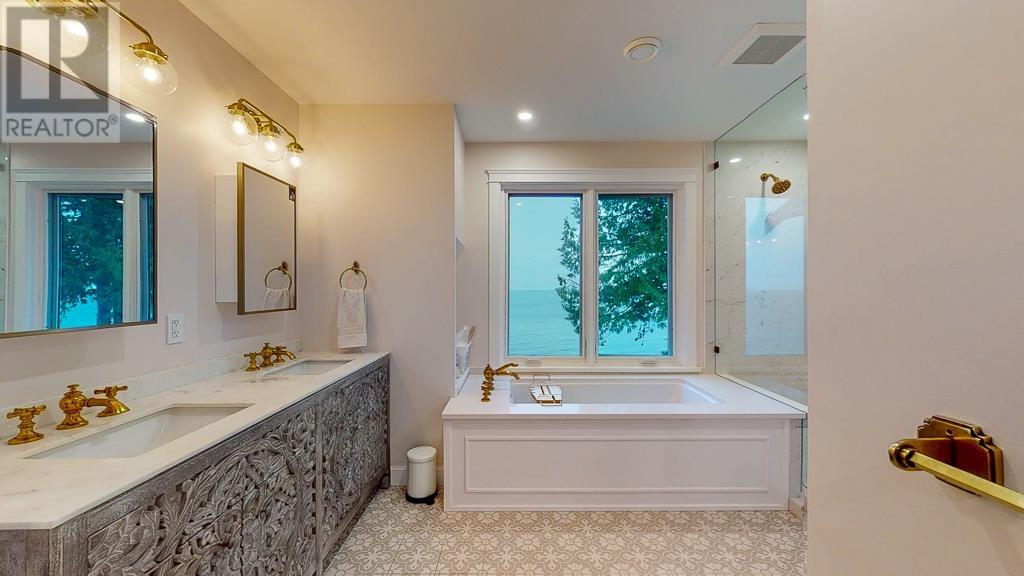 The ultimate waterfront acreage with 2 homes in prestigious Roberts Creek. Savor the natural beauty with whale watching becoming your new pastime. Easy access to the beach, rare private boat launch and deep water mooring buoy. Multiple indoor and outdoor living spaces, incredible views and a high level of craftsmanship throughout this new home. High ceilings, expansive bi-folding doors, modern flooring, and high end cabinetry all create a warm and light-filled interior. The strategic floor plan is ideal for hosting family/guests with multiple indoor and outdoor entertainment spaces. A 2 car garage & workshop has 12' ceilings, wine cellar/cold room and abundant storage. This property has a second 3 bed home as well as a beachside cottage awaiting your creative inspiration. (id:48970) Show More