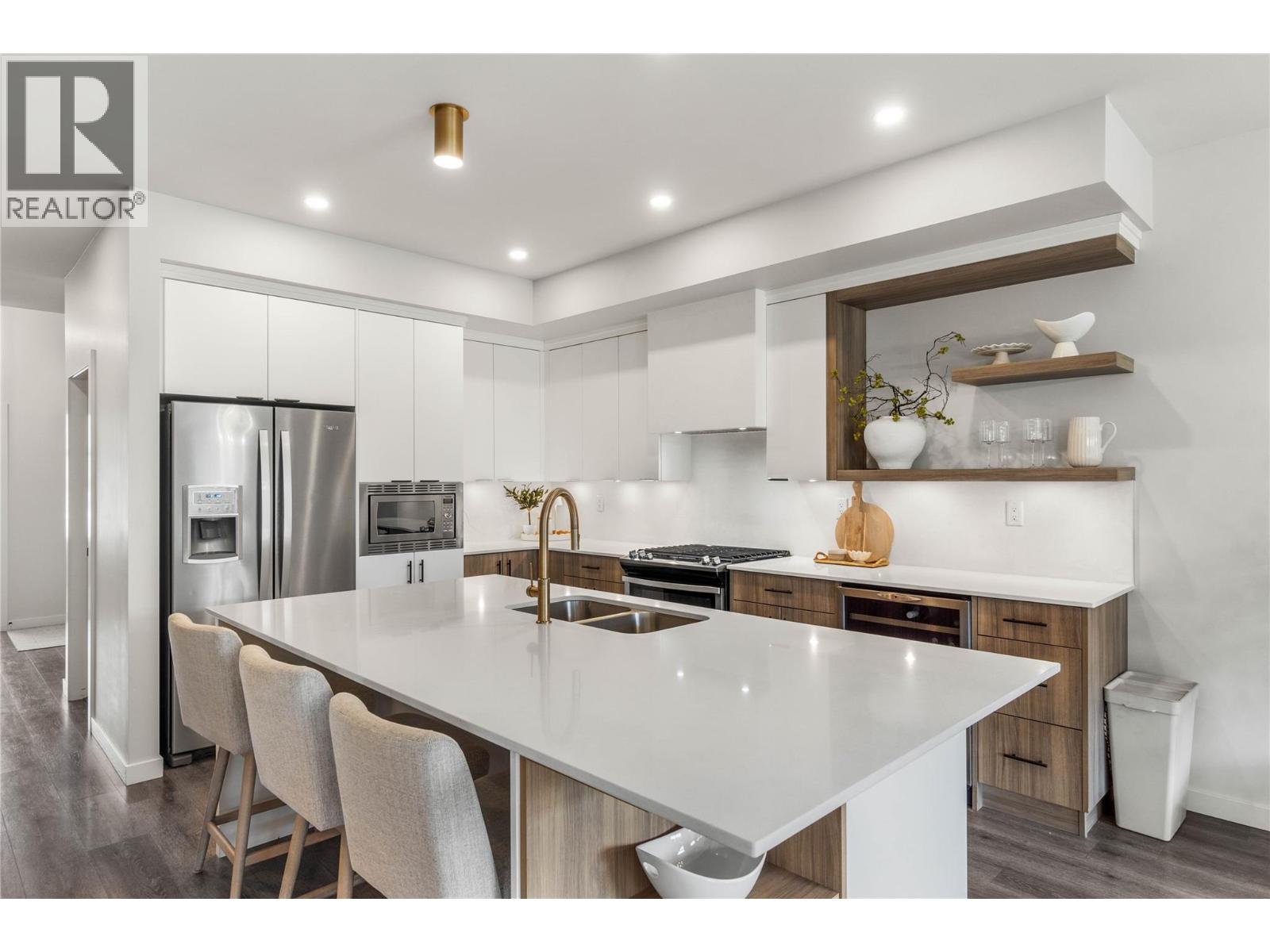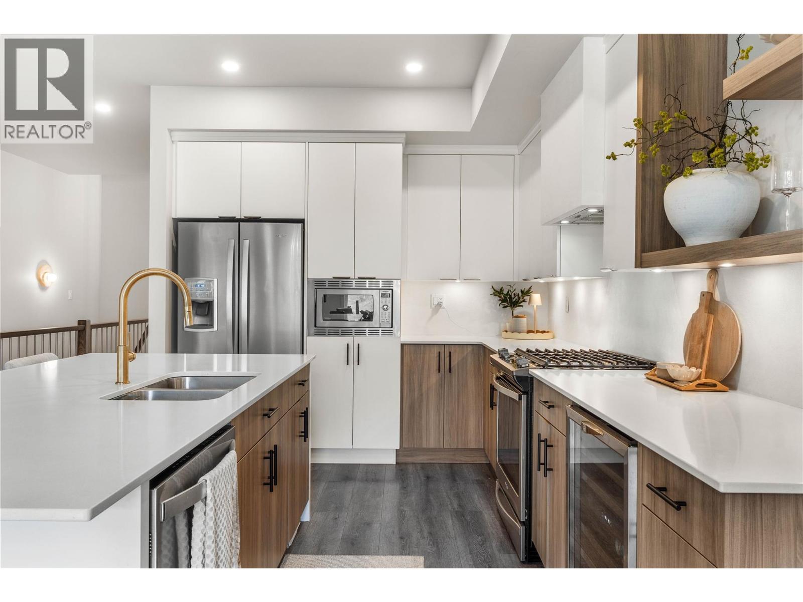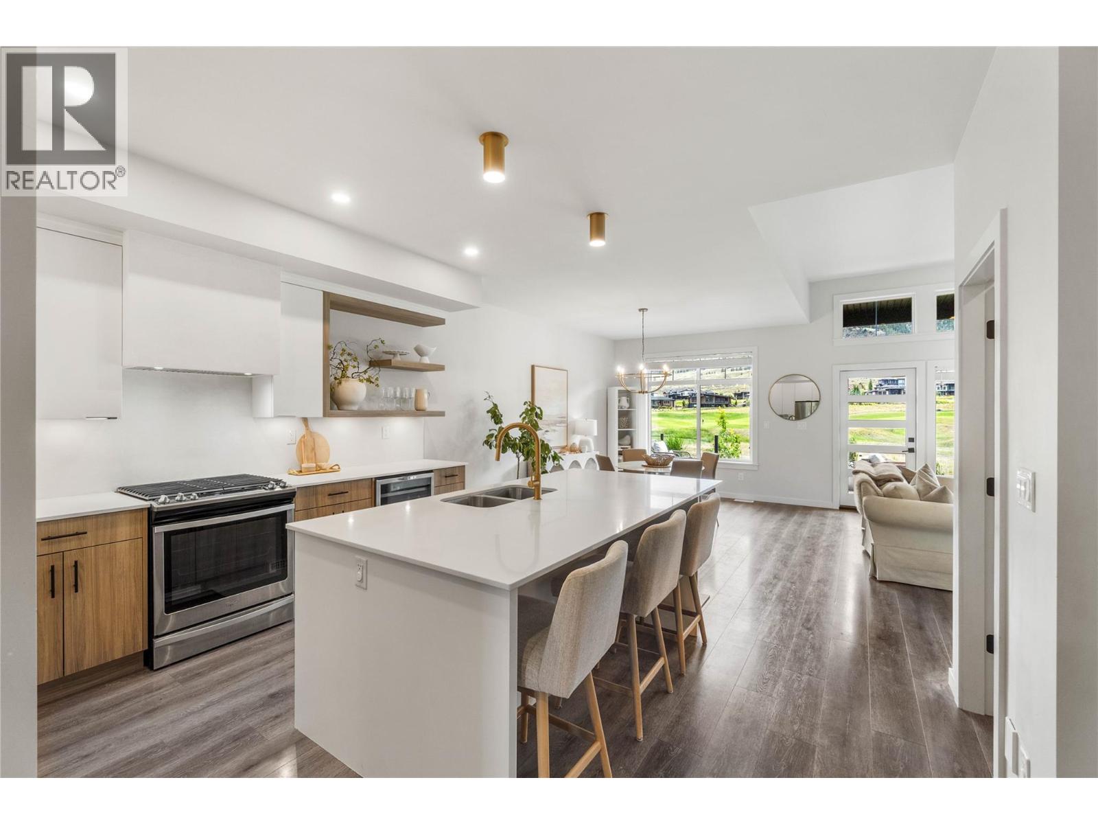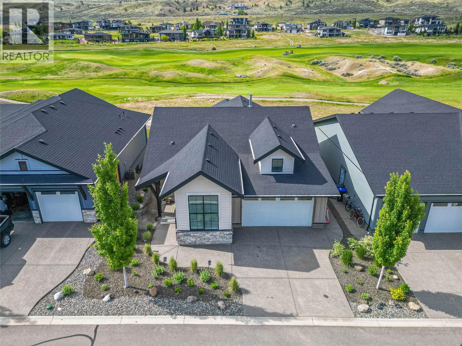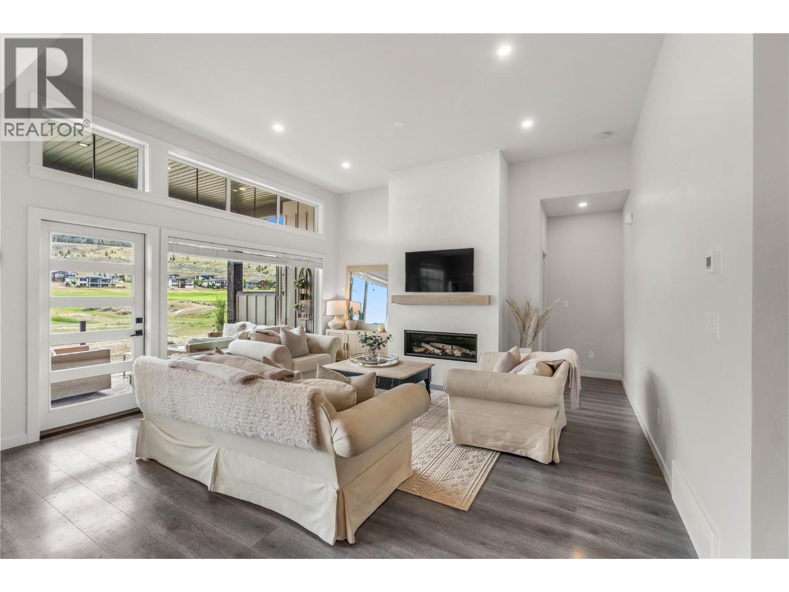More exterior photos to come. Welcome to Fairway Homes @ Tobiano, an exclusive gated community of 21 homes overlooking Tobiano golf course surrounded by mountain views and Kamloops Lake. This rancher w. walkout basement presents 5 beds and 3 baths w. the master on the main. The high end kitchen boasts quartz counters, s.c. cabinets, under cabinet lighting, wine fridge and s.s. appliances w. gas stove. The spacious master features a 4 piece ensuite w. quartz counters and walk in closet. Recent updates include custom hood fan, Venetian plaster back splash and fireplace, fully fenced back yard and upgraded pantry currently under construction. Host family and friends eager to play at an award-winning golf course in the custom finished basement with 3 beds, 5-piece bath and wet bar. Golfer enthusiasts take note, an expansive post and beam covered deck extends the living space, sit back and watch golfers' putt on the 4th and tee-off on the 5th! Plus, residents can enjoy exclusive access to the residence only pool and hot tub! You'll find this well-situated home features peak a poo lake view in one of the most desired locations. Welcome to luxury living at its finest. (id:48970) Show More