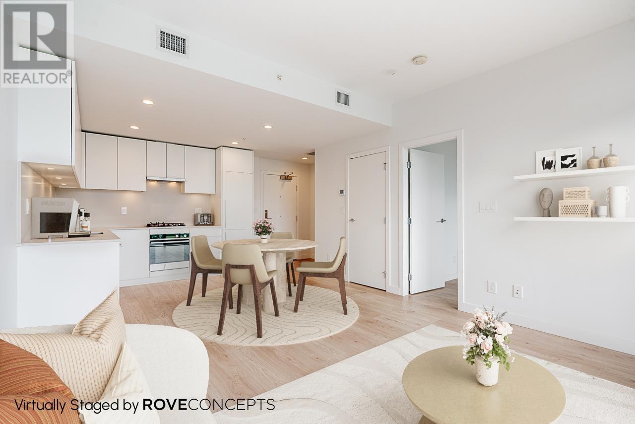 LOOK AT THIS VIEW. Welcome to Akimbo-a striking 2023-built landmark in Brentwood Park. This 1 bed, 1 bath home offers 560+ square ft of perfectly designed space with breathtaking, unobstructed mountain & city views and an exceptional floor plan. Enjoy the luxury of 9' ceilings, floor to ceiling windows, 100+ square ft of outdoor space, Fisher & Paykel appliances, a full-size LG washer/dryer, A/C, EV parking and storage. The resort-style amenities include a concierge, guest suite, gym, meeting room, BBQ area, and playground. Located steps to The Amazing Brentwood, Gilmore SkyTrain, Whole Foods & more, this is upscale urban living at its best-ideal for anyone wanting to live their best life. (id:48970) Show More