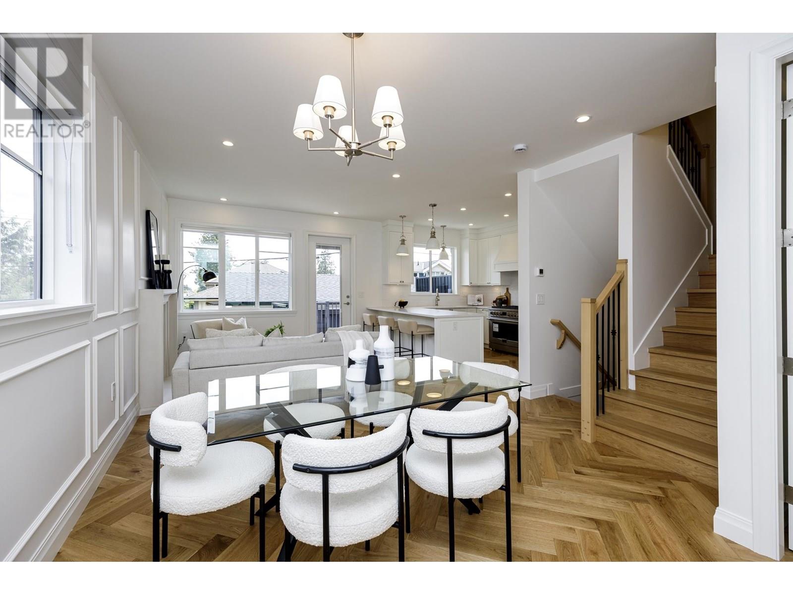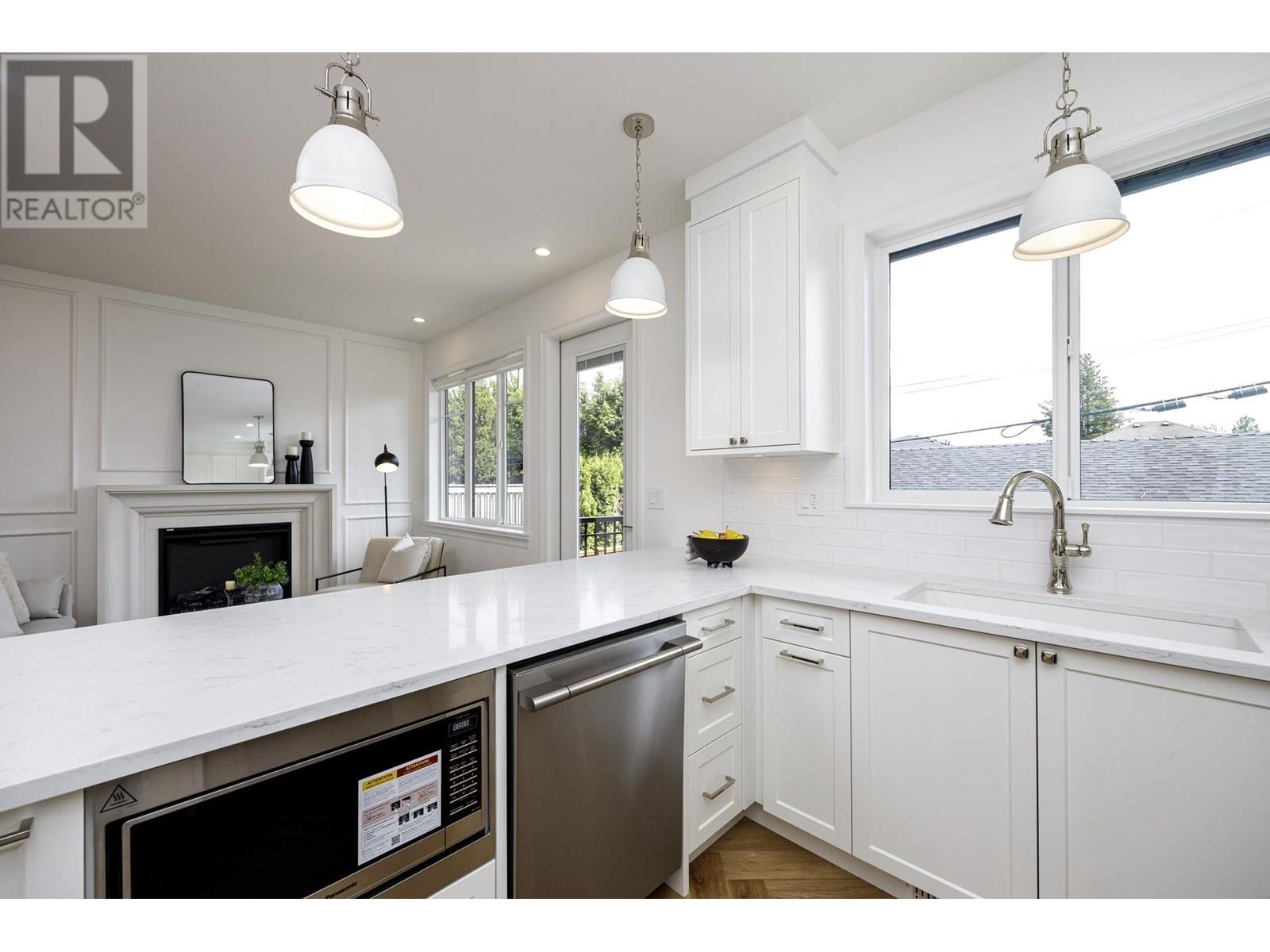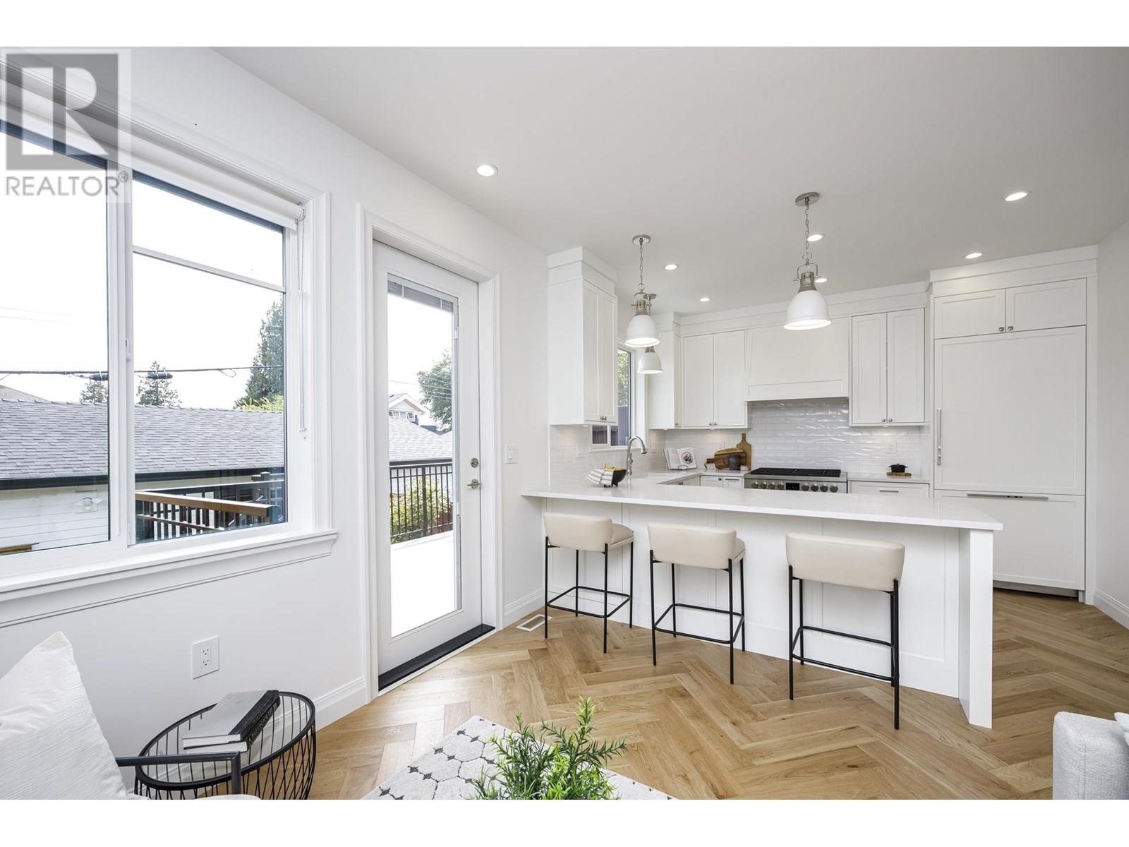This elegant home is perched on the bluff in Central Lonsdale and spans 1,830+sqft across three levels. It features 3 beautiful bedrooms and 2 exquisitely appointed bathrooms including a spa inspired ensuite. The main level showcases an airy open-concept, seamlessly integrating the sophisticated living room, dining area and bright kitchen, all flowing effortlessly onto a generous south-facing deck overlooking private, meticulously landscaped backyard. The lower level boasts spacious laundry room, an inviting recreation room and a separate entrance for potential nanny suite. A remarkable abode furnished with high-end appliances, distinguished herringbone hardwood floors and custom cabinets. An over-sized one car garage adds convenience! OPEN HOUSE SAT/SUN JULY 12TH & 13TH 2:00PM-4:00PM. (id:48970) Show More