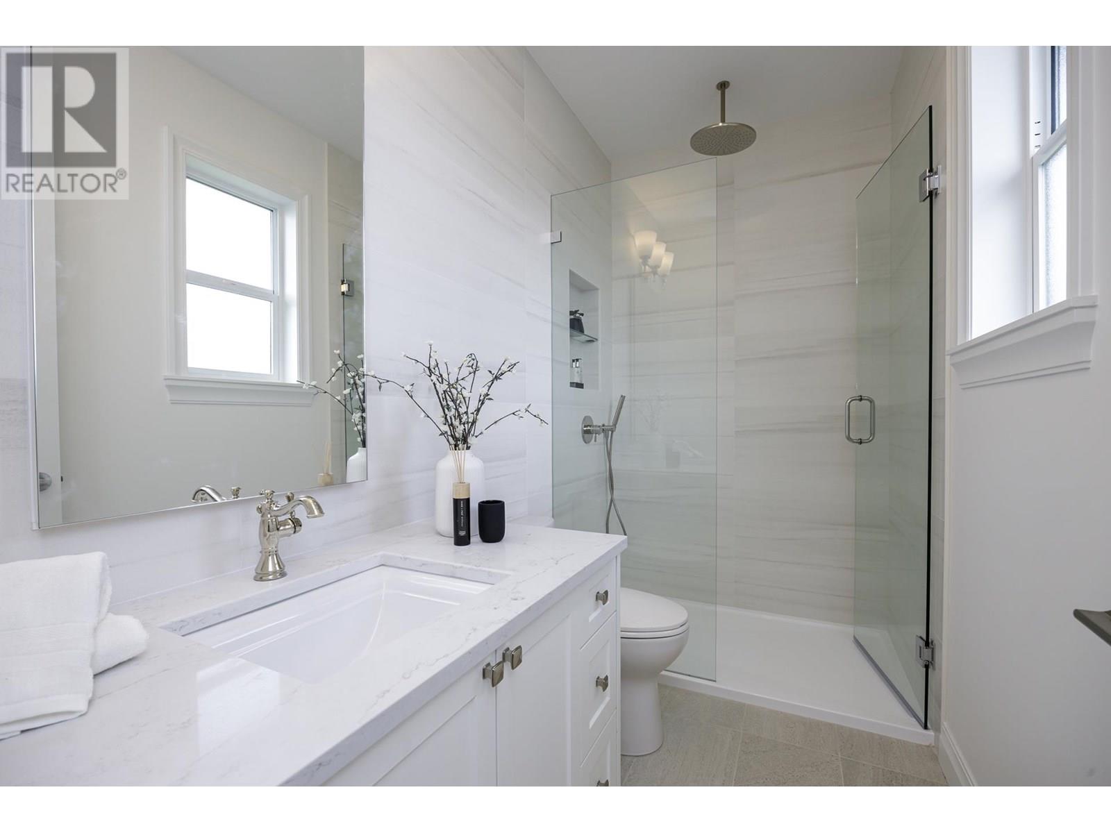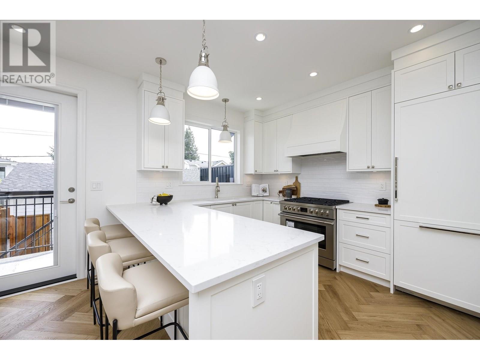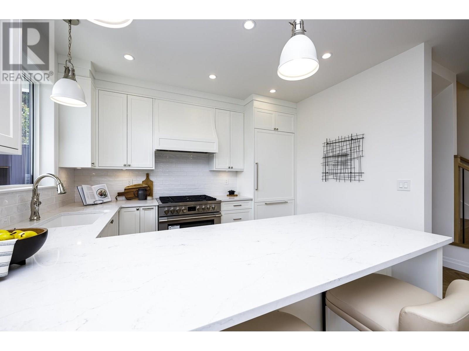 This elegant home is perched on the bluff in Central Lonsdale and spans 1,830+sqft across three levels. It features 3 beautiful bedrooms and 2 exquisitely appointed bathrooms including a spa inspired ensuite. The main level showcases an airy open-concept, seamlessly integrating the sophisticated living room, dining area and bright kitchen, all flowing effortlessly onto a generous south-facing deck overlooking private, meticulously landscaped backyard. The lower level boasts spacious laundry room, an inviting recreation room and a separate entrance for potential nanny suite. A remarkable abode furnished with high-end appliances, distinguished herringbone hardwood floors and custom cabinets. An over-sized one car garage adds convenience! OPEN HOUSE SAT/SUN JULY 12TH & 13TH 2:00PM-4:00PM. (id:48970) Show More