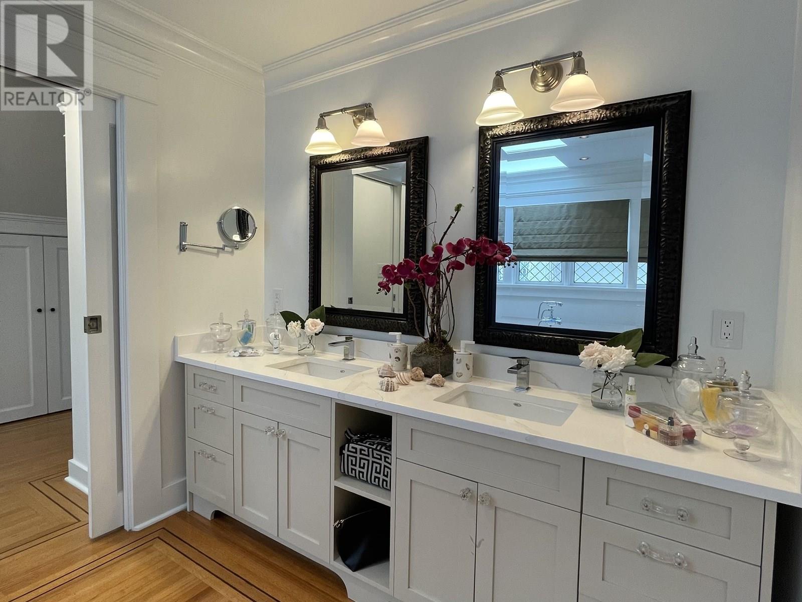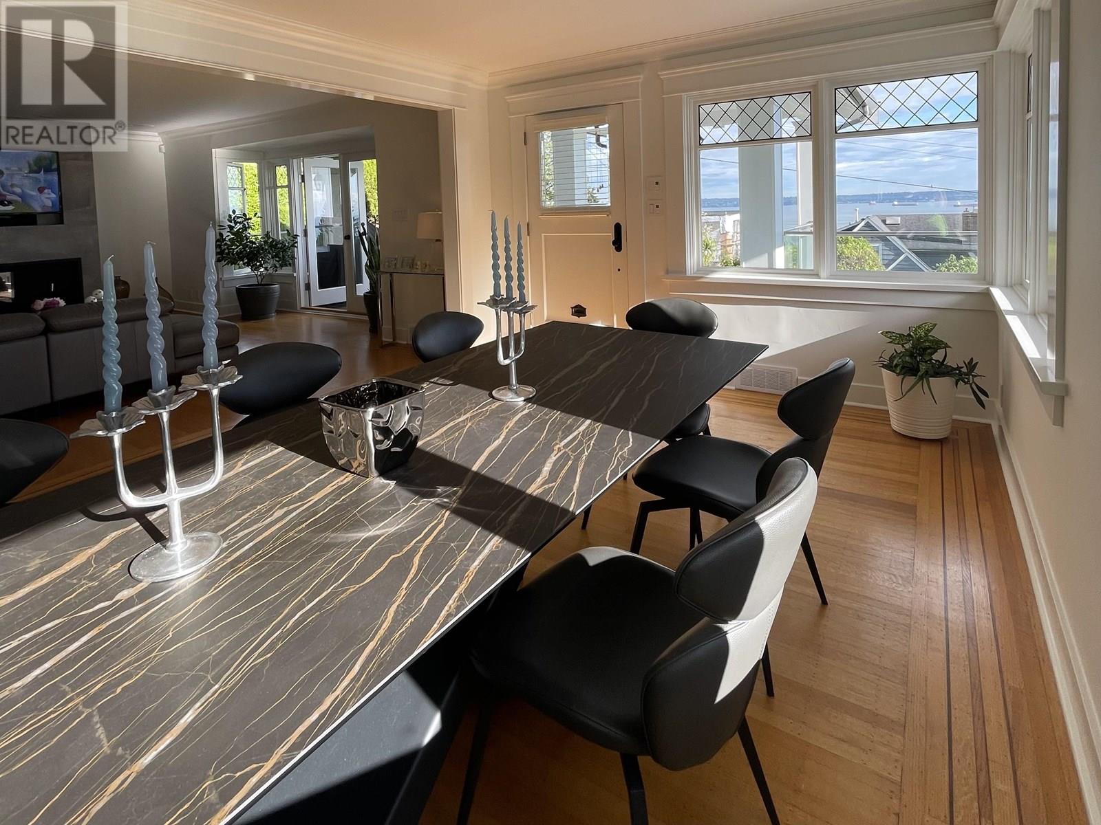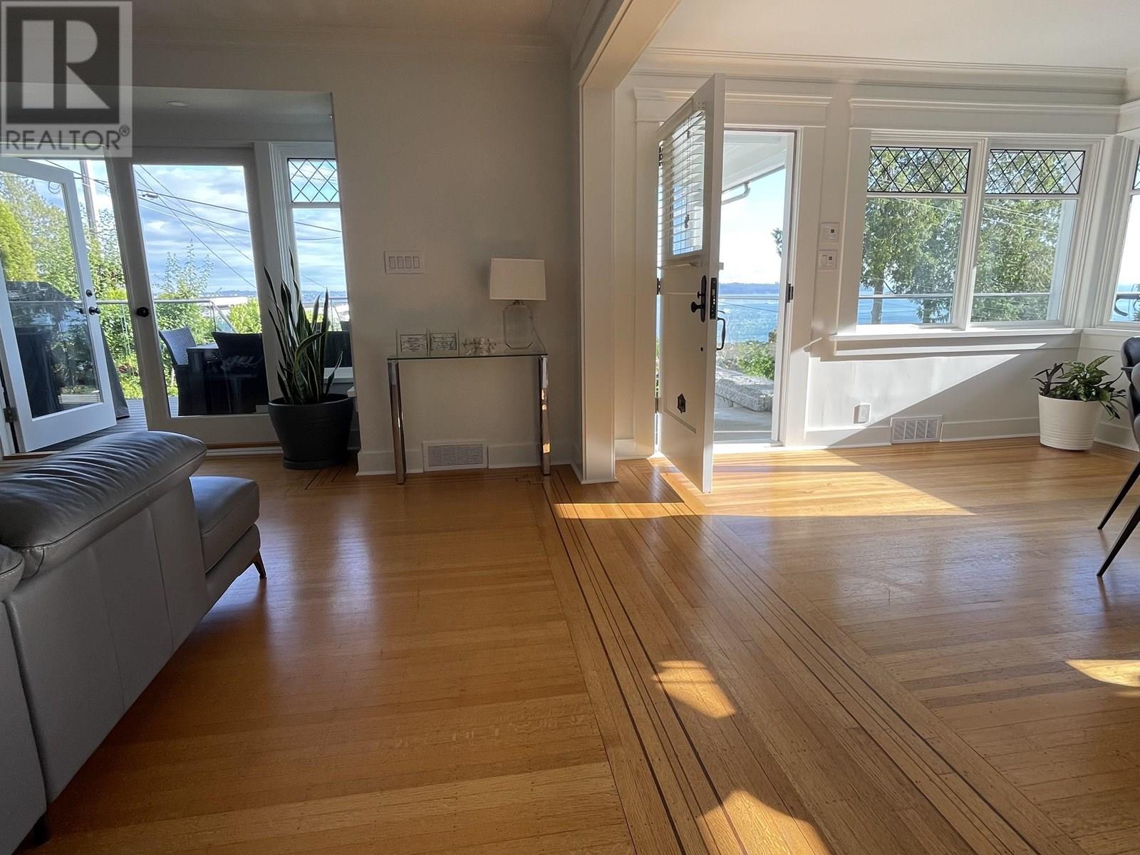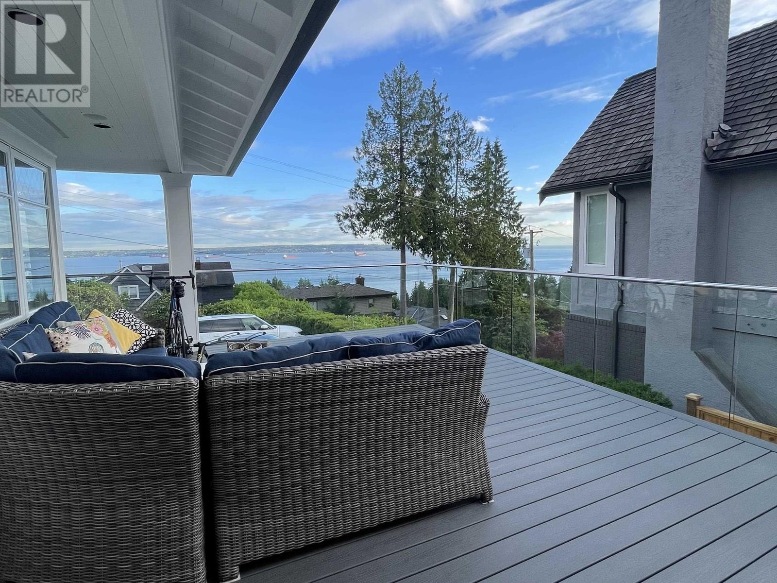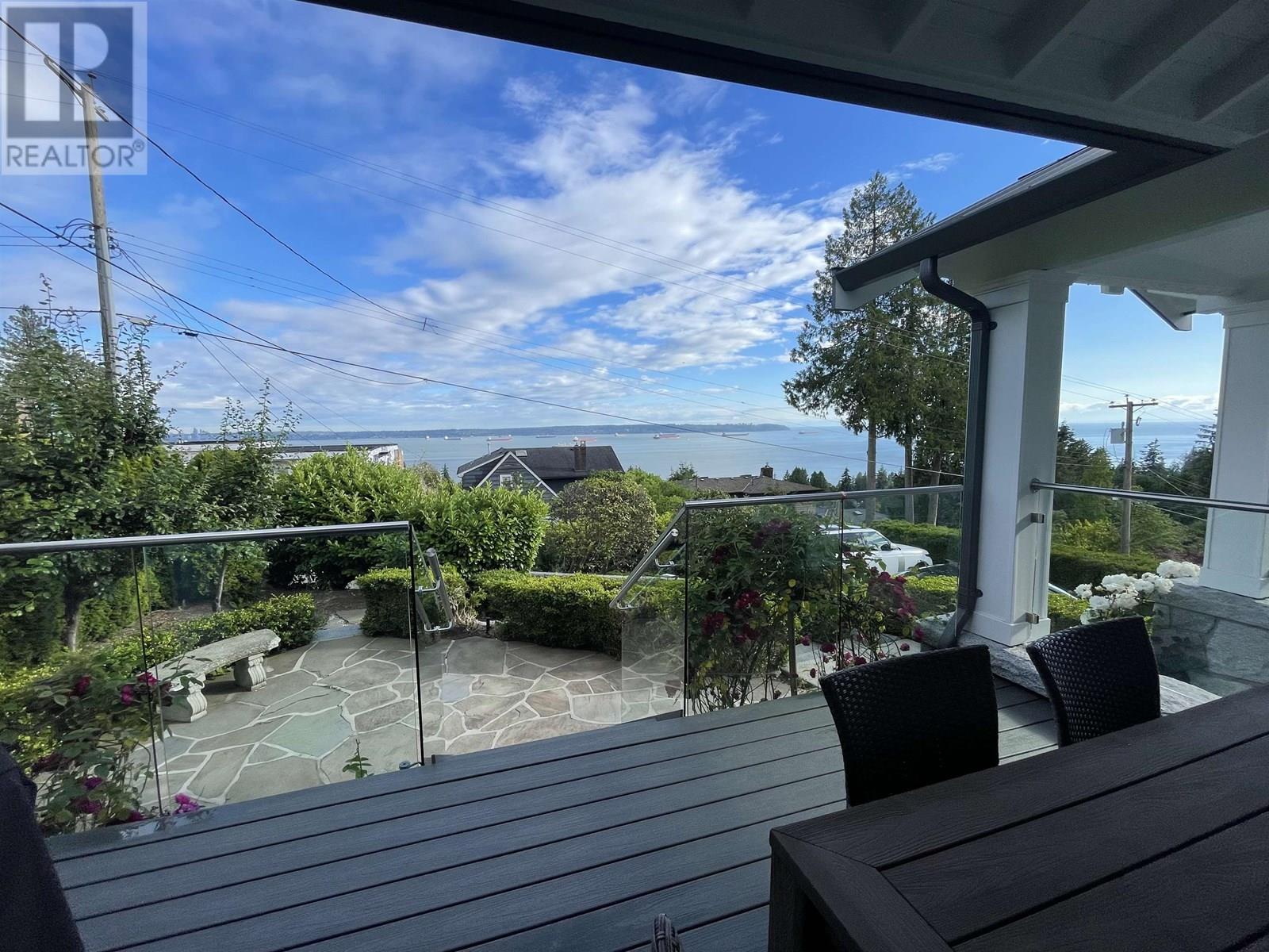 MAGNIFICENT PANORAMIC TROPHY VIEW PROPERTY - This Shaughnessy-style 'Dream home' sits At the top of the cusp providing breathtaking ocean views from City to Lighthouse Park with the Vancouver skyline & endless ocean in between and is the last property to gain rear lane access in West Vancouver´s most desirable Dundarave neighborhood and offers 3421 SF of spacious living providing a wonderful indoor outdoor lifestyle. Enjoy close in ocean views from this very LEVEL stunning 5 bdrm, 4 bthrm, 3 story home providing spacious principal rooms together with an impeccable choice of quality materials. Many feat incl: Kichler automated lights, Sonos sound systm, EV chrgr, covered decks and much more.. All beautifully landscaped, illuminated at night time. Lower level (walkout) features 1 bed suite. (id:48970) Show More