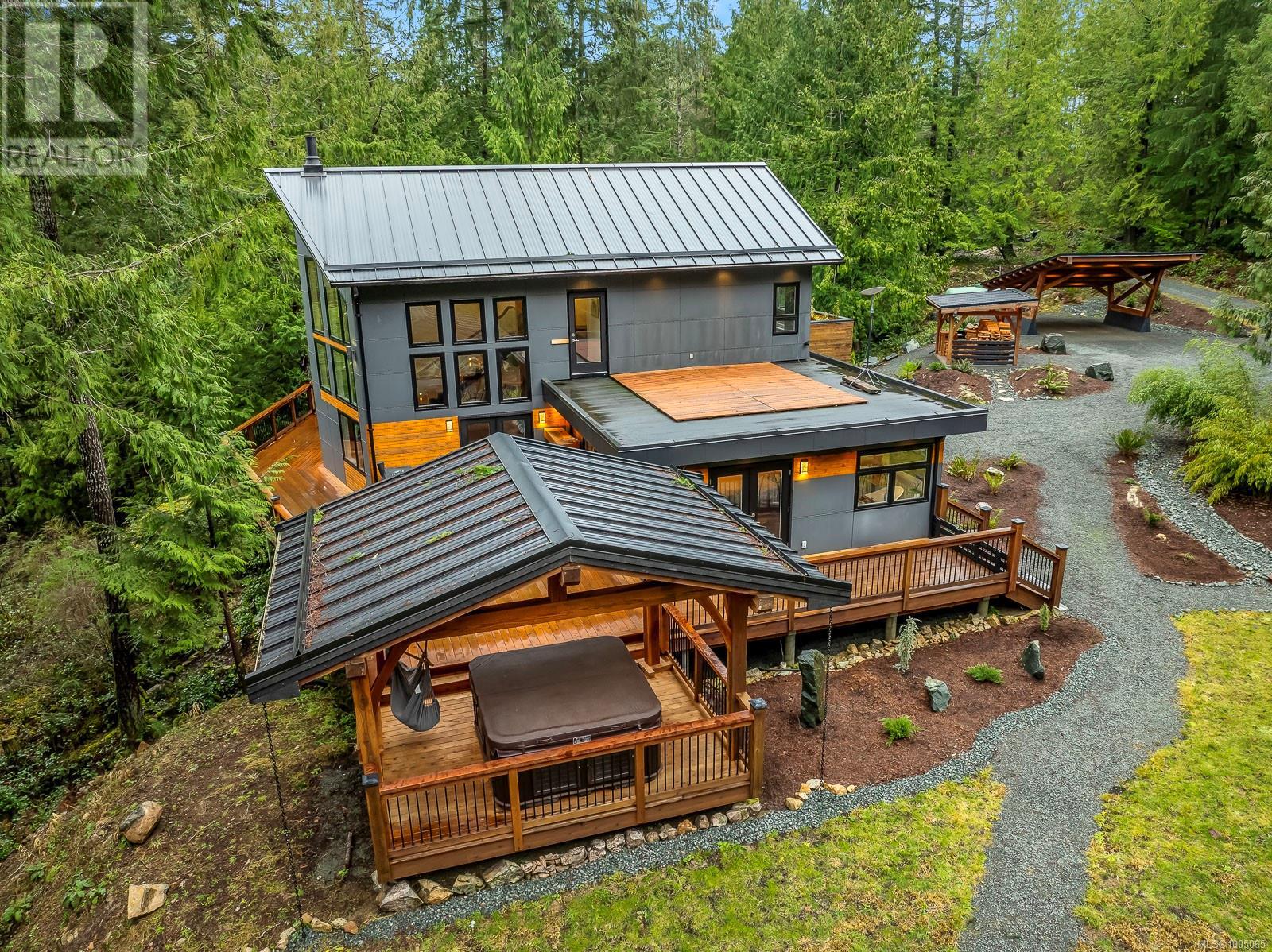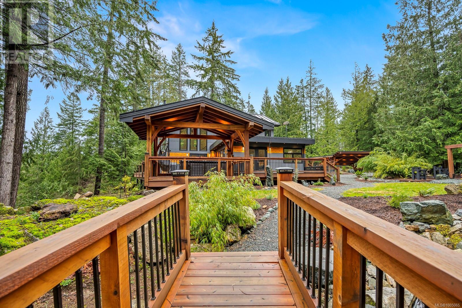 Escape to your own secluded Executive retreat. Luxuriate in the 62 jet 6-person hot tub on 1247 sqft wraparound deck surrounded by pristine forest. 25 foot ceilings w/ a wall of windows exude elegance but are grounded by a large custom wood burning fireplace. You’ll be impressed by the attention to detail including the tranquil pond flowing into a seasonal stream, economical in floor hot water heating, fully connected backup power & so much more. This custom West Coast contemporary Home offers exceptional craftsmanship with flavors of Japan. The natural elements of wood, rock & water flow to create a home to soothe the soul. From the sweet scent of Cedar in the custom Barrel sauna to the revitalizing outdoor shower to the four piece ensuite & Steam shower, you'll feel pampered every day! Property is zoned for 2 dwellings so bring the whole gang! Unique home must be seen to be truly appreciated! Ask for the exclusive feature sheet or call today to arrange for a personal tour. (id:48970) Show More