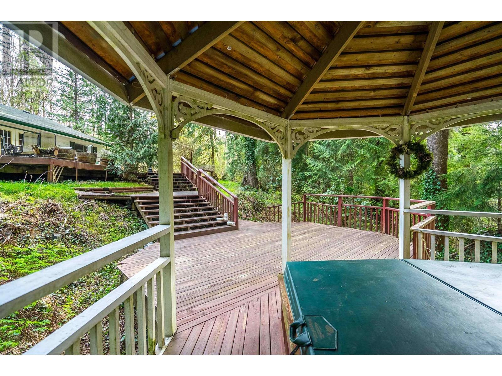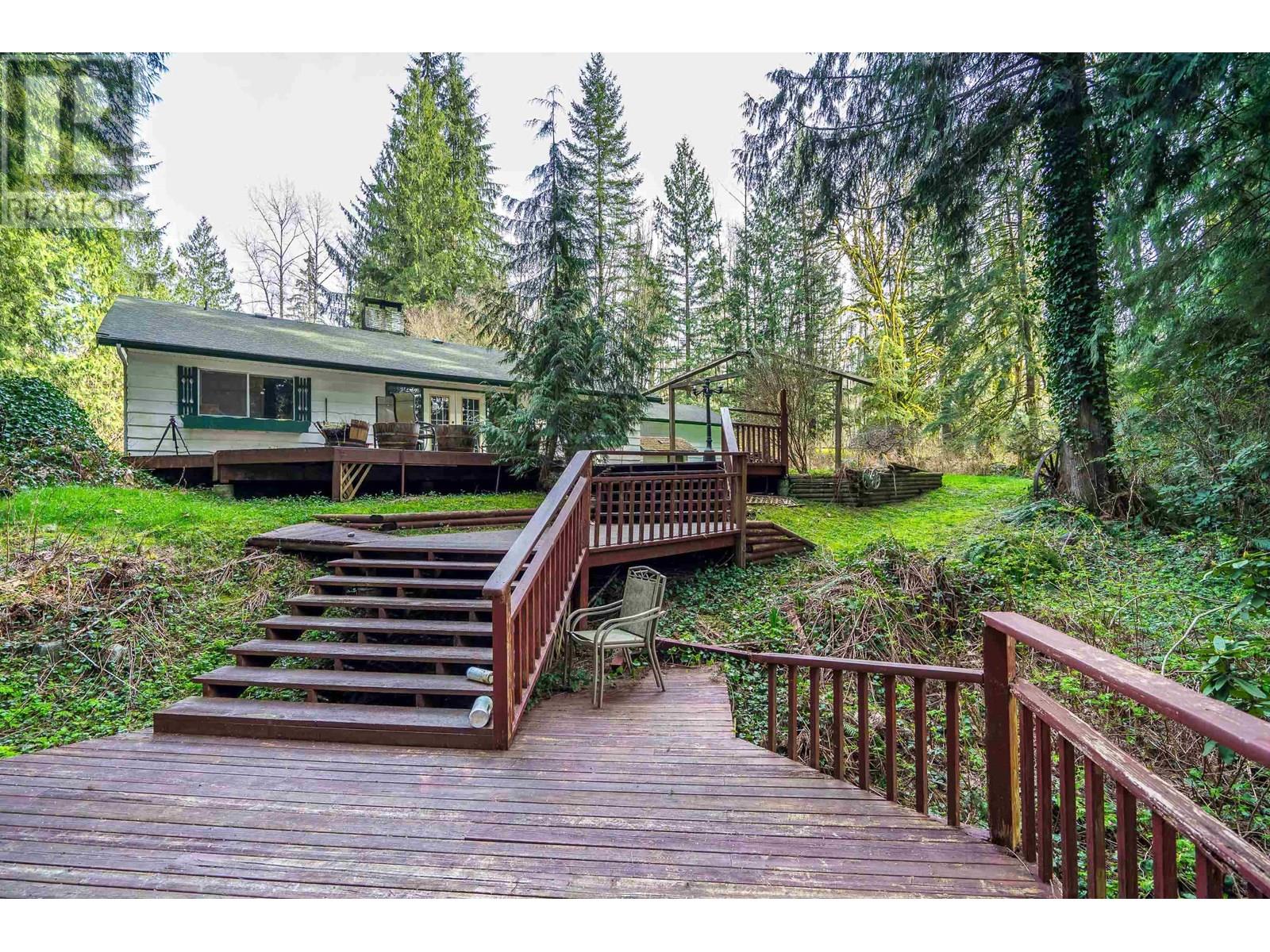 This charming 1,930 square ft rancher sits on just under an acre of land, offering a perfect blend of indoor comfort and outdoor beauty. With 4 spacious bedrooms, a large dining room, and a kitchen with a roomy eating area, this home is ideal for families. Enjoy relaxing on the multi-level cedar deck, complete with a gazebo, hot tub, and stairway lighting, all set against the tranquil backdrop of Kanaka Creek. The expansive yard is beautifully landscaped with underground lighting. A 24 x 32 garage with a workshop and second level provides plenty of space for projects. Experience this peaceful retreat today! (id:48970) Show More