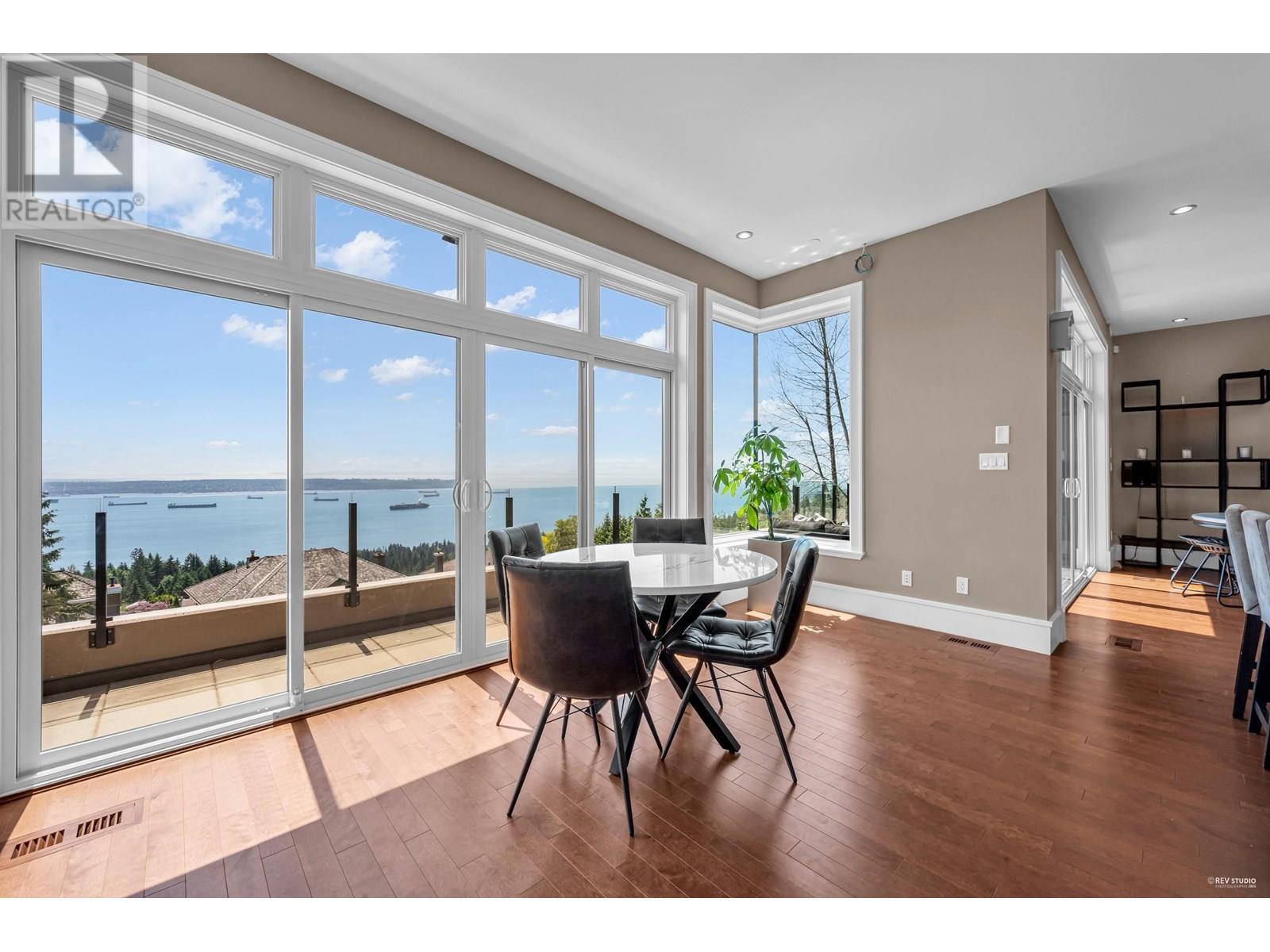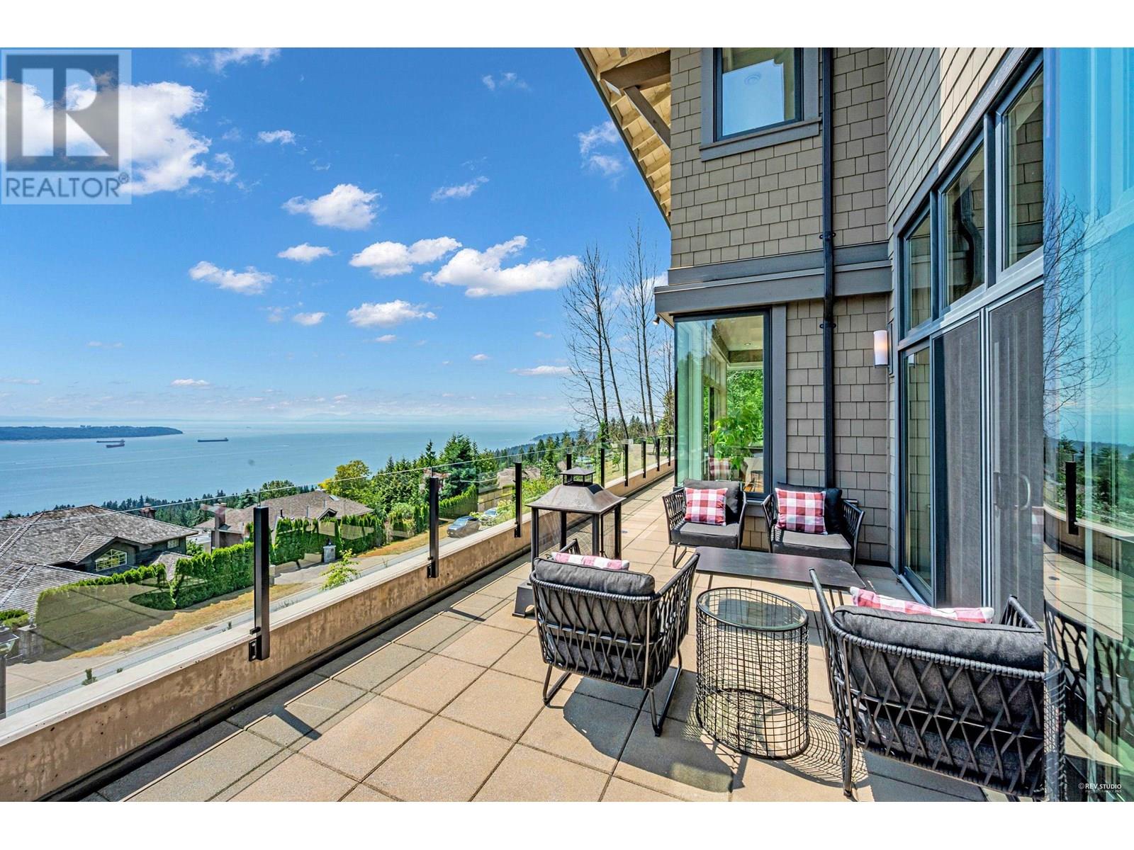 Spectacular south-facing contemporary estate with sweeping ocean, city, and island views. Set on a 26,570 square ft private lot in prestigious Whitby Estates, this 8,000+ square ft luxury home spans 3 levels with elevator access. Enjoy a heated flat driveway, stunning hardwood floors, refined millwork, a grand media room, and a showcase wine cellar. The main and wok kitchens feature thick granite counters and top-tier appliances. Every room includes remote-controlled blinds. Expansive patios offer the perfect setting for summer entertaining. Minutes to Collingwood & Mulgrave schools, scenic trails, and Cypress Mountain. A rare West Coast gem! (id:48970) Show More