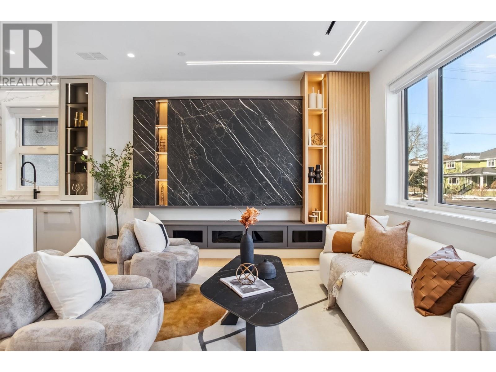 Located in the Prestigious Arbutus/Mackenzie Heights area is your dream home in this newly completed back duplex by Monarchy. This single-family inspired residence sits on a generous 38 x 122 lot, blending space & sophistication. Step into innovation with state-of-the-art Net Zero technology. Enjoy year-round comfort & significant energy savings thanks to triple-pane windows, solar panels & advanced insulation. Inside, exquisite craftsmanship awaits with custom millwork, sleek LED lighting & luxurious 24x48 Italian porcelain tiles. The kitchen boasts Omnia quartz countertops & integrated Miele appliances, while a stunning custom media wall anchors the living space.Bonus: A legal 1-bed suite below helps offset your mortgage.Experience the future of modern living in Van. Open House June 28 from 2-4pm (id:48970) Show More