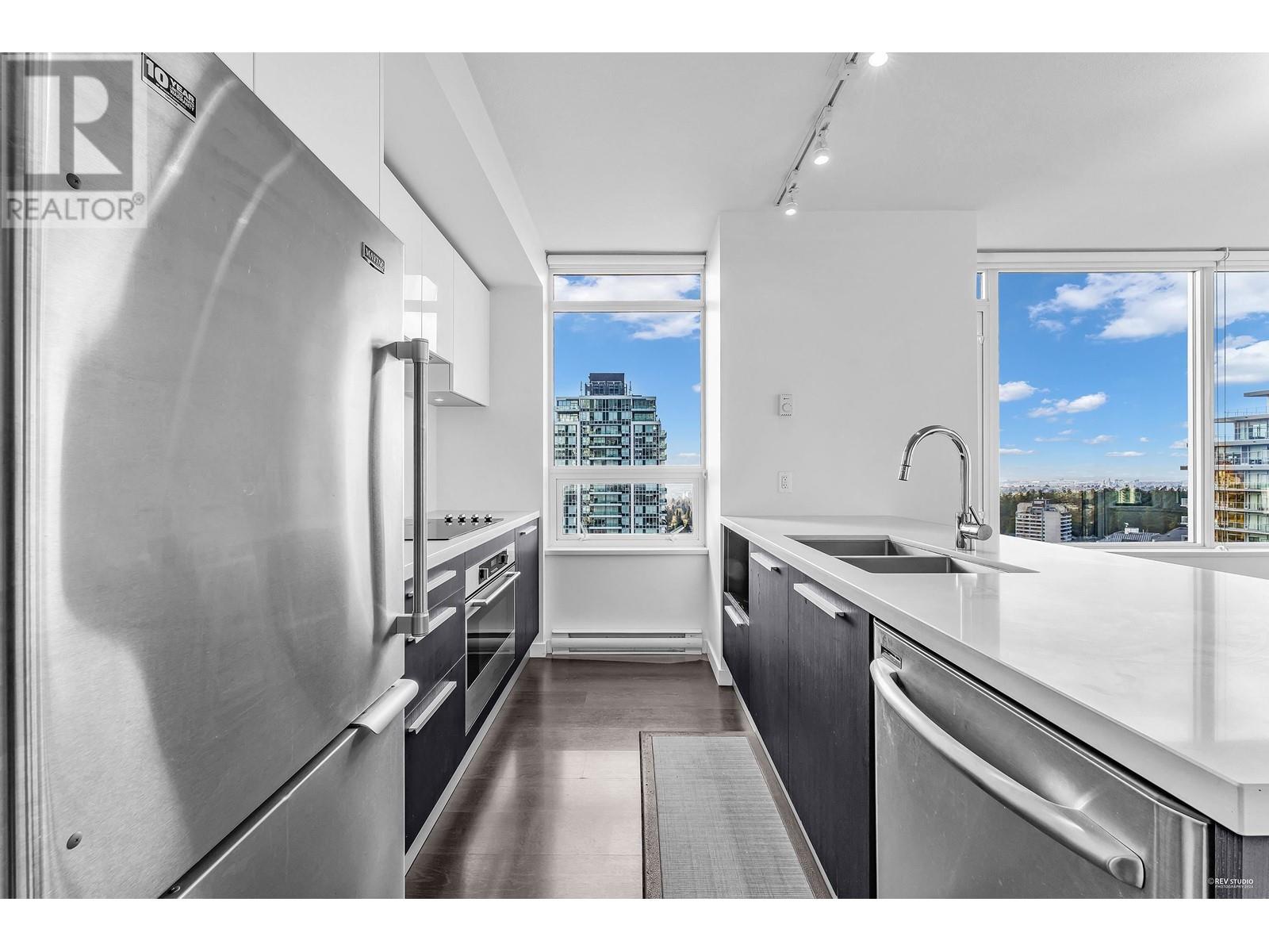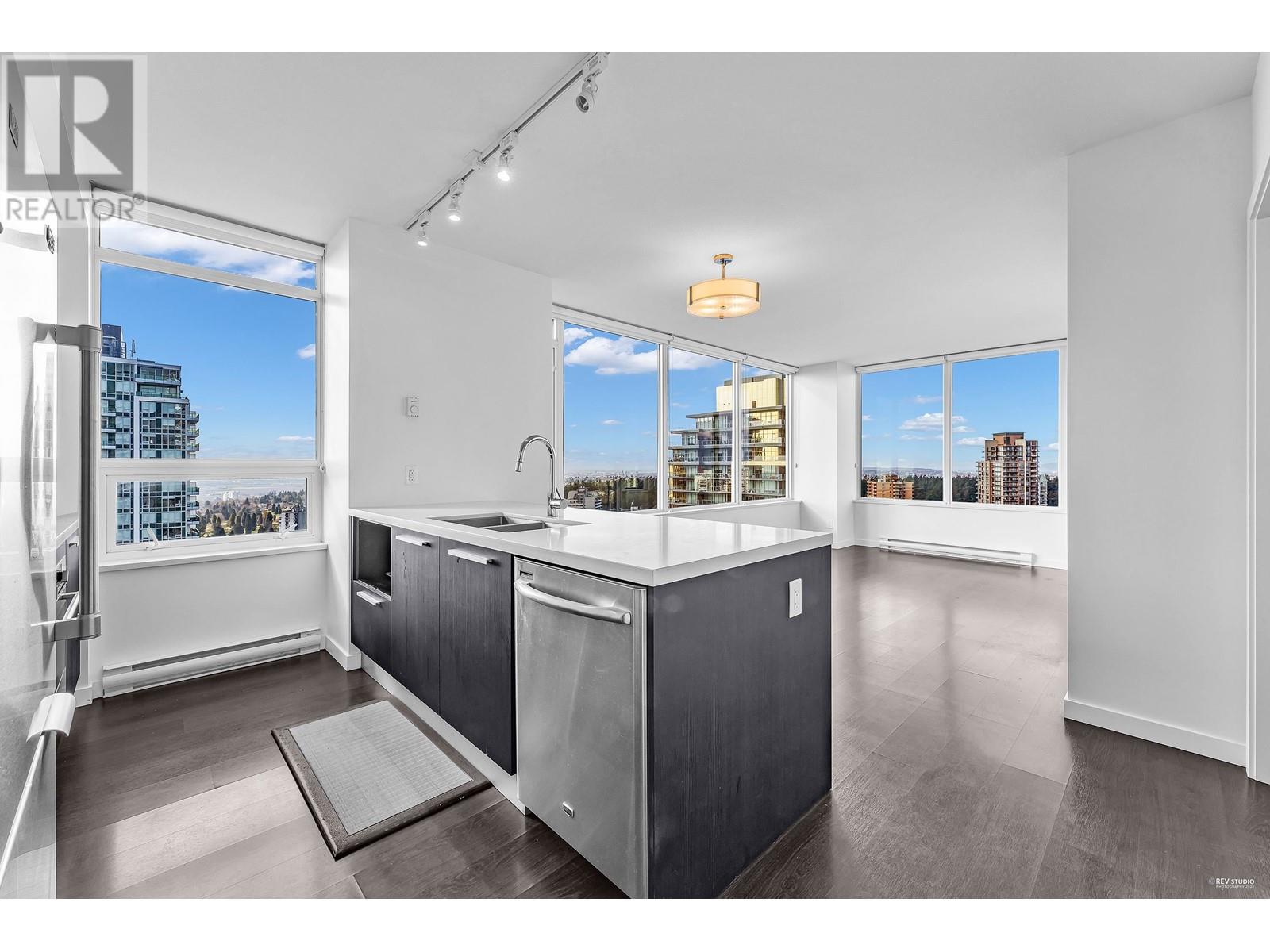 Exceptional 2BR/2BA Corner Unit in the Heart of Metrotown - A Blend of Convenience and Style! Situated in the vibrant heart of Metrotown, this exquisite corner unit offers unparalleled access to all urban conveniences. Just steps away, you'll find a plethora of transit options, charming cafés, diverse restaurants, the bustling shopping center, a comprehensive medical center, serene parks, the city library, and a wide array of outdoor amenities provided by the city.This 2-bedroom, 2-bathroom home is a jewel in the Southwest corner, bathed in abundant natural light and boasting breathtaking views of the city and parks. The 9-foot ceilings amplify the sense of space, while the open-concept kitchen design is perfect for modern living.The unit comes with essential amenities including 1p 1L. (id:48970) Show More