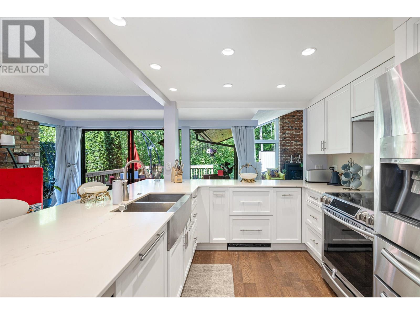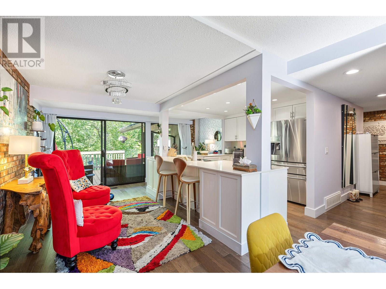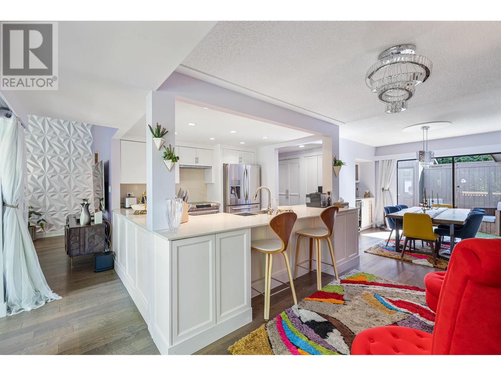This Beautiful and rarely available 3 Bedroom 1700 sq. ft. Townhome overlooking the Capilano river is nestled in a quiet & private subdivision off Capilano Rd. & walking distance to Edgemont village. The suite offers perfect living for a growing family, large floor to ceiling windows, access to a comfortable brand new deck and a wonderful floor plan. Vaulted ceilings on the main floor, large living room, open kitchen and large dining areas make it the perfect place to host your friends & family. Upstairs there is a very spacious Primary Bedroom with a deck overlooking the river & a beautiful ensuite; additionally there are 2 more bedrooms and shared full bathroom. Sought out Handsworth & Highland catchment, 2 covered parking spots & plenty of visitor parking. (id:48970) Show More