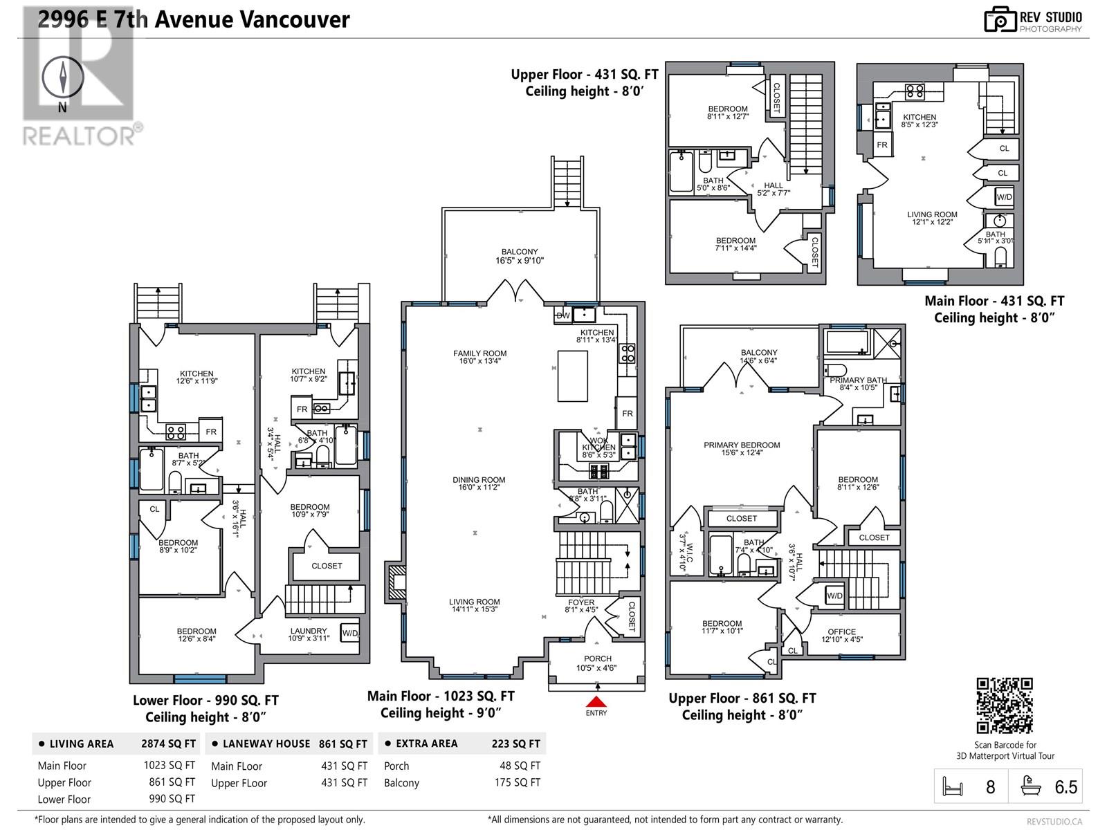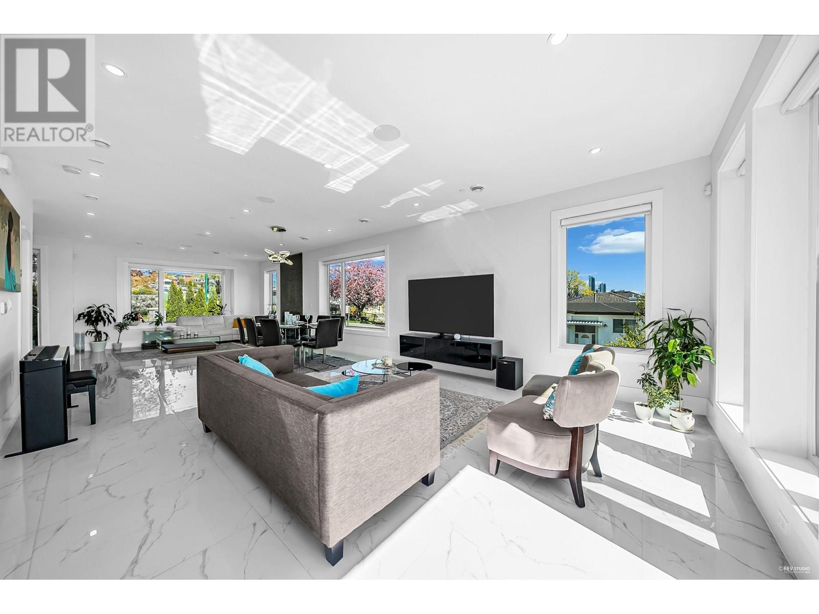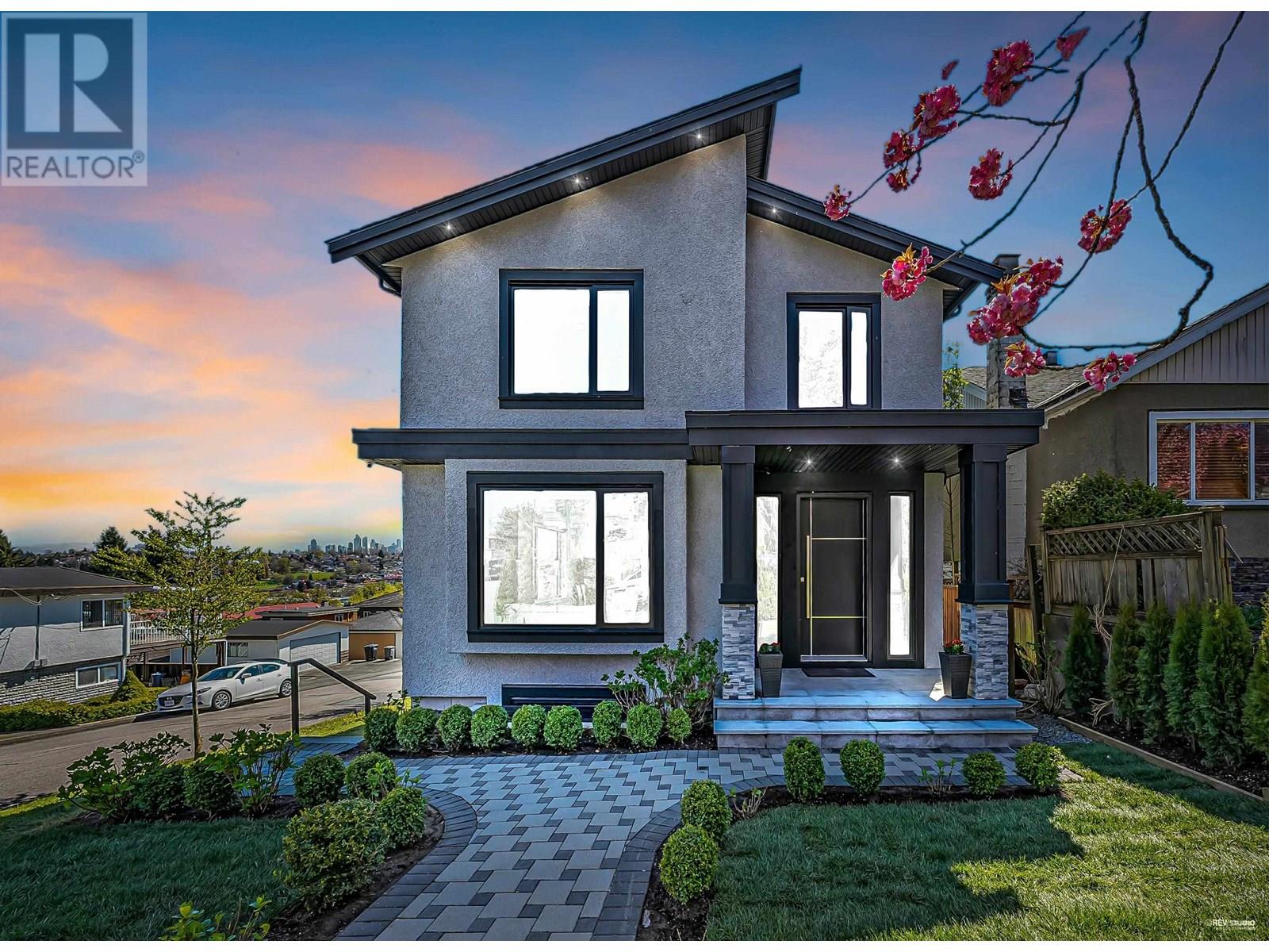 This absolutely amazing home sits on an elevated corner lot, showcasing breathtaking mountain and city views with separate access to each suite and laneway. Featuring 8 bedrooms+office and 7 bathrooms across a well-designed main house, two basement suites, and a laneway home. The main floor has 9 ft ceilings, a bright open living, a balcony with views, and a main + wok kitchen. Upstairs includes 3 spacious bedrooms including a master bedroom with primary ensuite and beautiful balcony and an office. The basement has a legal 2-bed suite and a 1-bed in-law suite. A spacious 800+ sqft 2-bed laneway is an extra mortgage helper. Radiant heat, A/C, quality finishings, & a functional layout complete this exceptional home. Steps to parks, shops, schools, and SkyTrain. Open house Sun June 29:2:3-4pm (id:48970) Show More