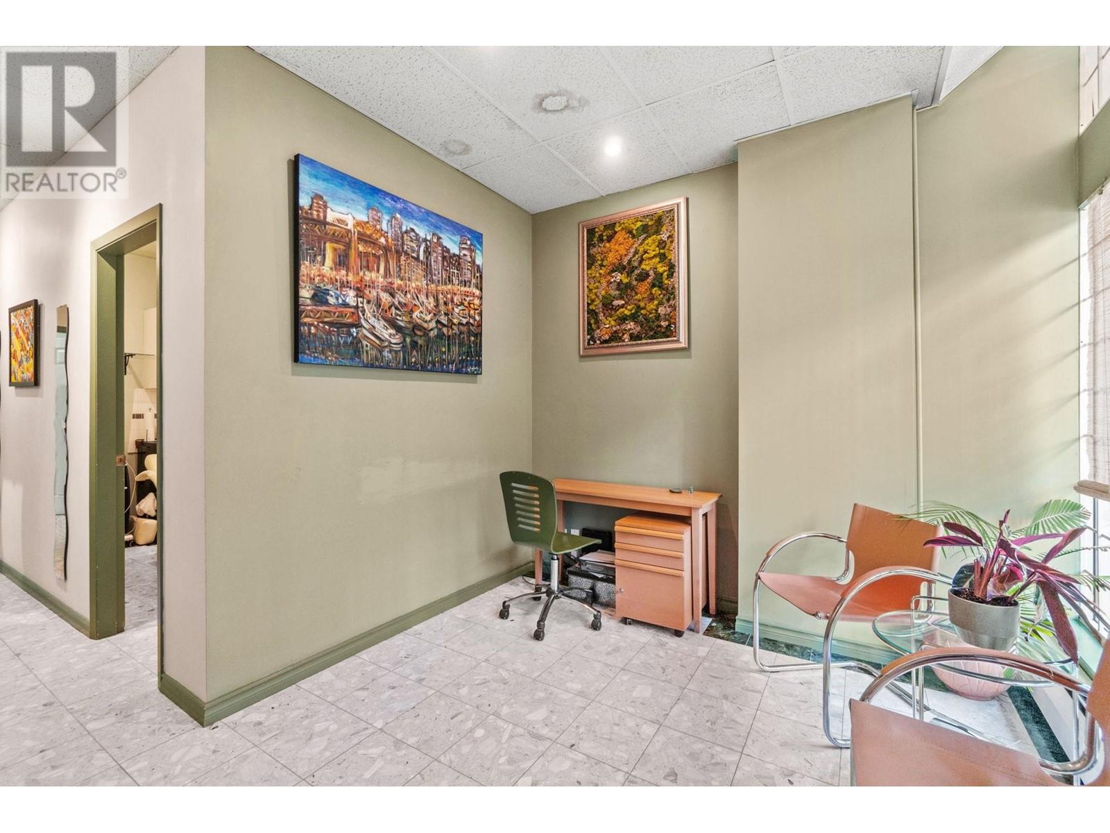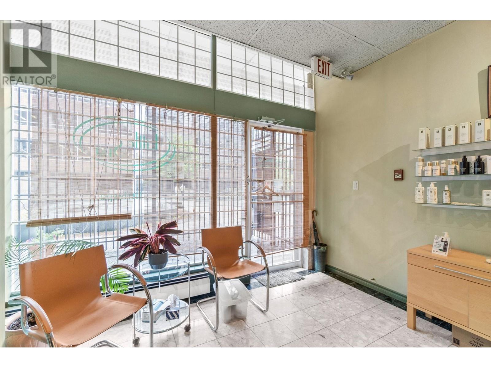 Seize the opportunity to own a prime piece of downtown Vancouver's thriving commercial landscape. This well-maintained 420 + sqft unit is perfectly positioned in the heart of Vancouver's Westside'an area known for its vibrant business community & strong foot traffic. In continuous operation since 1984, this space has a proven track record & is ideal for entrepreneurs seeking a central, established location. The layout includes two private treatment rooms and a welcoming reception area, offering versatility for a variety of business types. A private washroom adds to the convenience, while surrounding residential towers and complementary businesses further drive visibility and walk-in potential. Whether you're launching a new venture or expanding your portfolio, this is a rare chance to own in one of Vancouver's most dynamic commercial hubs. Don't miss this chance. Book your showing today! (id:48970) Show More