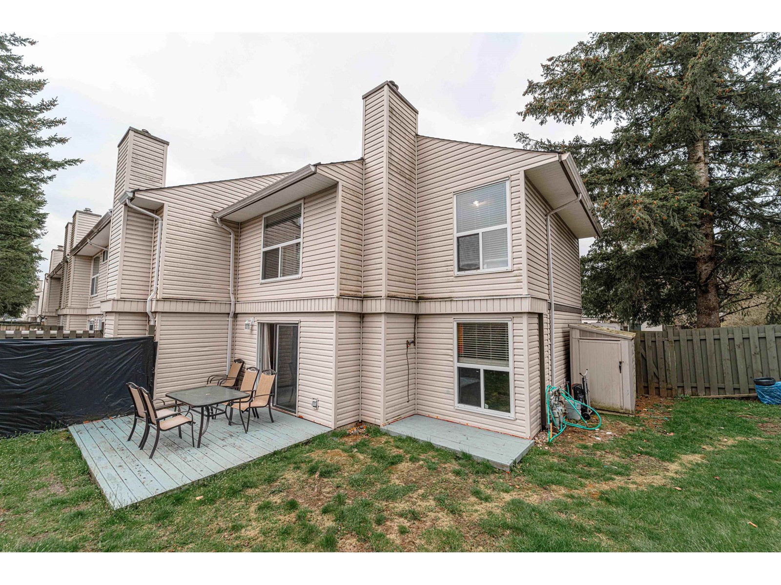 End Unit at a Dead End Street with one of the biggest private back & side yard in the complex. Welcome to Clearbrook Village. This 3 bedroom/ 2 bath townhome is an amazing corner unit which provides you with a wrap around side/ backyard. Perfect for the kids to play or you could transform it into an amazing garden patio area or a great summer BBQ area for entertainment. The ideas are endless. Main floor has a bright living area, spacious kitchen, dining area & powder. Upstairs features good size bedrooms, bathroom & laundry. Rentals allowed. Other features- big wooden sundeck, friendly neighborhood to raise your kids, pet friendly complex, well run strata, low strata fee, carport, steps to Rotary Stadium & much more. Close to amenities. (id:48970) Show More