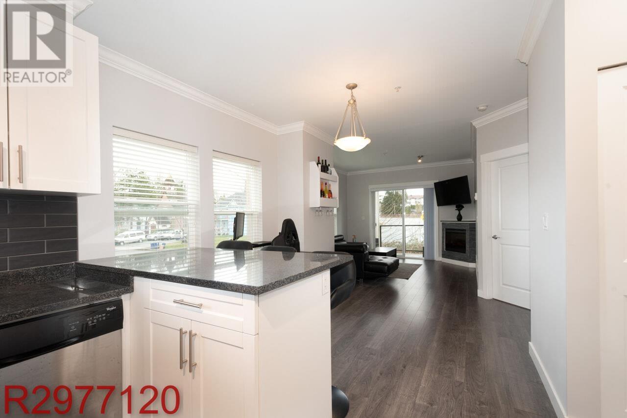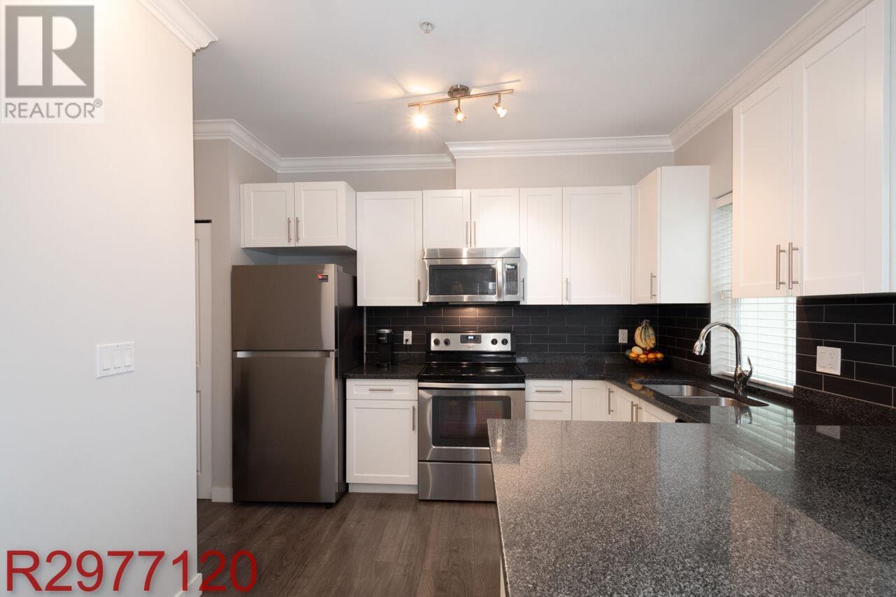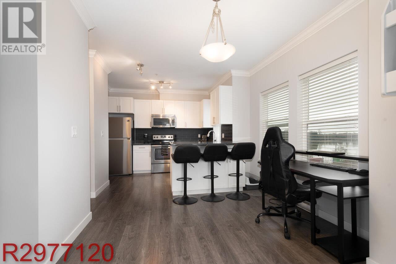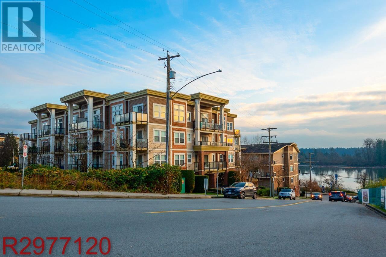 Stunning Fraser River Views in Port Haney's Boutique Waterfront Community Welcome to this bright and spacious corner unit offering nearly 700 sq. ft. of open-concept living. Large windows bathe the space in natural light, showcasing picturesque Fraser River views and breathtaking sunsets. The thoughtfully designed floor plan maximizes comfort and functionality, featuring 8'10" ceilings, sleek laminate flooring, and elegant crown molding. The stylish kitchen boasts crisp white cabinetry, dark granite countertops, and stainless-steel appliances. Enjoy the convenience of in-suite storage, plus a dedicated parking stall. Located just steps from the West Coast Express, transit, and minutes from shops, dining, parks, and recreation - this is the perfect blend of style, comfort, and convenience. (id:48970) Show More